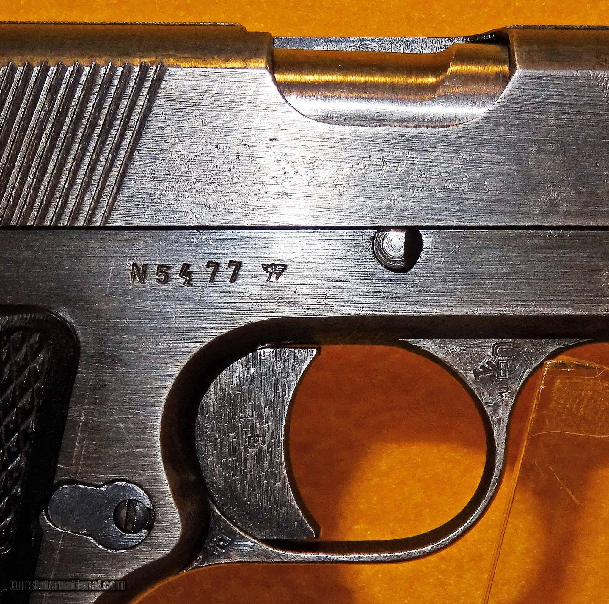 Description: RADOM P35 IN 9MM CAL., WITH 4 1/2" BARREL. COLOR BLUE. CONDITION 75%. SERIAL NUMBER N5477. RADOM MODEL P35, COMES WITH ONE WAFFEN MARKED MAGAZINE, BRIGHT SHINY BORE, ALL PROPERLY WAFFEN MARKED RECEIVER AND SLIDE WHICH IS NOT MARKED P35 (P), REQUIRES THE LARGER GRIP SCREWS, 75% OVERALL CONDITION, ALL AND ALL A FINE EXAMPLE OF A WWII RADOM, OUR STOCK # D767. SOLD |
