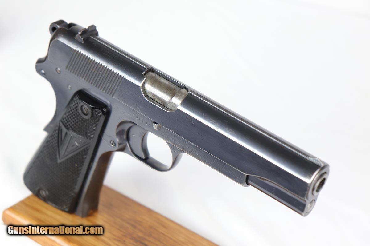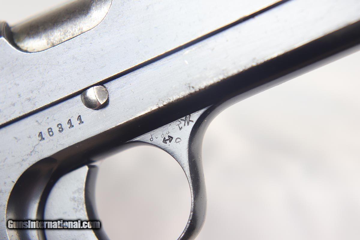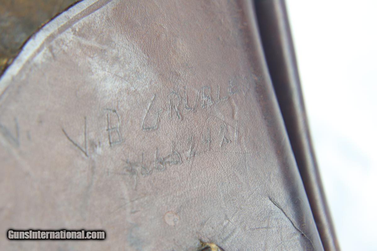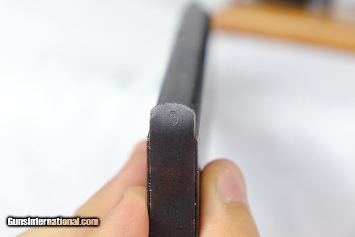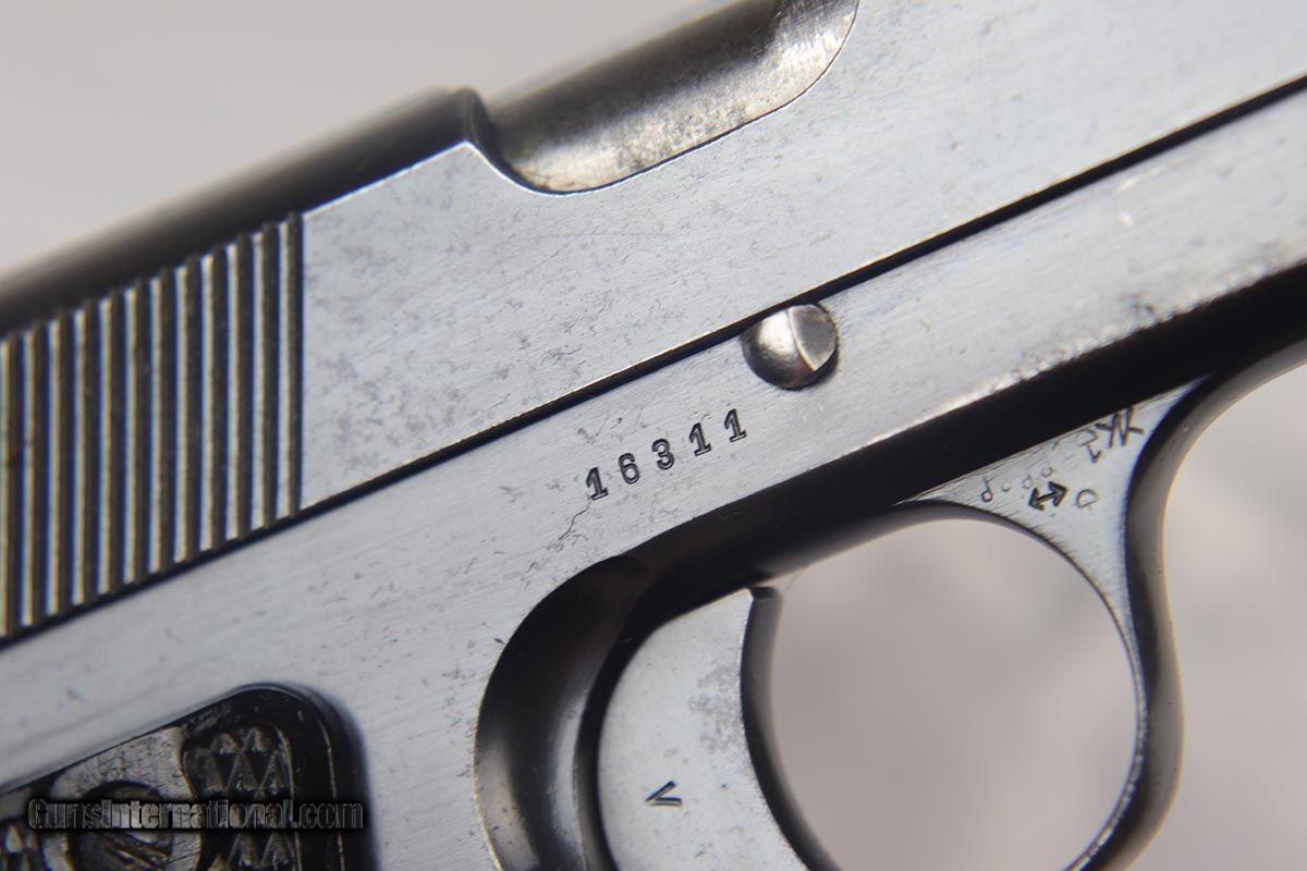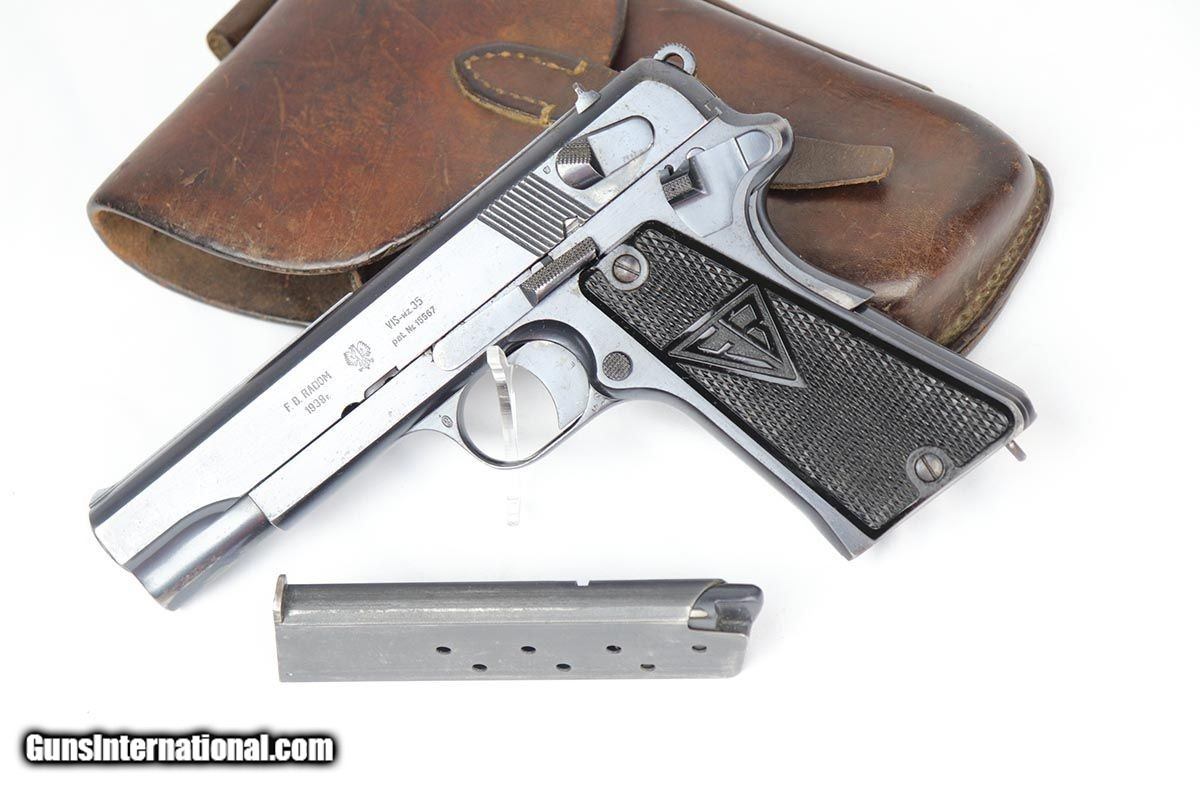 Description: This is a hard to find 1938 Polish Eagle Radom with even more difficult to find original holster. The Polish Eagle Radom preceded the Nazi issue, and the serial of this implies it was about the 16,000th ever made. The pistol is fully matching and original with 92-94% blue remaining. Majority of finish loss is near the muzzle on the left side of the slide, and on the front strap. The scarce mag shows proper G2 proof in oval. Bore has nice rifling but some frosting throughout. The pistol comes with an original pre-war production holster, which have become significantly harder to obtain than the pistols, and can sell for over $2k on their own. It is fully original and in great shape, but does have the GIs name scratched on the front. Guaranteed authentic and original. Visit legacy-collectilbles for more... SOLD Curio/Relic: Yes Manufacturer: Radom Model: Mod 35 Caliber Info: 9mm Bore: 7.5/10 Condition: 92-94% Manufacture Date: 1938 |