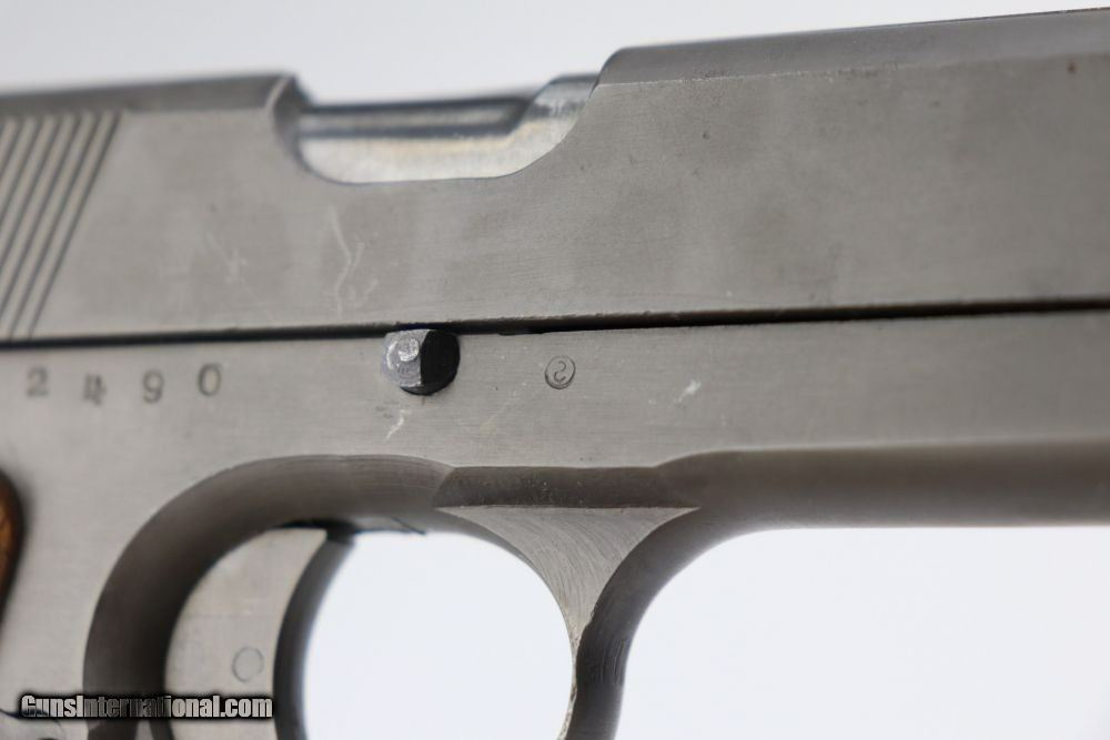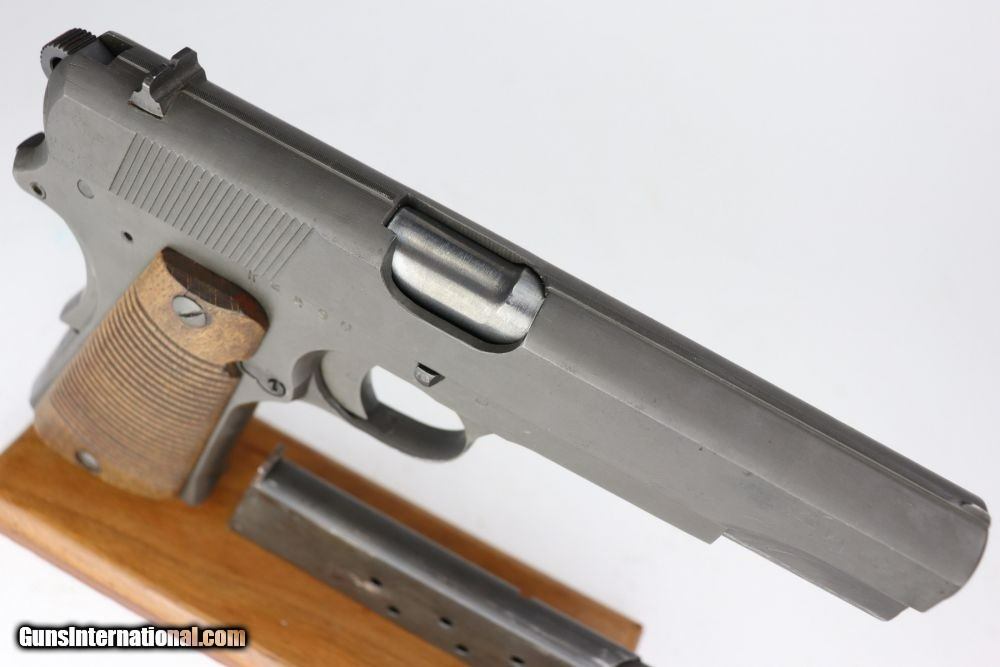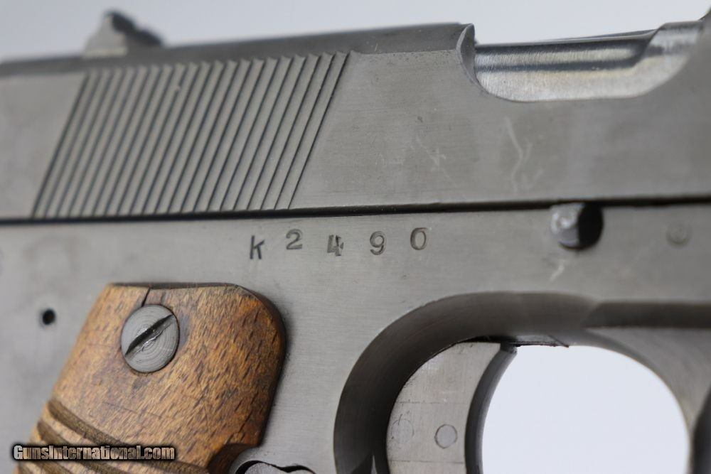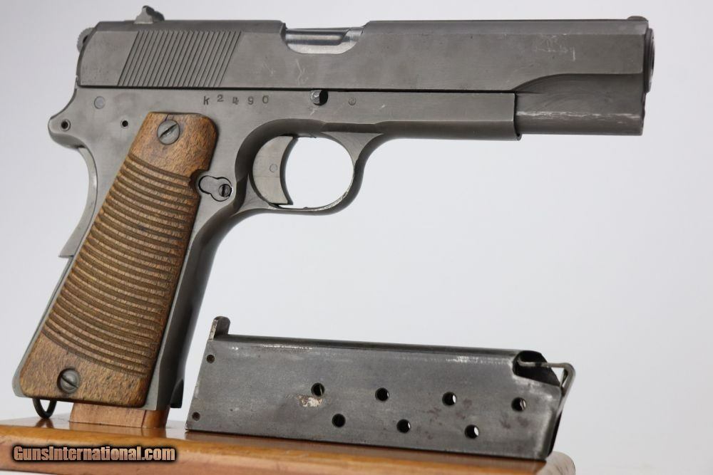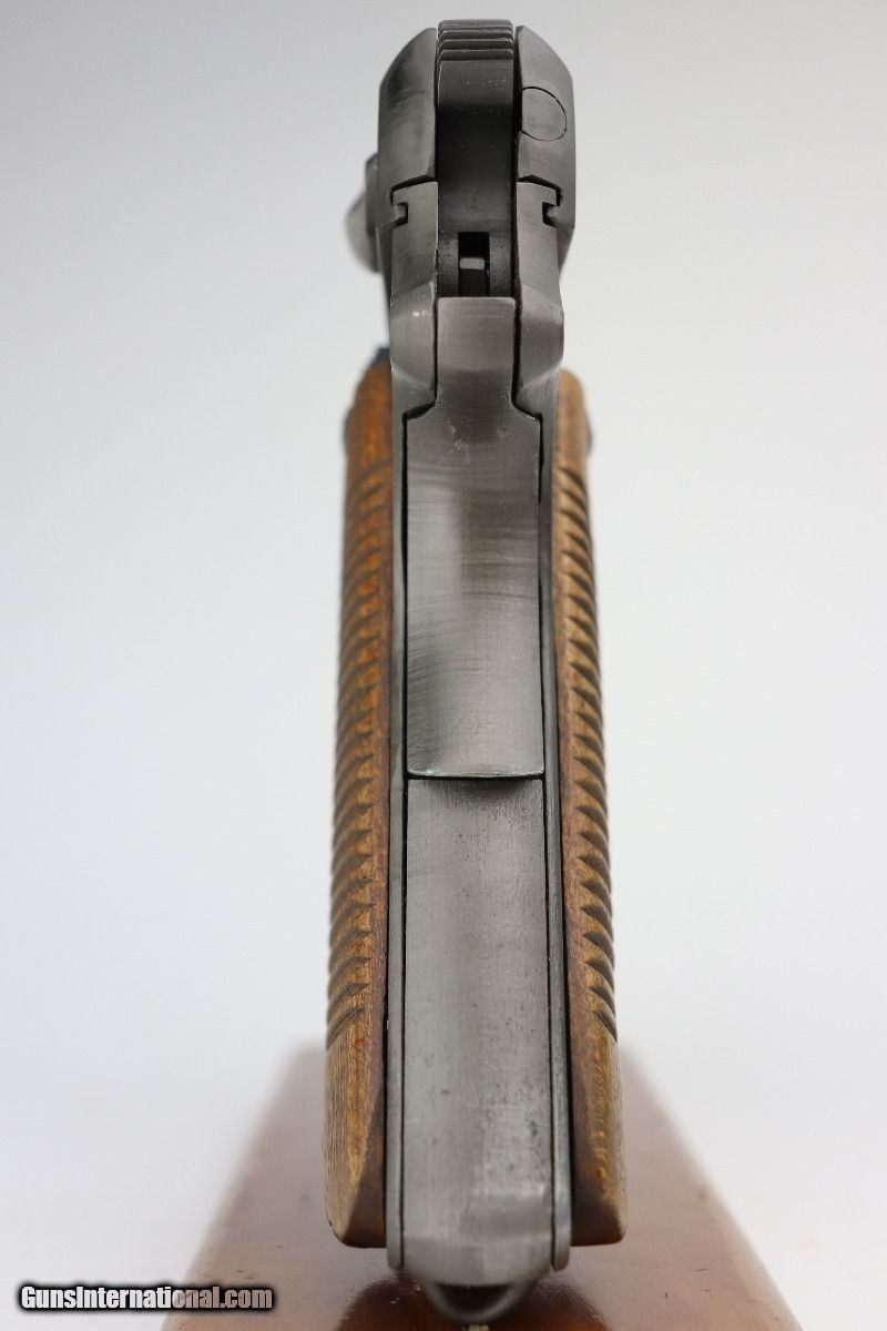 Description: This is a gorgeous, mint example of a scarce all-phosphate Radom VIS 35 issued to the Nazi military in WW2. There were only ~22,000 of these produced. This one is all matching and has the proper Steyr military proofs. It is mint, retaining virtually all of its finish. There are one or two small areas of discoloration on the left side of the slide and very minor spotty oxidation on the back strap (typical for this type of finish). It comes with mint grips and an un-marked period-correct magazine. The bore is mint. SOLD Curio/Relic: Yes Handgun Caliber: 9x19mm Parabellum (9mm Luger, 9x19mm NATO) Manufacturer: Radom Model: VIS 35 Serial Number: K2490 Condition: ~99% Bore Condition: Mint Manufacture Date: WW2 |