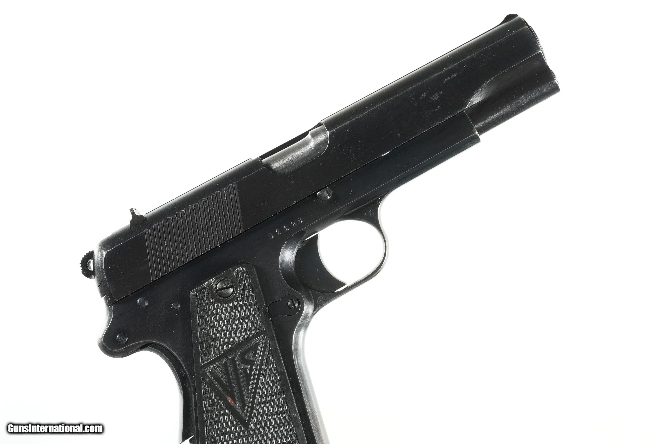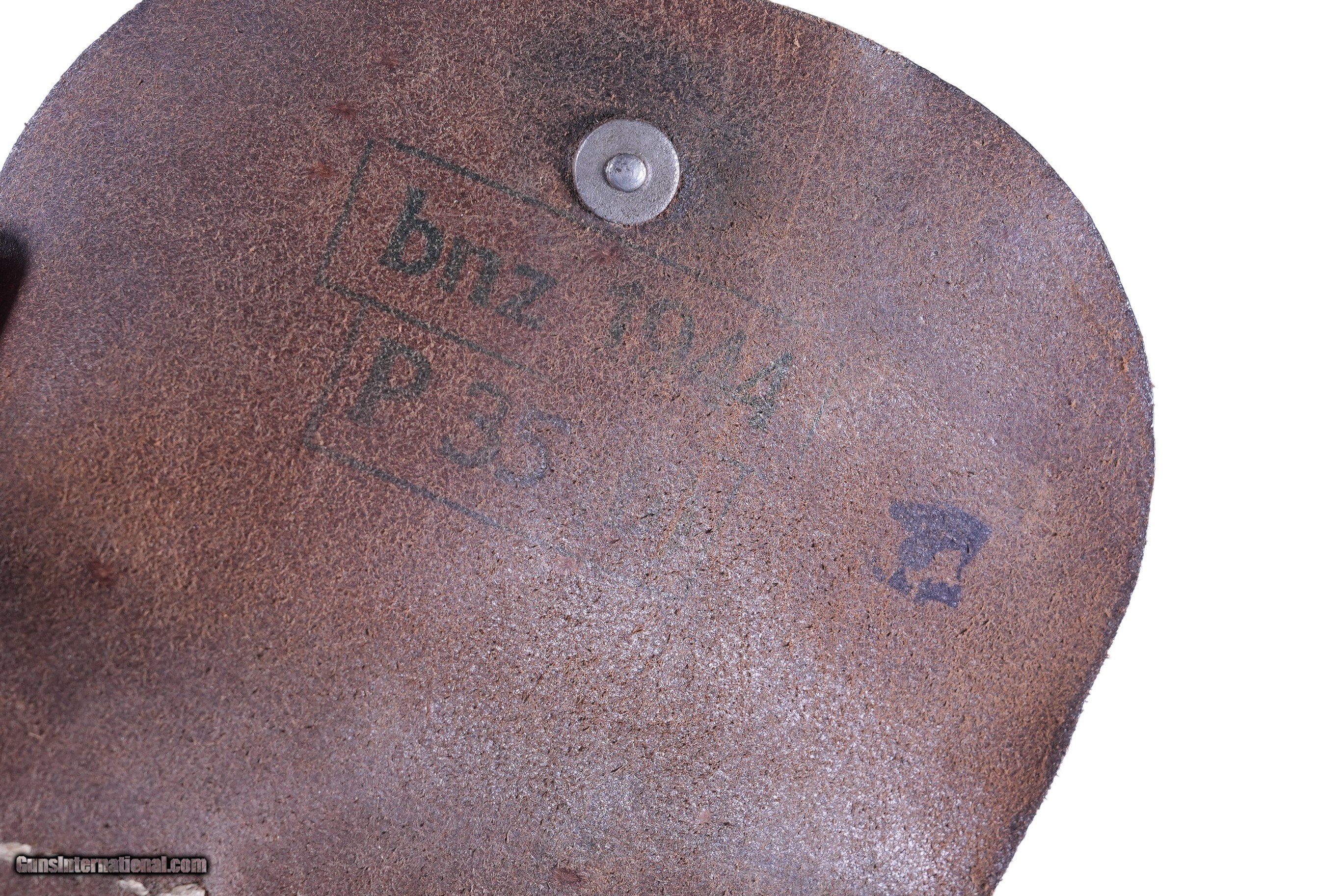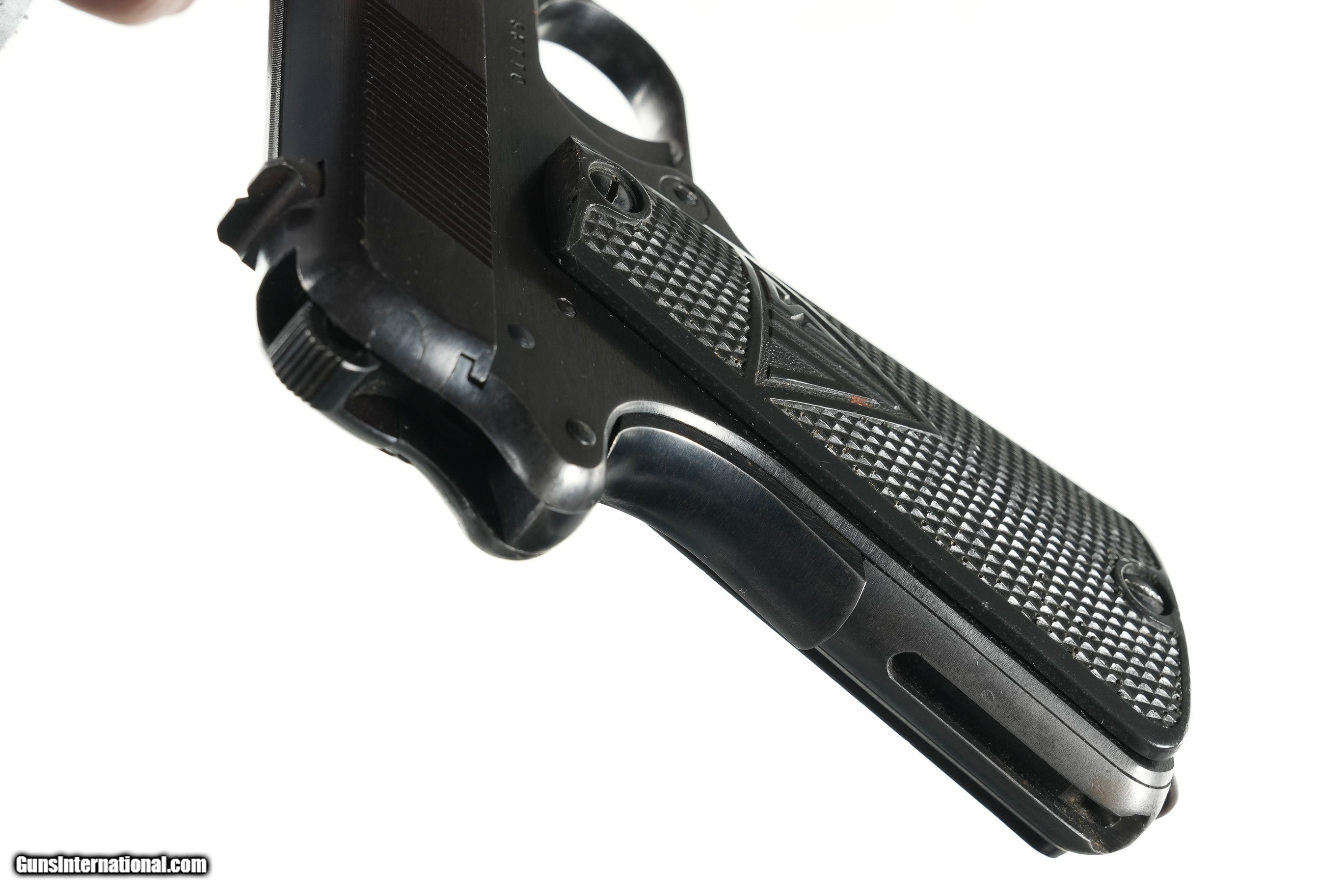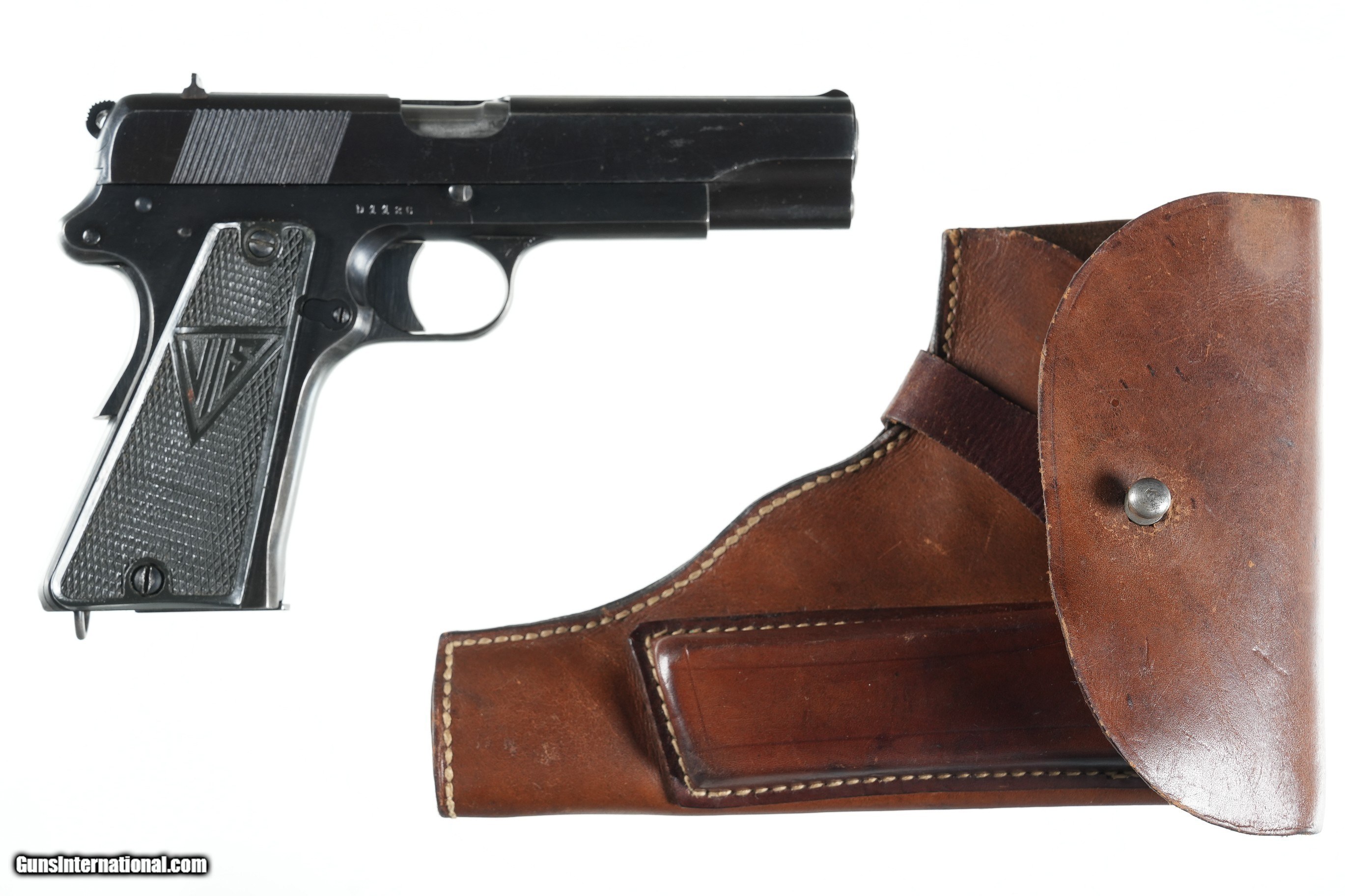 Description: WW2 Polish Vis Radom P-35 9mm pistol . Early production under German occupation with slotted grip for shoulder stock. Triple latch with high polish blue and Eagle 77 inspections, with proper spare magazine and white stitch bnz 44 marked russet flap holster, Condition, Exceptionally fine with 97& blue. Bright bore and excellent grips . Mechanically excellent. Holster is very fine with solid stitching and supple leather. Spare magazine is very fine • Free Shipping, No Credit Card Fees. • Lay-a-way available for this firearm. • 1/3 Down, a 1/3 in 30 Days, 1/3 in 60 Days. SOLD Curio/Relic: Yes Manufacturer: Radom Model: Vis 35 Serial Number: D1126 Barrel Length: 4 5/8 |