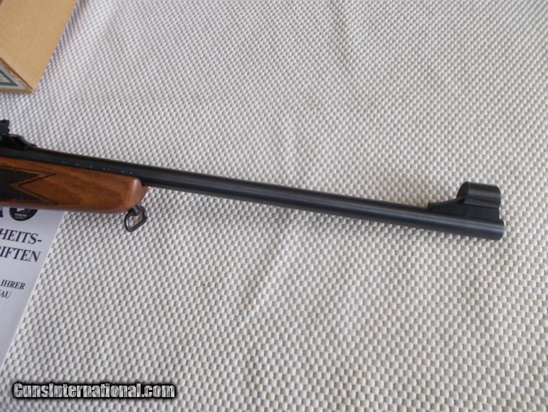 Description: 10 shot mazaine, 18" bbl., hooded front, fixed adjustable rear, deluxe checkered stock, very limited production, Asnew possibly unfired in box , all paperwork & manual, as good as appeal & quality gets SOLD |