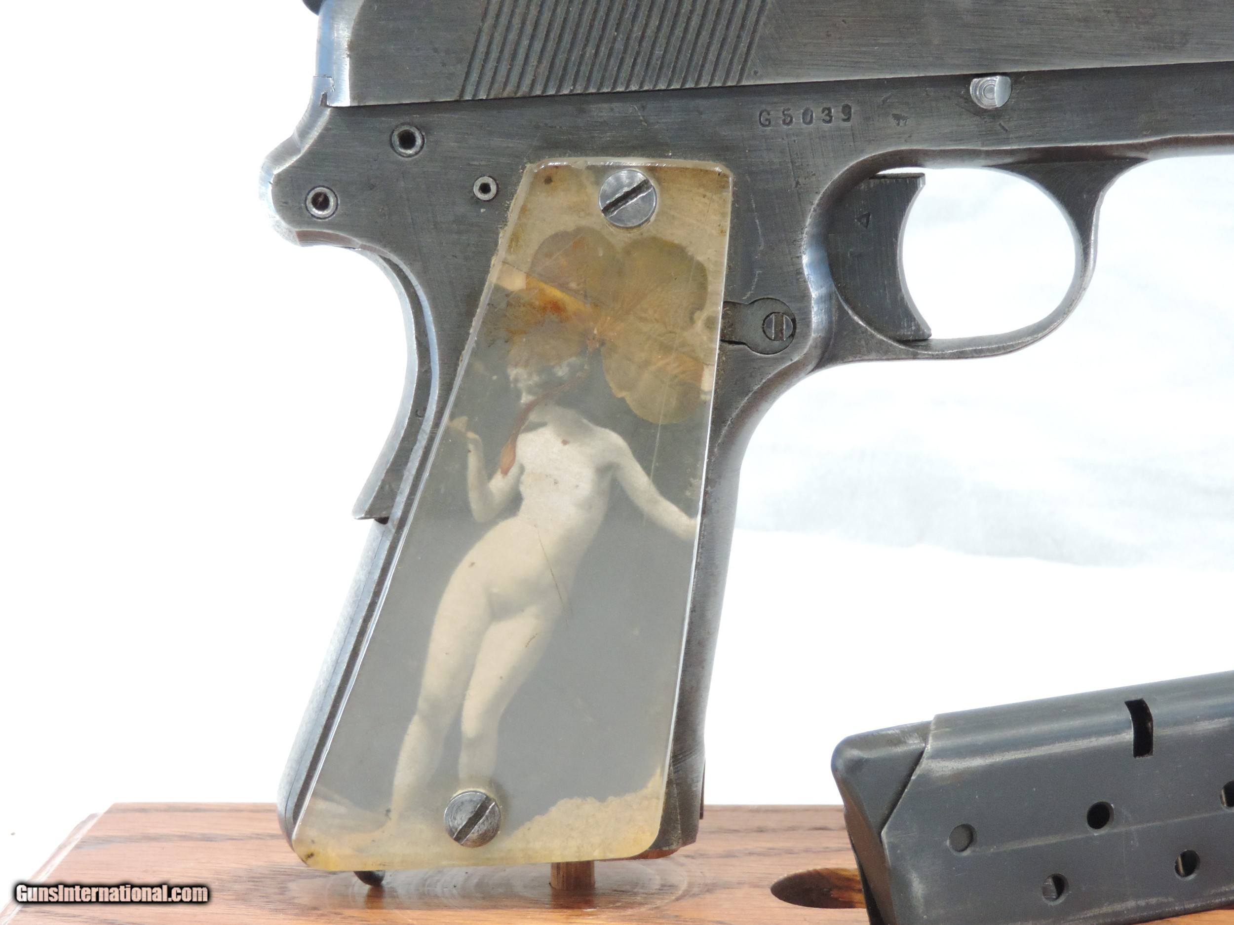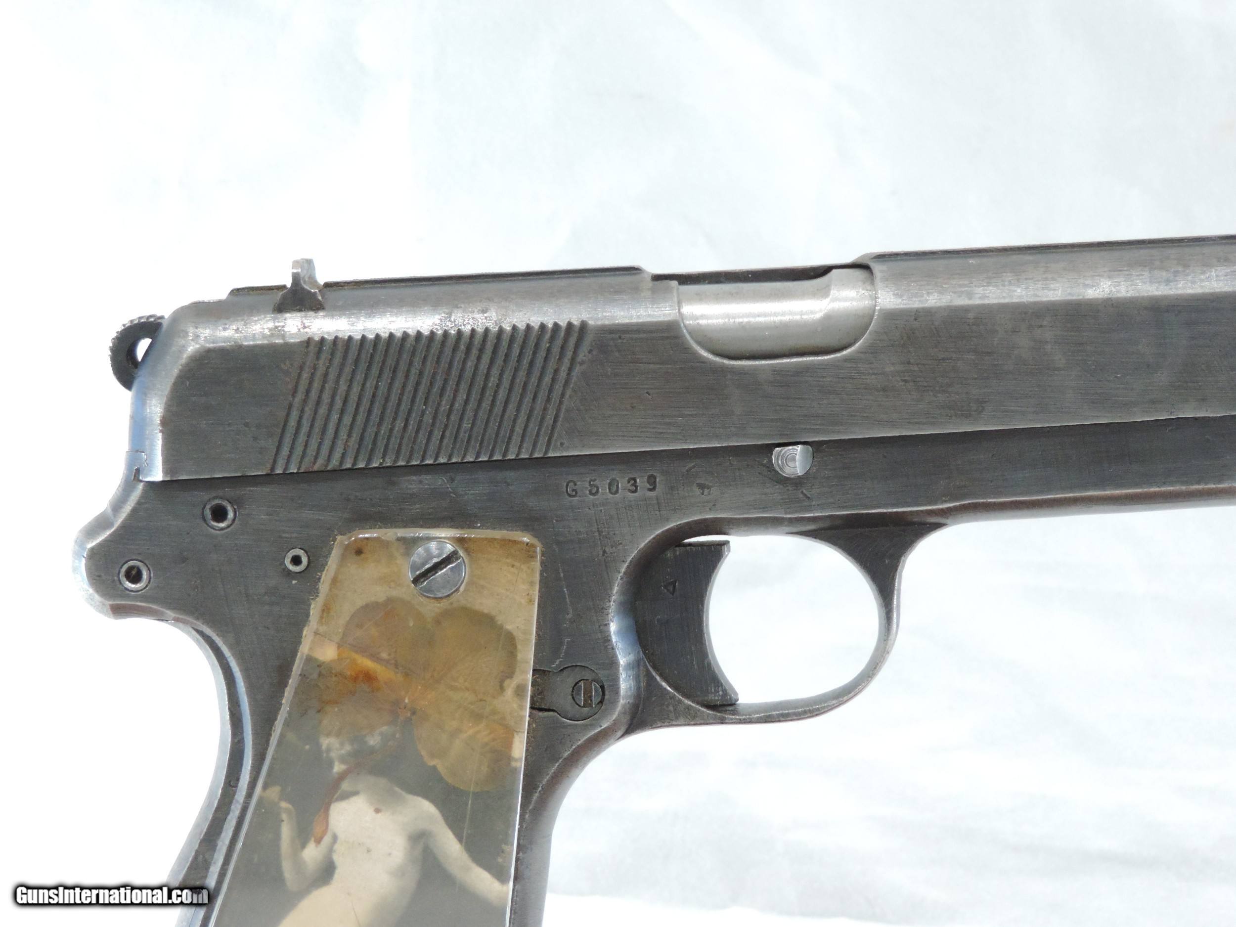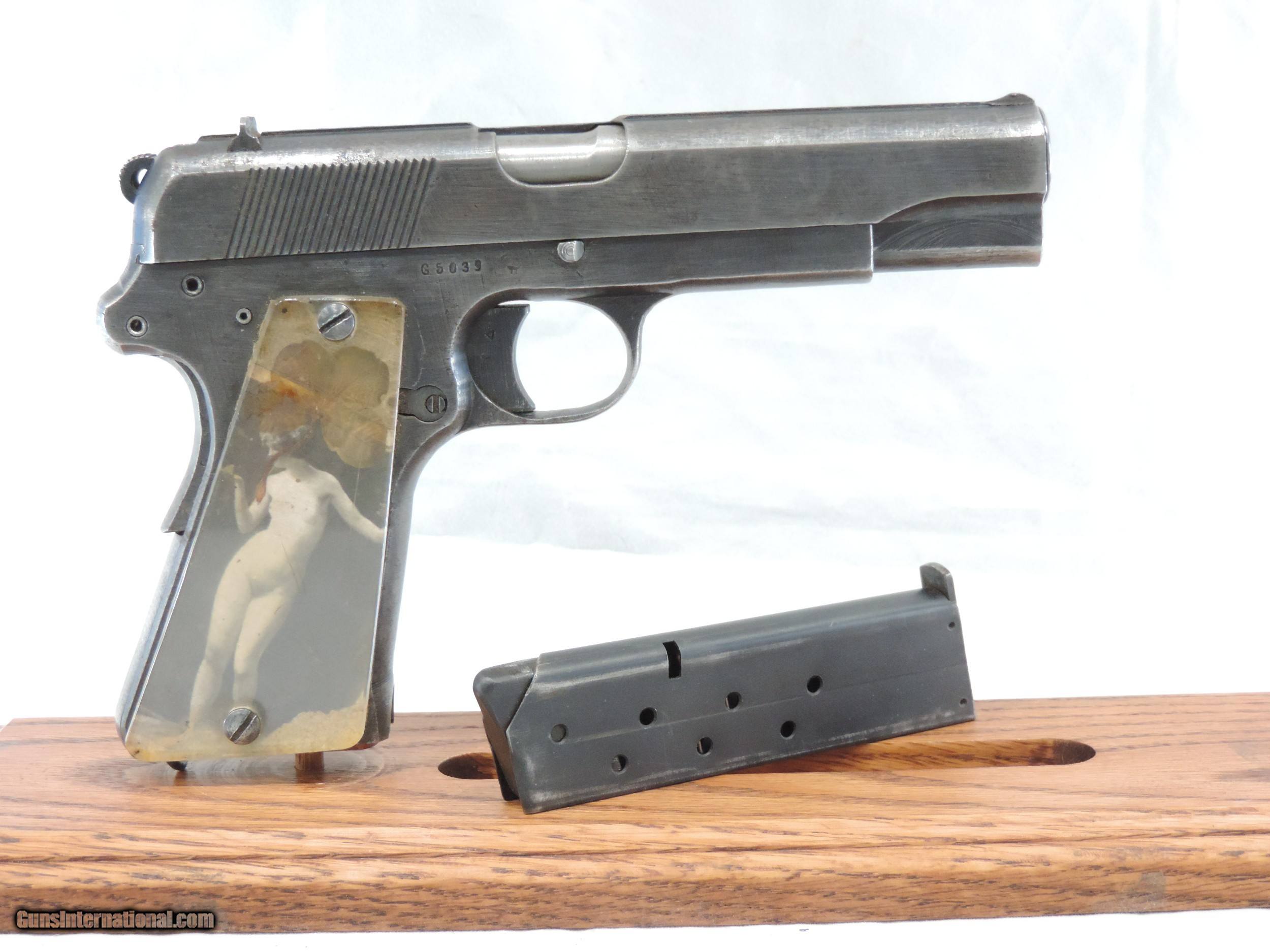 Description: INV. 9194 WOW!!, NAZI P-35 POLISH RADOM, CAL 9MM, SER. G 5039. THIS G.I. BRINGBACK P-35 HAS AN AWESOME STORY. THE GUN IS HOLSTER WORN TO ABOUT 40% OF THE ORIGINAL FINISH EXCEPT FOR A FEW SCATTERED PIN PRICKS. ALL NUMBERS MATCH AND HAVE THE PROPER WAFFENAMTS. THE BORE IS VERY BRIGHT WITH CRISP SHARP RIFLING AND LIGHT SCATTERED FROST. THE GUN APPEARS TO BE FULLY FUNCTIONAL. THE GRIPS ARE LUCITE REPLACEMENTS. WE THINK THAT THE DECEASED GOT THIS NAZI SOLDIER'S GUN WHEN HE WAS WITH THE 70TH INF. DIV DURING THE INVASION OF FRANCE. WE THINK THE GRIPS MIGHT HAVE BEEN MADE FROM A DOWNED PLANE. BEHIND THE LEFT GRIP IS A VERY OLD PICTURE OF A NAKED GIRL. THE RIGHT GRIP ALSO HAS A NAKED GIRL AND A DRIED FOUR LEAF CLOVER. THE PICTURES ARE TYPICAL OF THOSE FOUND ON FRENCH POST CARDS PRIOR TO WWII. INCLUDED WITH THE GUN ARE ALL OF THE RIBBONS AND MEDALS WON BY THE G.I. PLUS A BRONZE STAR WITH THE ORIGINAL CASE, A COMBAT INFANTRY MAN'S BADGE AND ASSORTED MEDAL RIBBONS, HIS DOG TAGS, UNIFORM INSIGNIAS, A WARTIME HISTORY OF THE 70TH INFANTRY, AND AN ONE PROPER RADOM MAGAZINE. FOR THE WW II HISTORIAN IT IS A GREAT FIND, MODESTLY PRICED..$1295.*** ***100% PURCHASE SATISFACTION GUARANTEED To purchase this firearm or if you want to request more information contact us at: Email ckguns[at]ymail[dot]com Phone 201-512-0002 Cell 201-575-6838 FAX 201-215-4759 We accept most major credit cards. Prices shown are Discounted 3% for Cash or Check. The buyer must be familiar with all the laws governing the purchase and the ownership of firearms in their own city and state. The Yankee Armorer, Inc is not responsible for any failure to comply with or observe these laws. The Yankee Armorer, Inc will only ship after full payment and receipt of all required documents. Shipping: Add $35.00 for handguns, $45.00 for long guns. New Jersey buyers are subject to a 7% sales tax. The Yankee Armorer, Inc offers a 3 day inspection period with full refund upon return of intact firearm and in the original condition. The Yankee Armorer, Inc offers a no interest lay away program - 25% down; 25% in 30 days; 25% in 60 days; and full payment in 90 days. Any violation of this policy is subject to restocking and forfeiture of all payments. Any variation from this policy must be agreed to in advance. Unshipped Cancelled sales are subject to a 20% restocking fee. Be advised that all firearms sold by The Yankee Armorer, Inc. or the Gun Exchange, LLC (SELLER) are sold as collector’s items. They have not been fired or tested for safety and must be examined by a license gunsmith prior to use. By purchasing any item from the (SELLER), you are agreeing to hold the (SELLER) free from any damages or lawsuits of any nature. Any item left for transfer or storage will be charged to $25.00 per month, per item from the day of its receipt. Any variation from this policy must be agreed to in advance. Store hours 10:00 am to 5:00 pm Tuesday -Saturday. It's always best to call for appointment. Store 201-512-0002, cell 201-575-6838. SOLD Handgun Caliber: 9x19mm Parabellum (9mm Luger, 9x19mm NATO) |