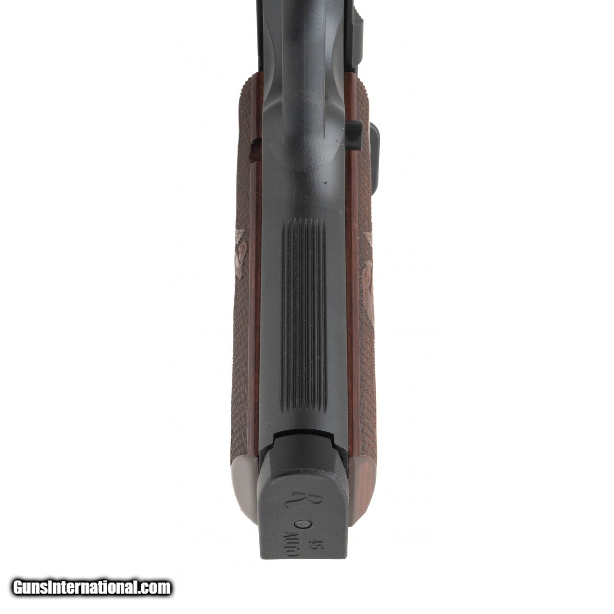 Description: " SN:RHN26286A. Modern production, .45ACP with a 5.75"" barrel. Bore is in excellent condition. Full size 1911 frame with a threaded barrel and USMC wood grip and front and rear slide serrations. Overall condition is excellent. Comes with box. SOLD |
