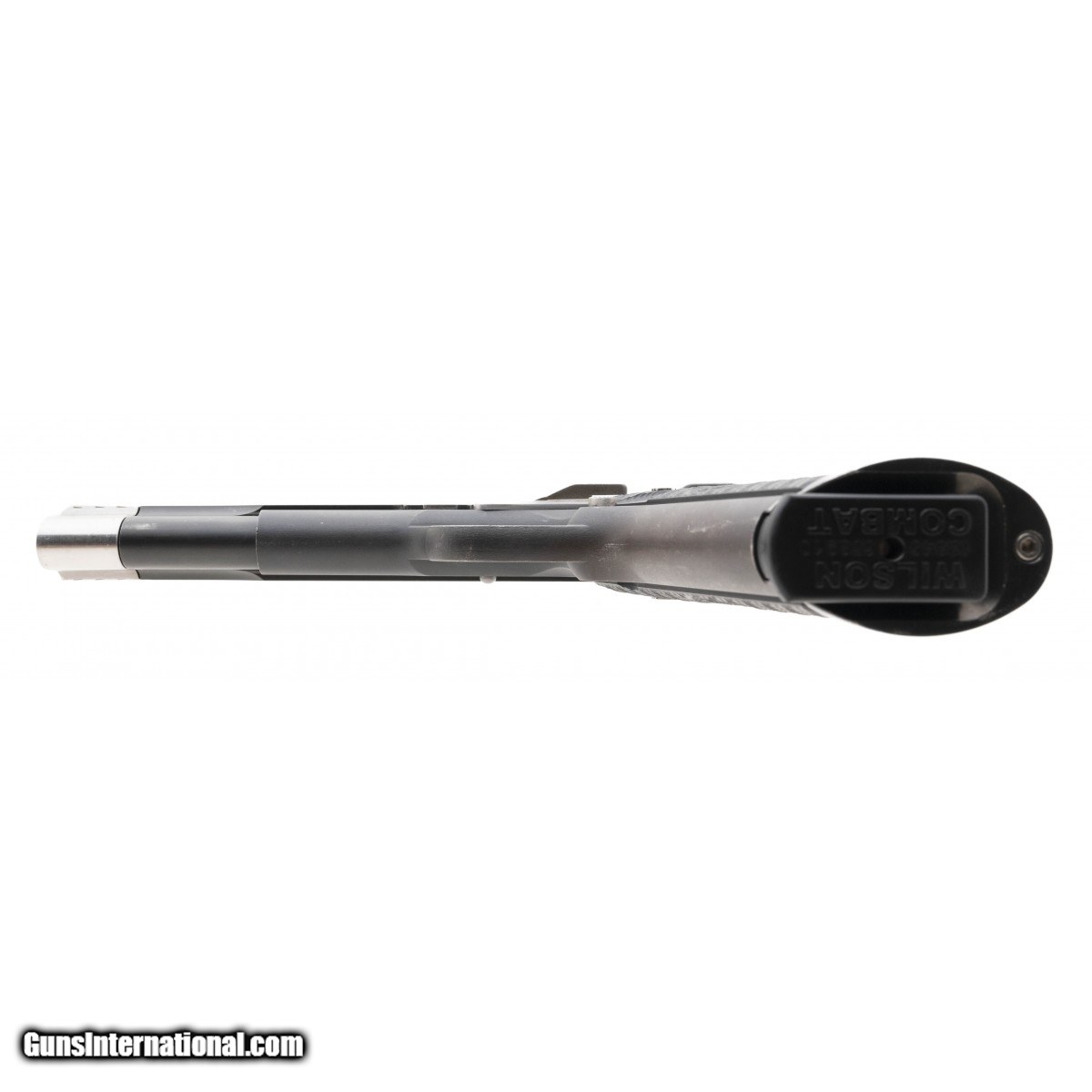 Description: " Full size custom 1911 with 5"" barrel and mounted 3 port compensator. Two tone black and stainless finish and g10 grips. Has checkered backstrap, flared magwell, extended safety, slide release and beaver tail. Has some wear from use and is overall good plus condition. SOLD |