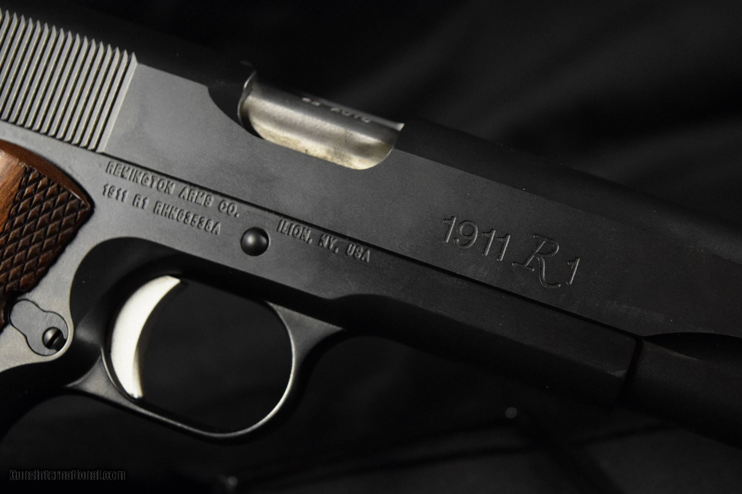 Description: The accuracy and reliability that have made 1911 an American icon now shine brighter than ever. The new Model 1911 R1 is truly the finest blend of exacting craftsmanship and out-of-box performance available today. This package comes with 2 magazines, 1 lock, and the original hard case. The overall condition is excellent with little to no handling marks. Pre-Owned - Remington 1911 R1 Semi-Auto .45 Auto 5" Handgun