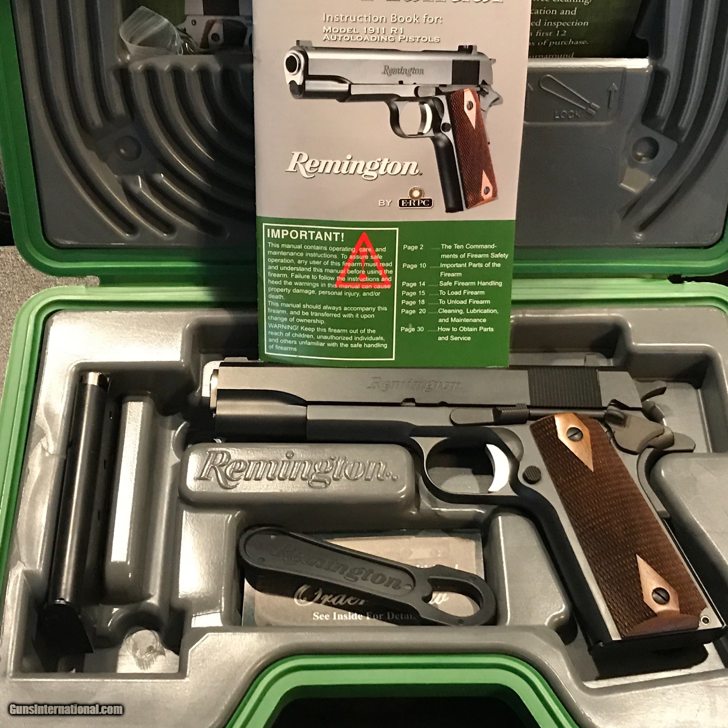 Description: #THIS IS A NEW IN THE BOX REMINGTON 1911 R1 5" TAKE NOTE WWII REMAKE #NEW IN THE BOX# FROM DECEMBER OF 2010 THIS IS A GALLERY OF GUN'S "DAVIDSON'S" FULL LIFETIME WARRANTY FIREARM JUST REDUCED TO SELL Remington, R1, 1911, Full Size, 45ACP, 5" Barrel, Steel Frame, Satin Black Finish, Walnut Grips, Fixed Sights,7Rd, 2 Magazines