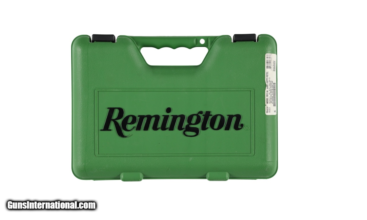 Description: NIB Manufactured in: USA Hand: Right Hand Action Finish: Blue Metal Finish: Original Barrel Length: 5 Inches Barrel Condition: As New Extra Barrels: No. SOLD Manufacturer: Remington Model: 1911 Caliber Info: .45 ACP Condition: Preowned Metal Condition: As New Action: Semi Automatic Finish: Original Extras: No. Case: Maker's Hard Plastic |