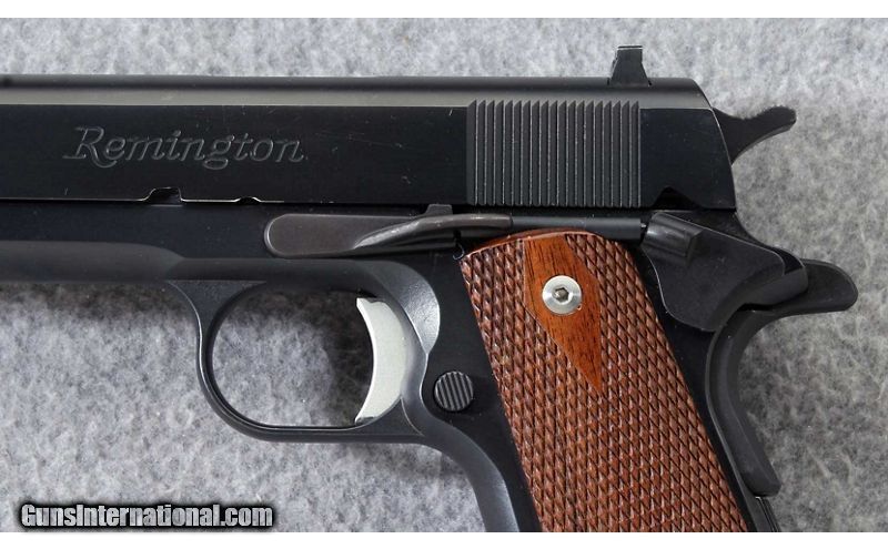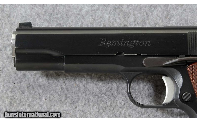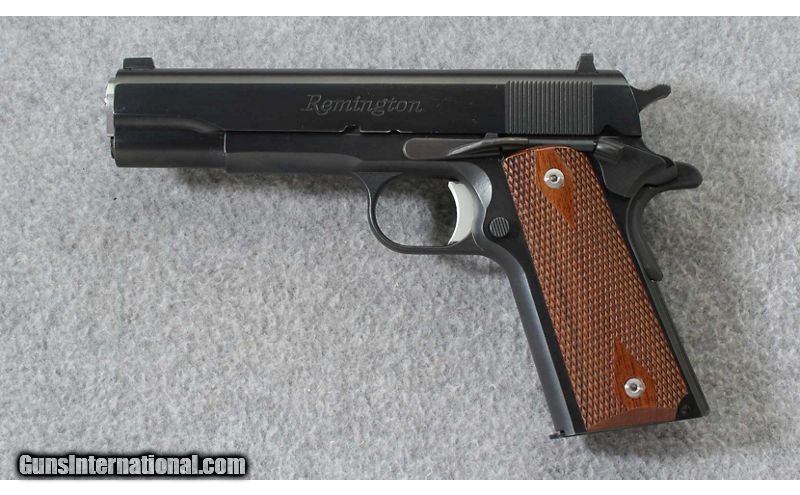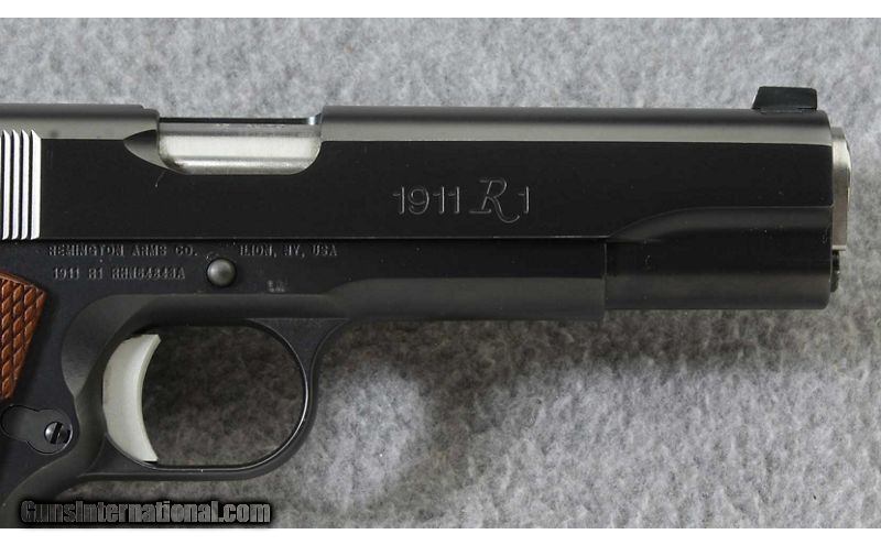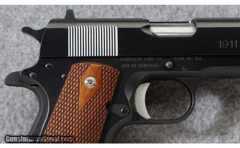 Description: The Remington® Model 1911 R1™ Semi-Auto Pistol is a single-action, recoil-operated, semi-automatic handgun based on the John M. Browning designed M1911. The Remington R1 machined to ultra-tight tolerances and an iconic design, proven in combat for over a century. A solid steel frame and slide, with a match grade, stainless steel barrel and bushing give you strength, reliability, and accuracy. Remington has kept many of the original features of the M1911, including a spur hammer, flat main spring housing, and a standard grip safety and safety lock. The spur hammer with the original grip safety allows the shooter better access to cocking the pistol by reaching up with the thumb. Both the front and rear sights of the Remington Model 1911 R1 Semi-Auto Pistol are dovetailed, and can be adjusted for windage or replaced with aftermarket 1911 sights. .45 ACP SOLD Metal Condition: Excellent with a little wear on some sharp edges Wood Condition: Excellent Bore Condition: Excellent Barrels: 5 inch barrel Triggers: Single action Weight: 40 Oz. Sights: Three dot sights Item Location: Lehi, UT |