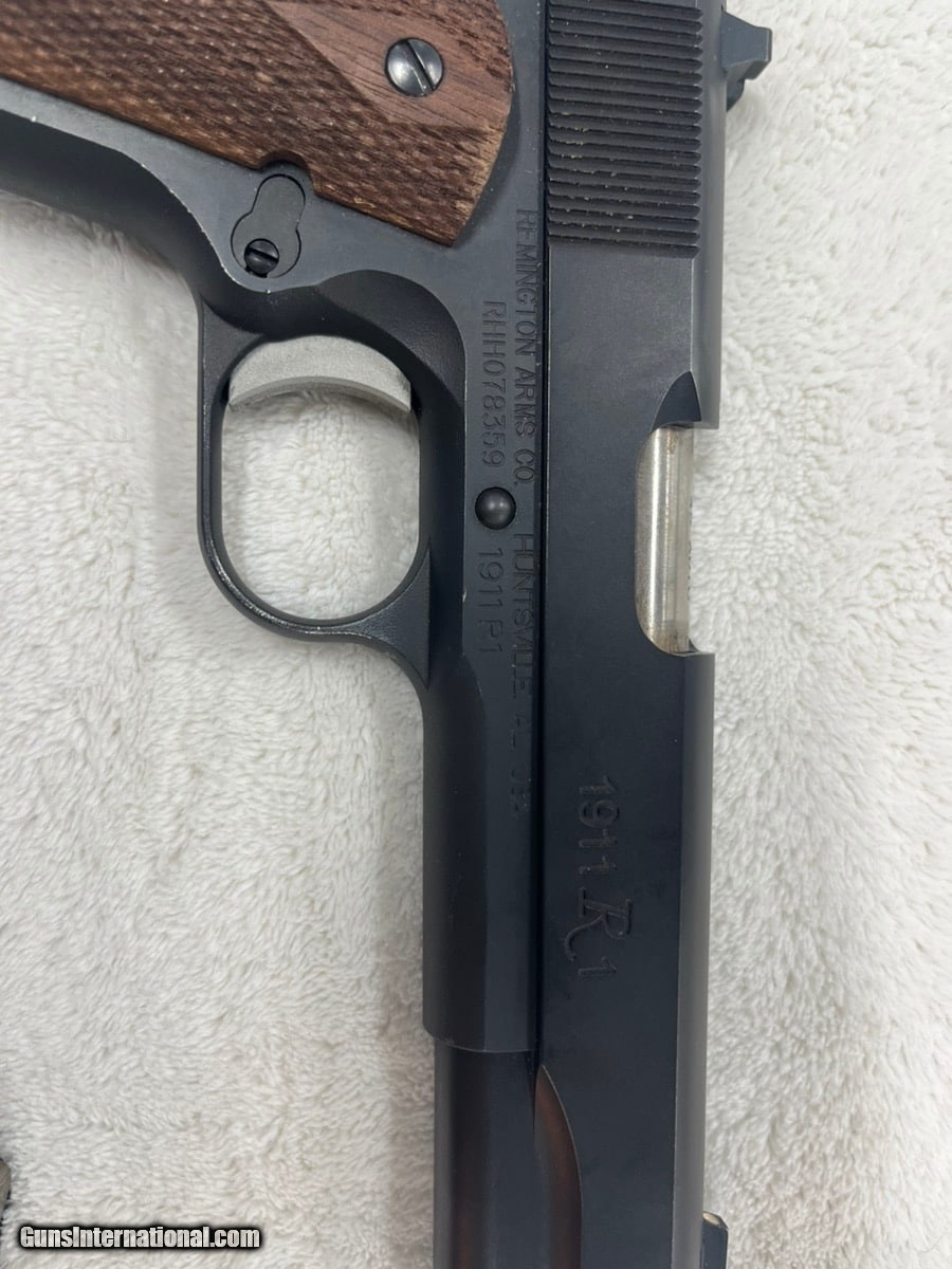 Description: Guns Listing ID: 1124550 Inventory Number: FCN017780 Description: PISTOL: REMINGTON ARMS COMPANY MODEL 1911 R1, SEMI - AUTOMATIC, 45 ACP (45 AUTO),BLUE, 5.5\" Specific Details: NRA Modern Gun Condition Rating Standards: VERY GOOD: In perfect working condition, no appreciable wear on working surfaces, no corrosion or pitting, only minor surface dents or scratches. Finish / Color: BLUE Case & Box: No - Not Included Caliber: 45 ACP (45 Auto) Action: Semi - Automatic Magazine: Yes - Includes Original Magazine Holster: No - Not Included SOLD Manufacturer: REMINGTON Model: 1911 R1 Caliber Info: .45 ACP Condition: Used - Non-Certified Barrels: 5.5 BARREL Finish: BLUE |