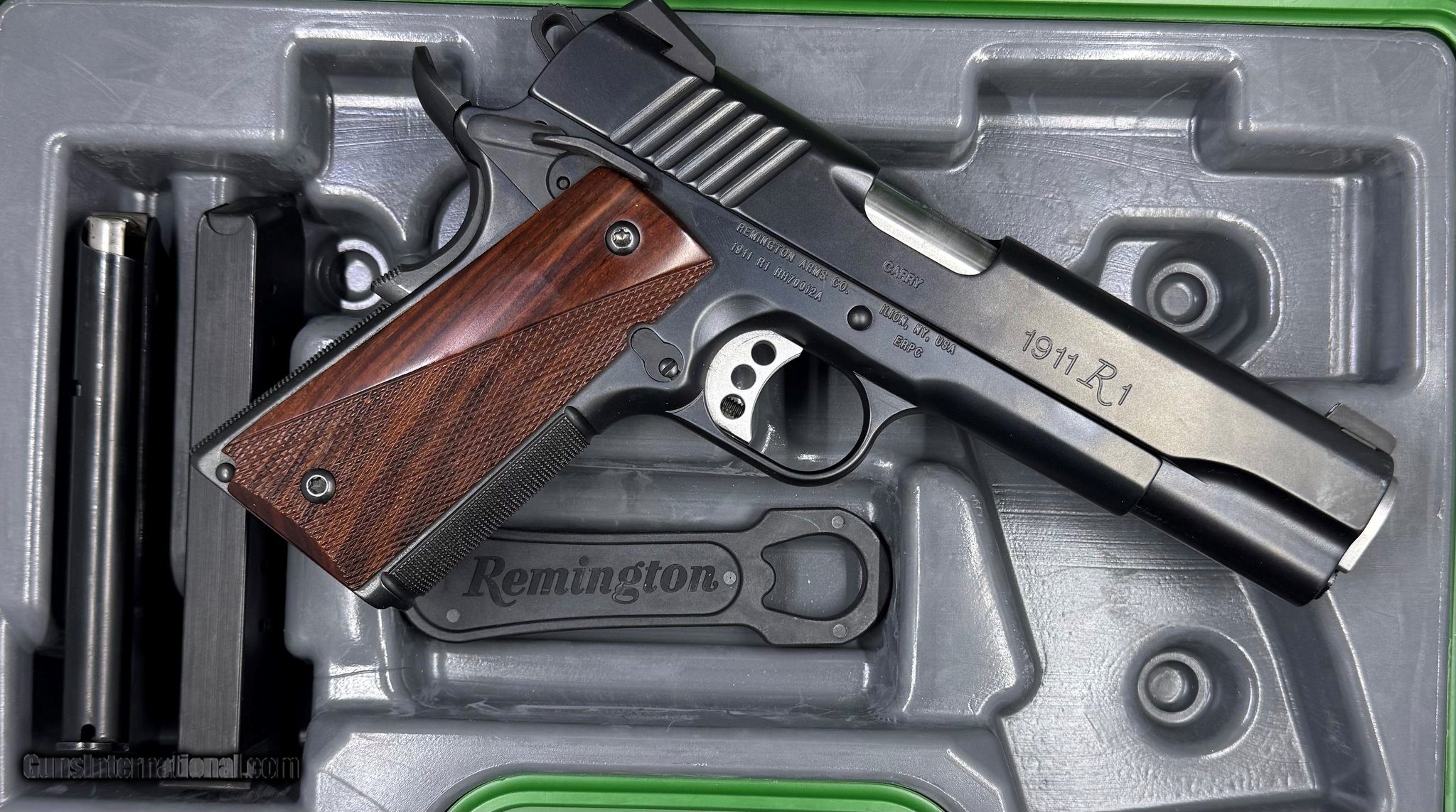Description: Guns Listing ID: 481198 Remington 1911 R1 Action: Semi-automatic, single action Caliber: .45 ACP – Known for its stopping power, the .45 ACP cartridge has been a staple in military, law enforcement, and civilian use for over a century. Barrel Length: 5 inches – This is the standard barrel length for full-size 1911 pistols and provides a good balance of accuracy, velocity, and manageable recoil. Finish: Blued steel – The traditional blued finish provides a sleek, classic look and helps protect the firearm from corrosion, although it may require more care to maintain than stainless or other more weather-resistant finishes. Magazine Capacity: Typically 7 or 8 rounds, and your specific model includes two magazines. Sights: The Remington 1911 R1 usually comes with fixed, white dot sights (front and rear), offering good visibility for everyday use, but it may not be as ideal for precise competition shooting without upgrades. Grip: The pistol features checkered polymer or wood grips, designed for better control and a more comfortable hold. Frame: Steel frame construction ensures durability and strength, contributing to the overall weight and feel of the pistol. Key Features: Classic 1911 Design: The Remington 1911 R1 retains the classic features of the original design, including the full-sized frame, single-action trigger, and short recoil operation. It’s a great choice for those who appreciate the heritage and handling of the 1911 platform. Durable and Reliable: Remington has built a reputation for creating high-quality firearms, and the 1911 R1 continues that legacy. The solid steel frame and blued finish offer strength and longevity, while the .45 ACP cartridge ensures significant stopping power. Traditional Styling with Modern Features: While it retains the look and feel of the original 1911, the Remington R1 includes some modern updates like enhanced checkering on the grips for better handling and extended beavertail grip safety for a more comfortable shooting experience. Accuracy and Performance: The 5\" barrel is standard for the 1911, providing good accuracy at typical self-defense and range distances. The single-action trigger also contributes to a smooth and crisp shooting experience. Additional Magazines: The pistol comes with two magazines, which is an excellent feature for those who plan to shoot frequently, whether at the range or for self-defense purposes. More magazines allow for quicker reloads and more extended shooting sessions. Original Box: The inclusion of the original box can be a bonus for collectors or those looking to maintain the full set of accessories that came with the firearm. Considerations: Weight: As is typical with full-size 1911s, the Remington 1911 R1 is a bit on the heavier side, which can help reduce recoil but may make it less ideal for concealed carry. Capacity: While the .45 ACP round is known for its stopping power, the magazine capacity is lower compared to some modern semi-automatics, which usually hold more rounds in smaller calibers (e.g., 9mm). However, this is part of the classic 1911 design. Maintenance: Like many 1911-style pistols, the Remington R1 requires regular maintenance, especially the recoil springs and lubrication, to keep it performing at its best. The Remington 1911 R1 is a solid choice for anyone who appreciates the 1911 platform. It offers a perfect blend of classic design and modern reliability, making it a good fit for self-defense, target shooting, or collectors who want a premium take on the iconic 1911 pistol. SOLD Manufacturer: REMINGTON Model: 1911 R1 Condition: Used - Non-Certified Barrels: 5 Gauge Info: .45 ACP Finish: black |