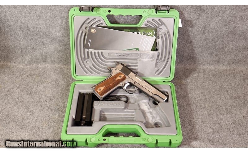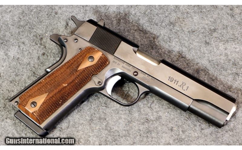 Description: For your consideration is a Remington 1911 R1 in .45 auto. This firearm is in great condition with almost no signs of wear on the finish and only a little on the checkering of the wood grips. This is a standard take on the 1911 with palm swell safety, SAO, and thumb safety on the left side. These are great shooting guns and make for a great addition to anyone's collection. .45 Auto SOLD Chambers: .45 Auto Metal Condition: Good condition with almost no signs of wear Wood Condition: Good condition with very light wear on right grip Bore Condition: Good condition Barrels: 5" stainless barrel Triggers: "Serrated curved trigger, Single action only Stock Dimensions: OAL 9 Weight: 2 lb 6 oz Sights: White 3 dot sights. Square notch rear and square post front Item Location: Wichita, KS |