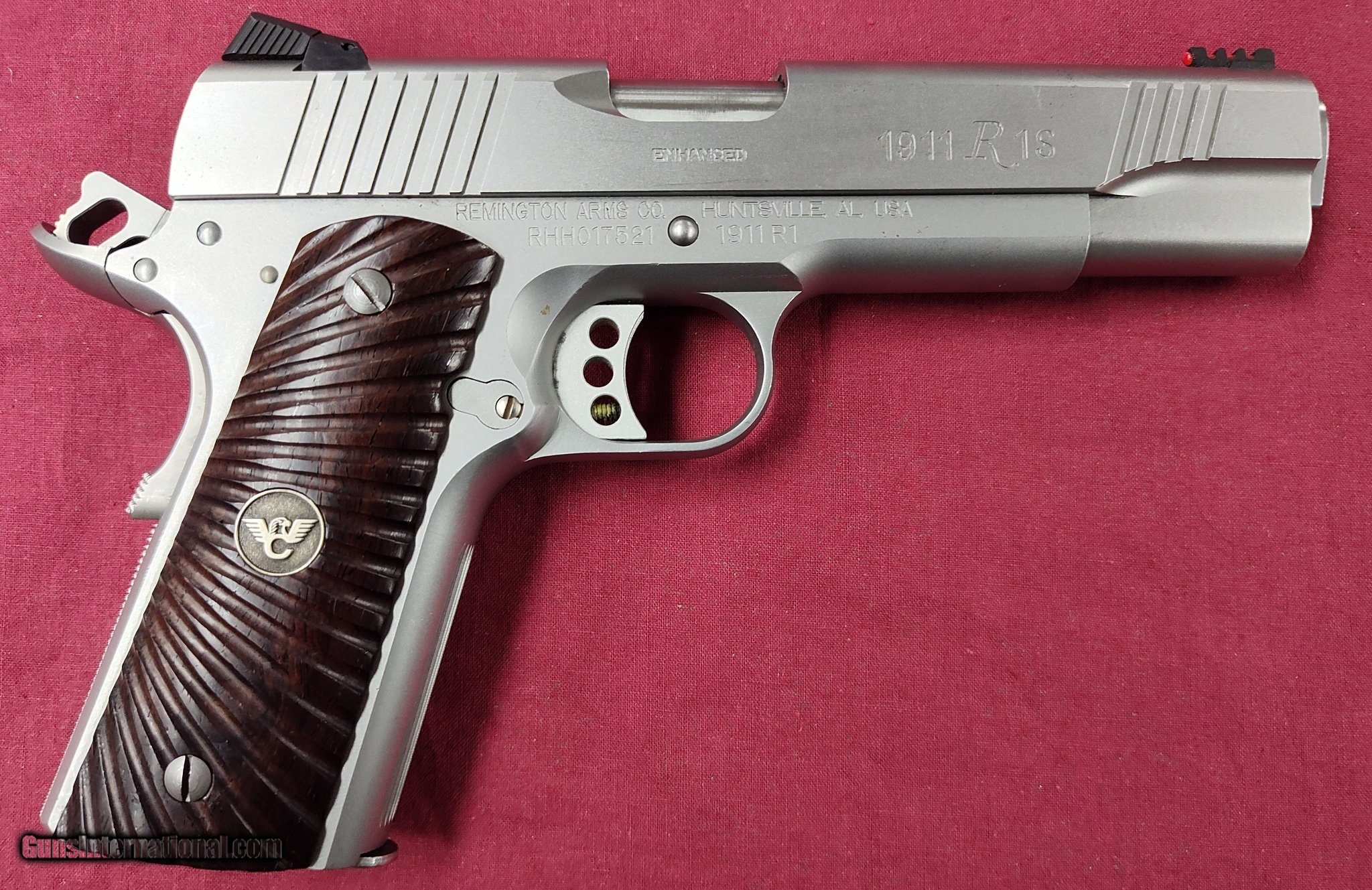 Description: Guns Listing ID: 1414019 USED REMINGTON R1 STAINLESS ENHANCED 1911 SOLD Manufacturer: REMINGTON Model: 1911 R1 45ACP 5 Caliber Info: .45 ACP Condition: Used - Non-Certified Barrels: 5 BARREL Finish: STAINLESS |