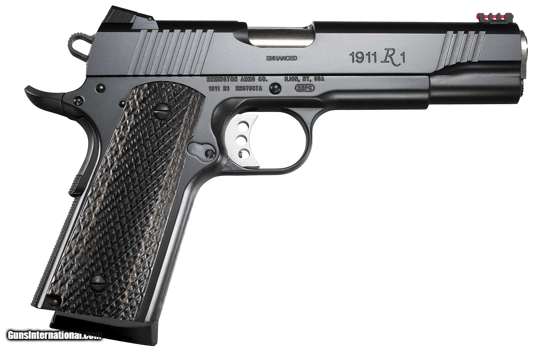 Description: Guns Listing ID: 22934 The Remington 1911 R1 Enhanced is a single-action semi-automatic handgun aggressively modeled after the classic M1911 and described by the company as a dominant force in competition. Built on a steel frame with a match-grade stainless steel barrel and bushing this full-size pistol has a skeletonized match trigger made of anodized aluminum and a checkered laminate wood grip. Other features of the 1911 Enhanced R1 include a beavertail grip safety enhanced hammer and robust fiber-optic front sight. It is available in 45 ACP and 9mm which features a flush-fit magazine. Details Caliber 9mm - Magazine Capacity 9 - Barrel 5 Stainless - Twist-1 turn in 1-16 LH - Overall Length 8.5 - Overall Height 5.5 - Trigger Pull 3.5-5 lbs. - Finish Satin Black Oxide - Grips Enhanced Wood Laminate - Avg. Wt. (oz.) 40 SOLD Manufacturer: REMINGTON Model: 1911 R1 ENHANCED COMMANDER Caliber Info: 9MM LUGER (9X19 PARA) Condition: new Barrels: 5 BARREL Action: SINGLE SHOT Weight: 2.4 |