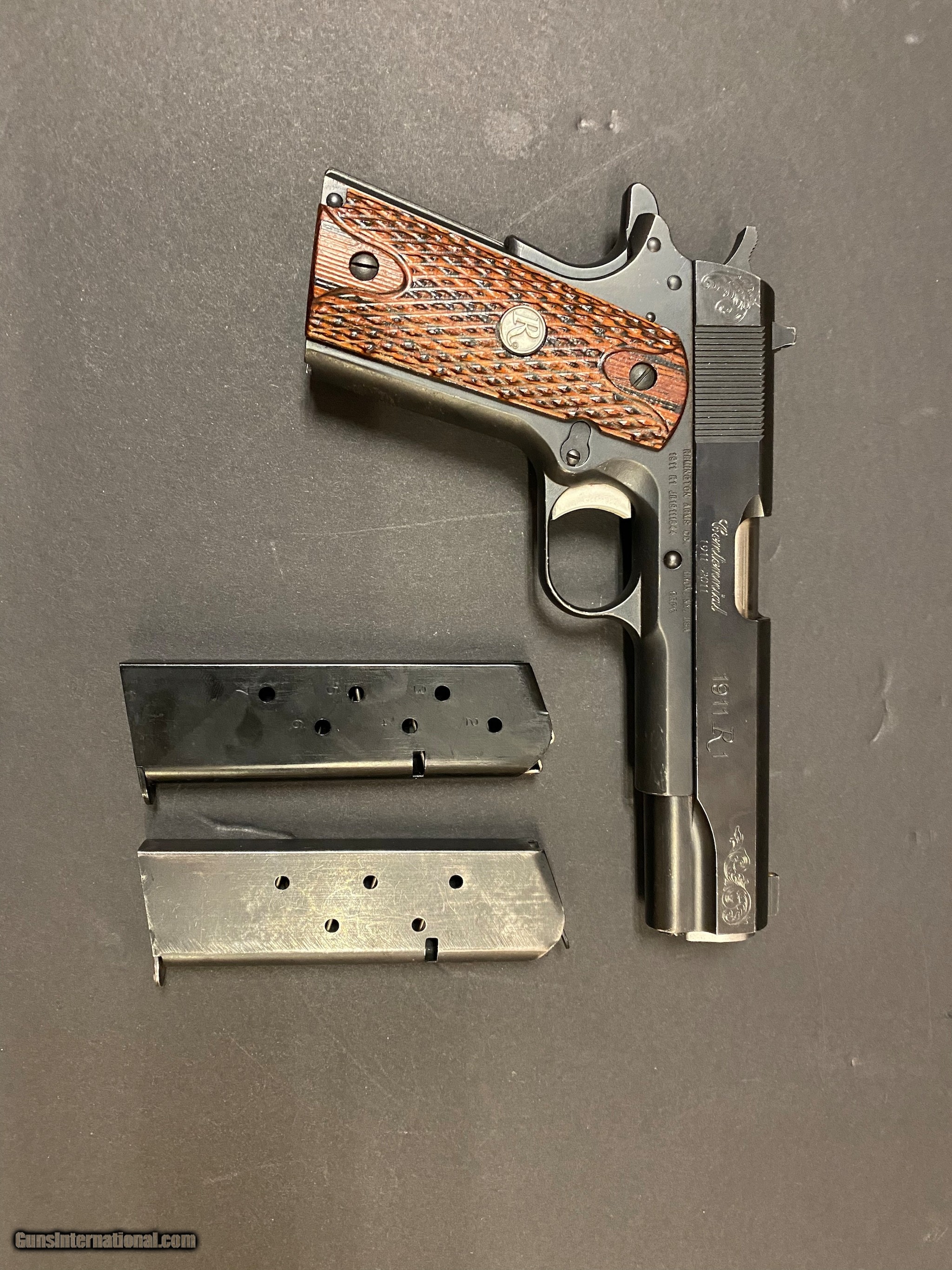 Description: Guns Listing ID: 511771 A sweet-shooting advancement of America‚‚s most reliable, accurate and enduring handgun. It features a crisp trigger, dovetailed rear and front sights, precision-machined slide and frame, and checkered double-diamond walnut grips. Includes 2 magazines and gun case SOLD Manufacturer: REMINGTON Model: 1911 R1 Caliber Info: .45 ACP Condition: Used - Non-Certified Barrels: 5 BARREL |
