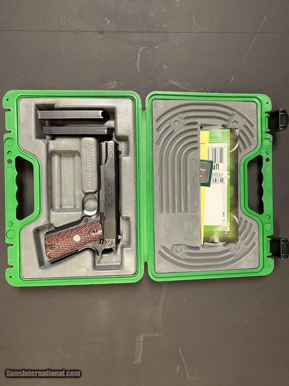 Description: Guns Listing ID: 511771 A sweet-shooting advancement of America‚‚s most reliable, accurate and enduring handgun. It features a crisp trigger, dovetailed rear and front sights, precision-machined slide and frame, and checkered double-diamond walnut grips. Includes 2 magazines and gun case SOLD Manufacturer: REMINGTON Model: 1911 R1 Caliber Info: .45 ACP Condition: Used - Non-Certified Barrels: 5 BARREL |