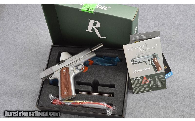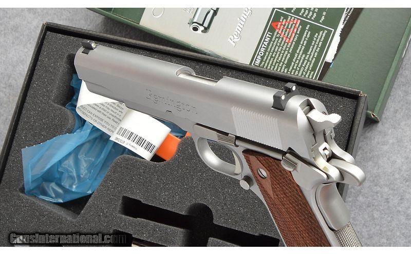 Description: The Remington R1 Stainless is a blend of modern stainless steel machined to ultra-tight tolerances and an iconic design, proven in combat for over a century. A solid steel frame and slide, with a match grade, stainless steel barrel and bushing give you strength, reliability, New in factory box with two magazines. .45 ACP SOLD Metal Condition: Satin Stainless Bore Condition: NEW Barrels: 5 Inch Triggers: Single Action Auto Weight: 2 lbs 7 oz Sights: Three-Dot Combat Sights Item Location: Buda, TX |