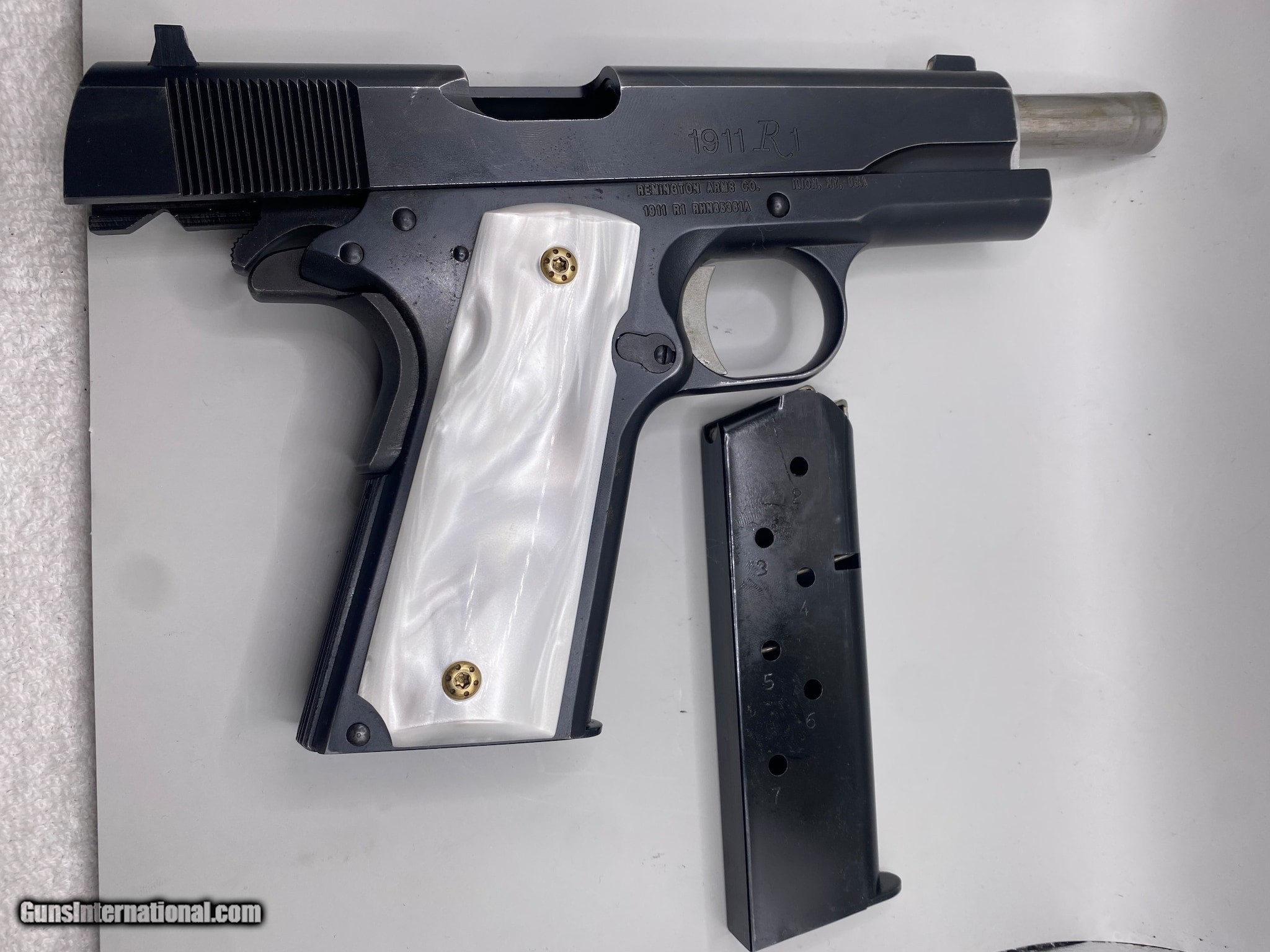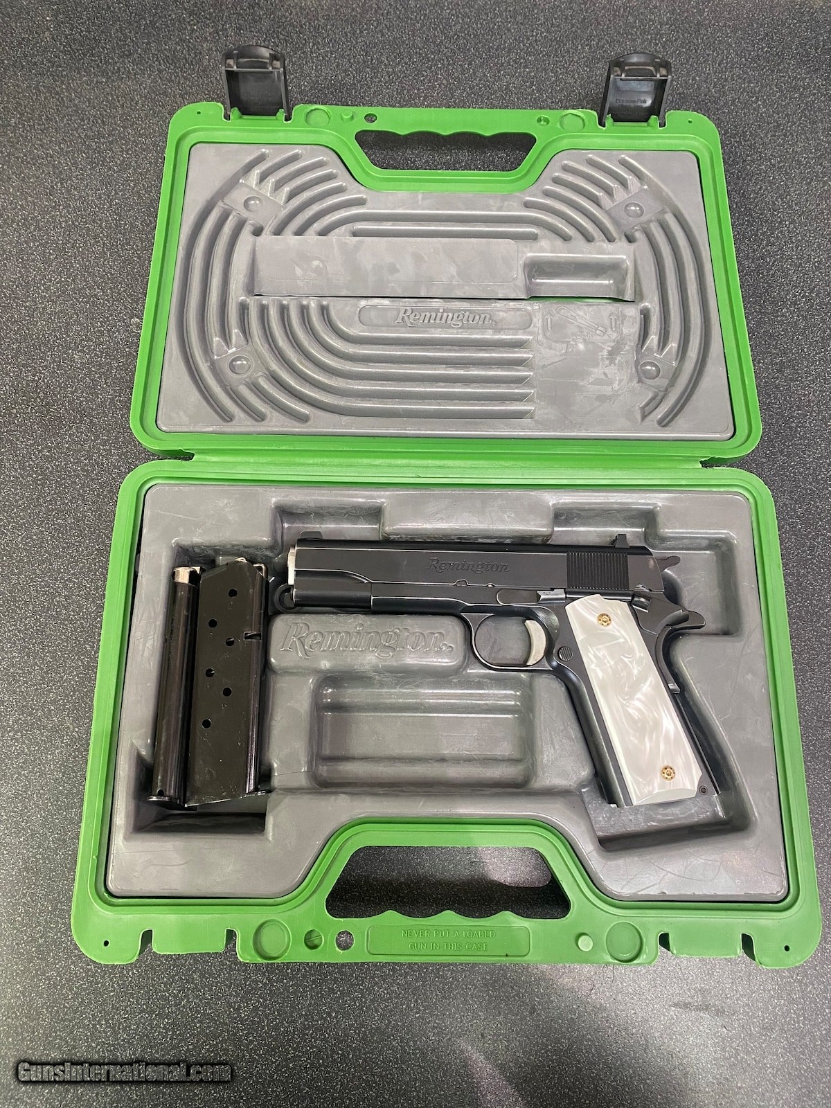 Description: Guns Listing ID: 860765 In original green hard case with two magazines . Please look at all photos to determine condition . Barrel Length5 inch Gun Weight38 oz. Hand Right Round Capacity 7 Chambers 7 round magazine. Sights Scope Blade front. Notch rear. White sight dots. Barrels5 inch barrel with a rear serrated slide. Metal Condition Very Good. SOLD Manufacturer: REMINGTON Model: 1911 Caliber Info: .45 ACP Condition: Used - Non-Certified Barrels: 5 BARREL Finish: BLACK |