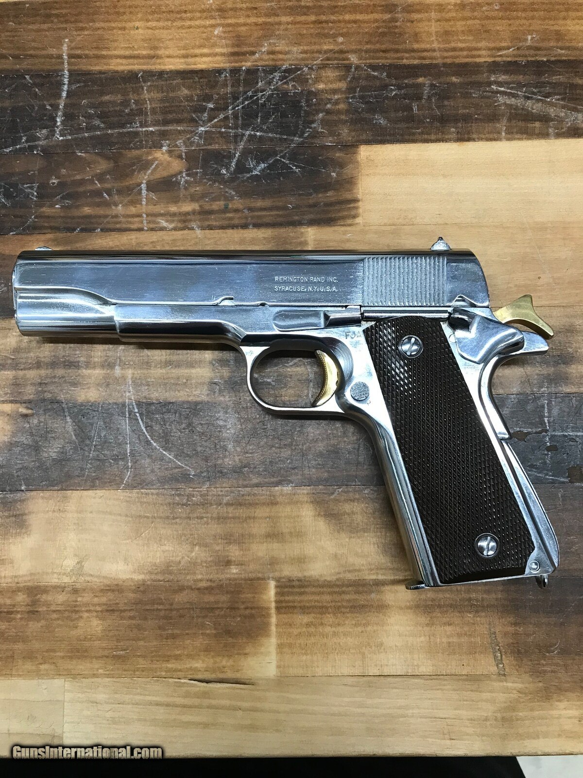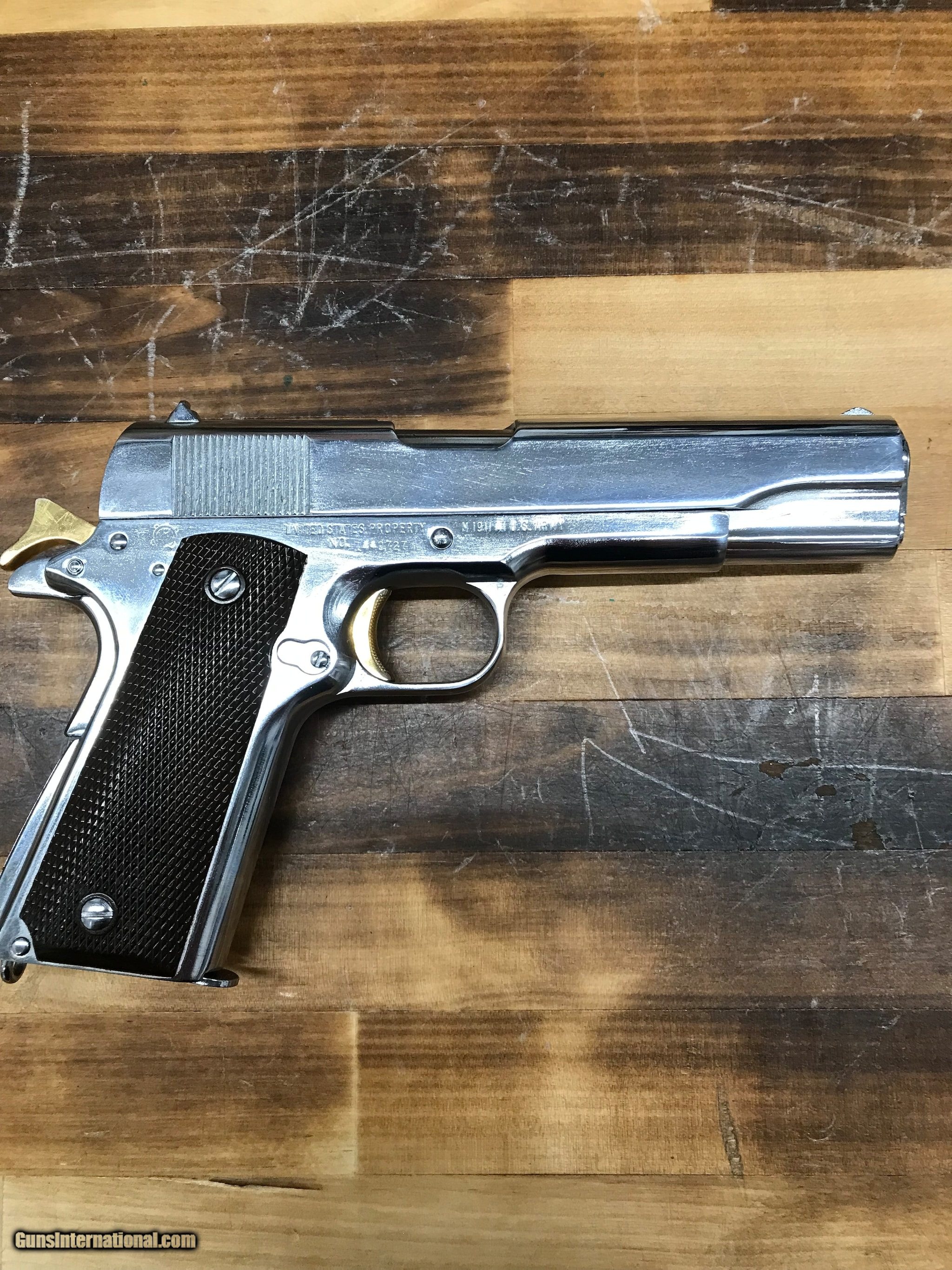 Description: Guns Listing ID: 904578 This is a used WW2 m 1911 A1 U.S army property, nickel plated with gold accents, comes with WW2 holster and belt. Great condition! SOLD Manufacturer: REMINGTON Model: 1911 Caliber Info: 45 Condition: Used - Non-Certified Barrels: 4 BARREL Finish: SILVER |