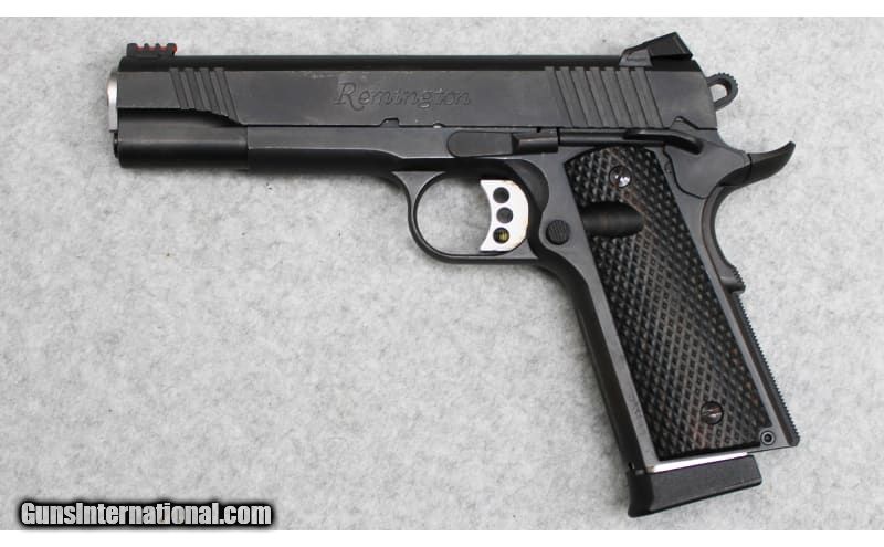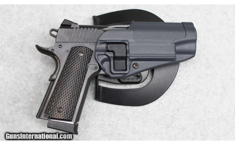 Description: Remington 1911R1 semiautomatic pistol chambered in .45 Auto. Features include a blued finish with 5-inch barrel and fiberoptic high visibility front sight. Comes with a paddle holster and one 8-round magazine. .45 Auto SOLD Metal Condition: Very Good with Minor Handling Marks Bore Condition: Bright and Clear with Good Rifling Barrels: 5 inch Triggers: Single Action Weight: 2 lbs 7 oz Sights: Notch Rear with High Visibility Front Item Location: Fort Worth, TX |