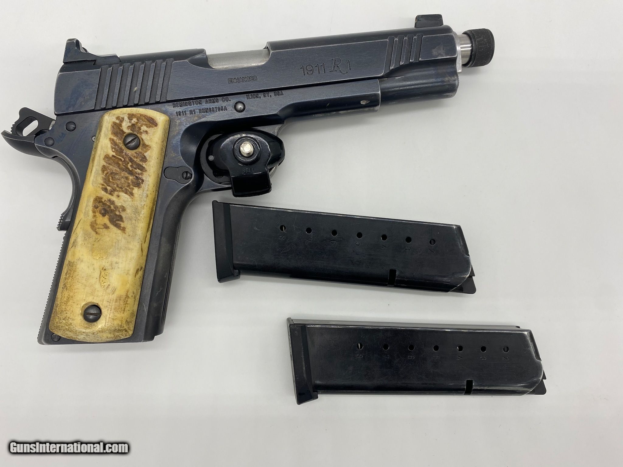 Description: Guns Listing ID: 570522 Comes with two magazines, and hard case shown in picture. Slight visible signs of cosmetic wear. SOLD Manufacturer: REMINGTON ARMS COMPANY, INC. Model: 1911 R1 Caliber Info: .45 AUTO RIM Condition: Used - Non-Certified Barrels: 4.5 BARREL Finish: BLUE STEEL |
