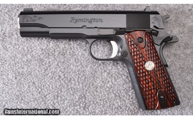 Description: This Remington 1911 R1 is the Centennial Edition (1911 - 2011) and remains in excellent condition showing little use of any kind. Bore is excellent. Complete with box! .45 Auto SOLD Metal Condition: Excellent Wood Condition: Excellent Bore Condition: Excellent Barrels: 5 Triggers: Factory Butt Pad: Checkered Rosewood Grips with Remington Medallion Weight: 38 oz Sights: White Dot Front - Fixed Square Notch Rear Item Location: Wheeling |