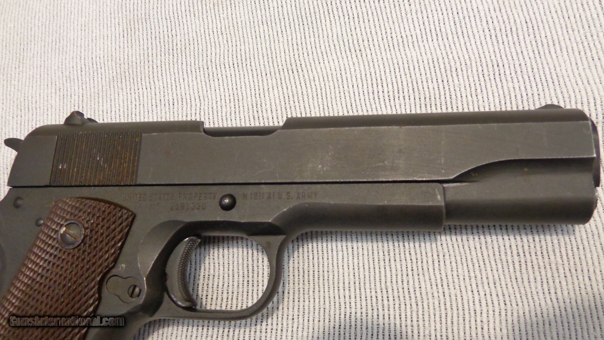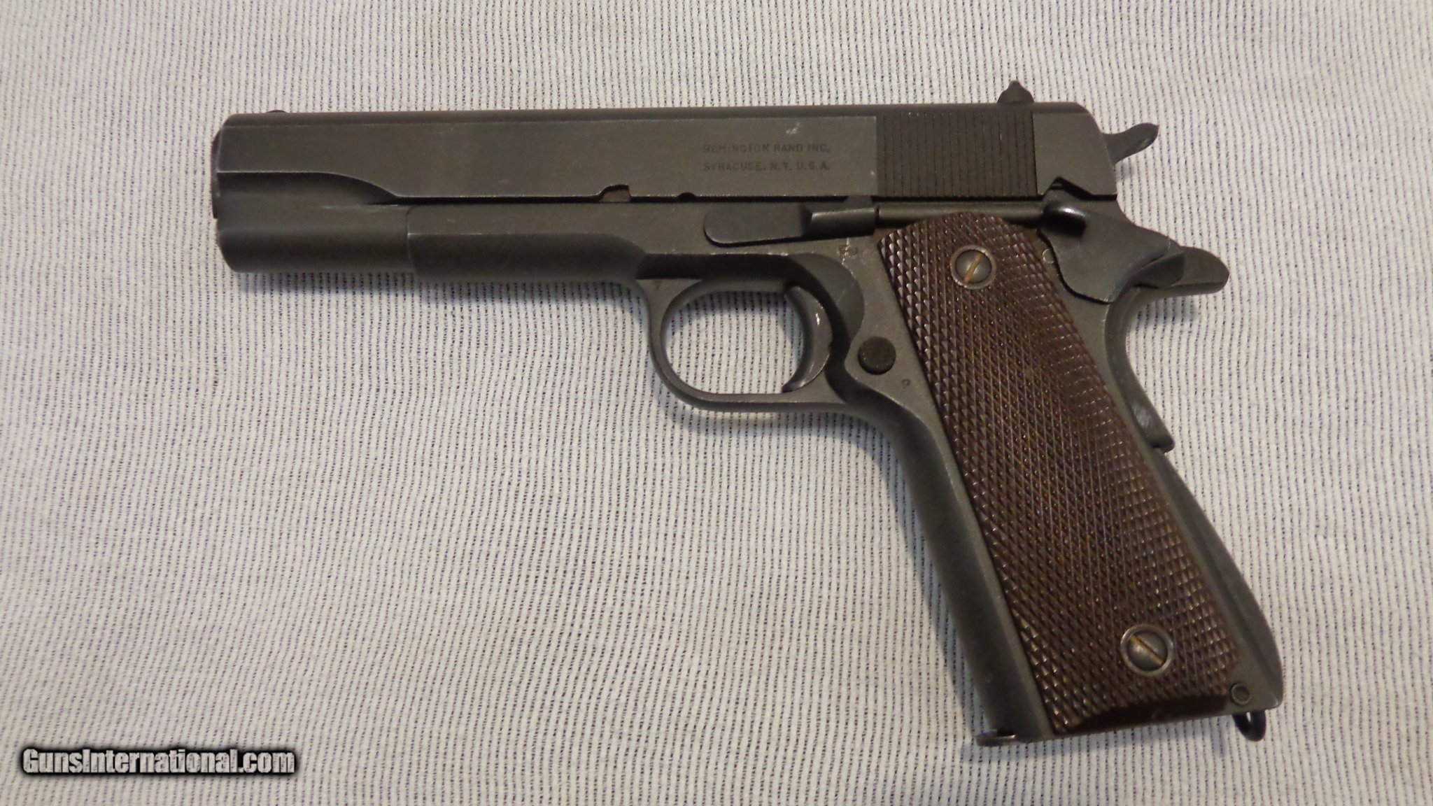 Description: Guns Listing ID: 478322 This pistol is in fair condition overall showing some dings and scratches. One magazine is included. SOLD Manufacturer: REMINGTON RAND Model: 1911 A1 U.S. Army Condition: Used - Non-Certified Barrels: 5 Gauge Info: .45 ACP Finish: matte |