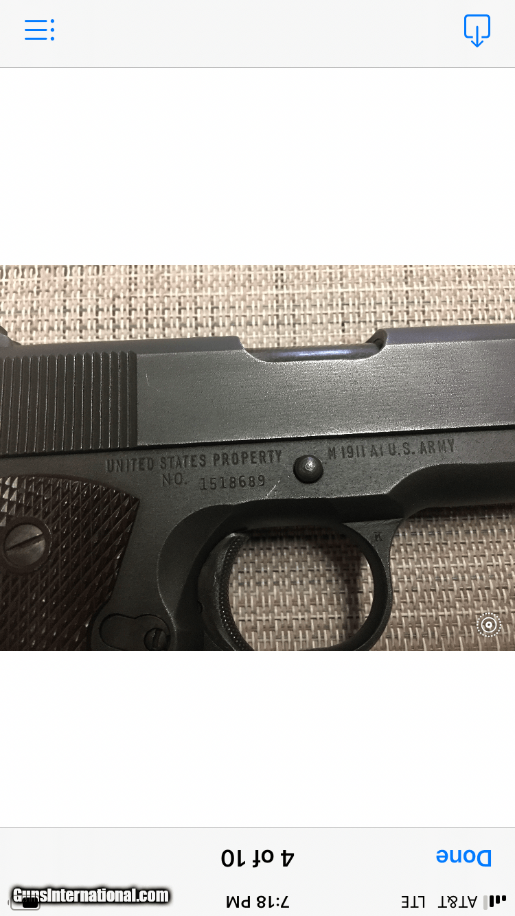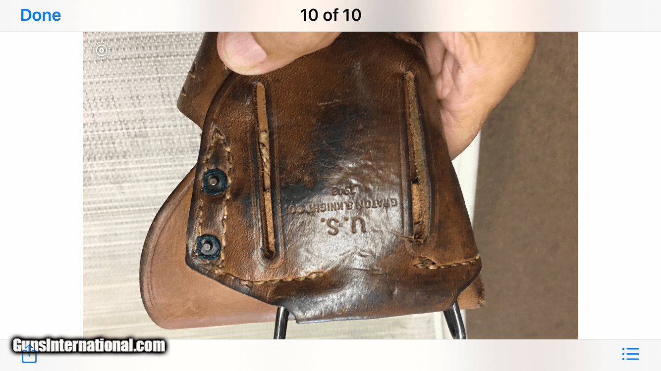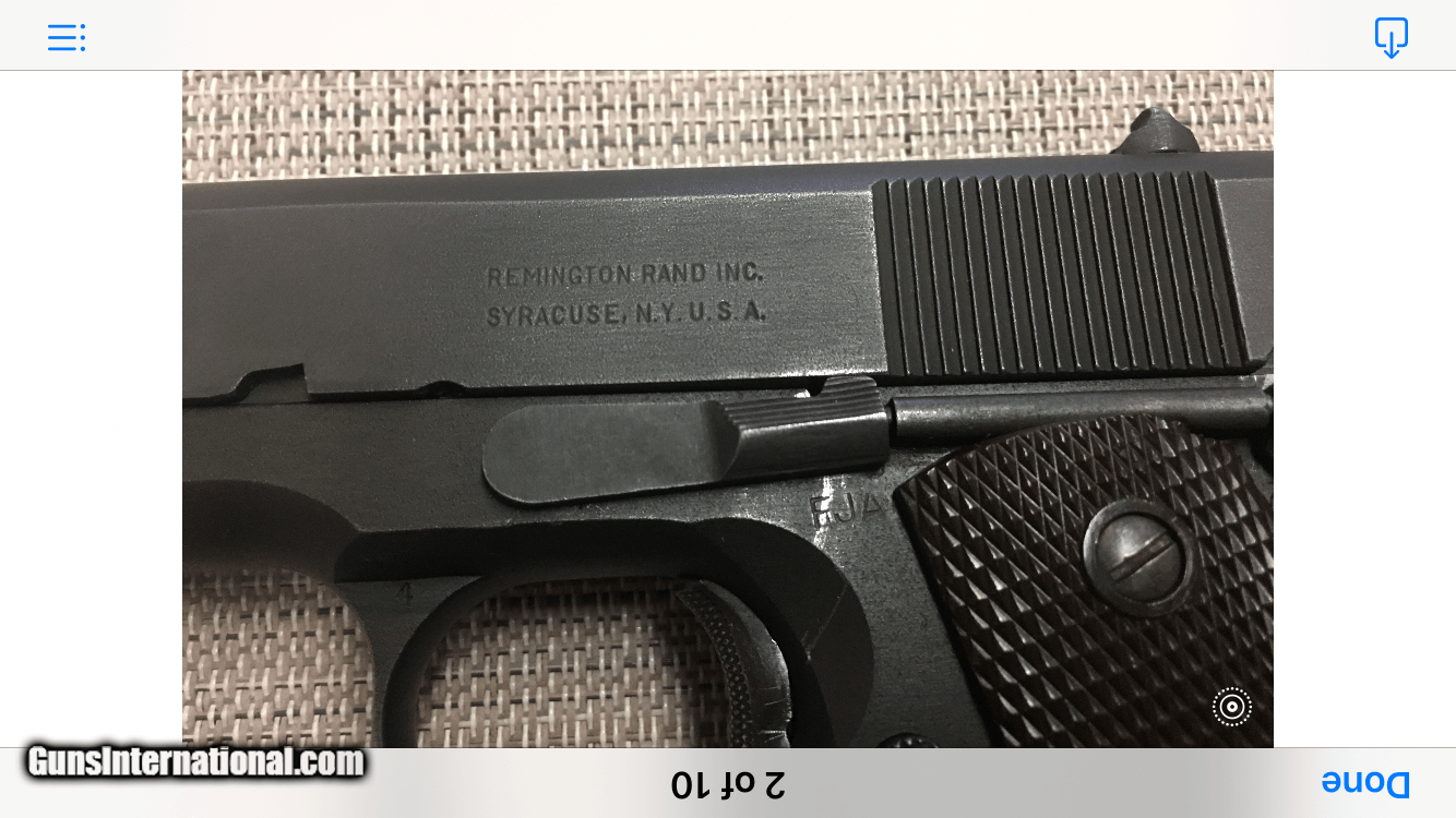 Description: Remington Rand 1911A1 serial number 1518689, carried by a GI attached to the 65th Infantry Division during the campaign in Europe. In 98% condition. SOLD Curio/Relic: Yes Handgun Caliber: .45 ACP (.45 Auto) |