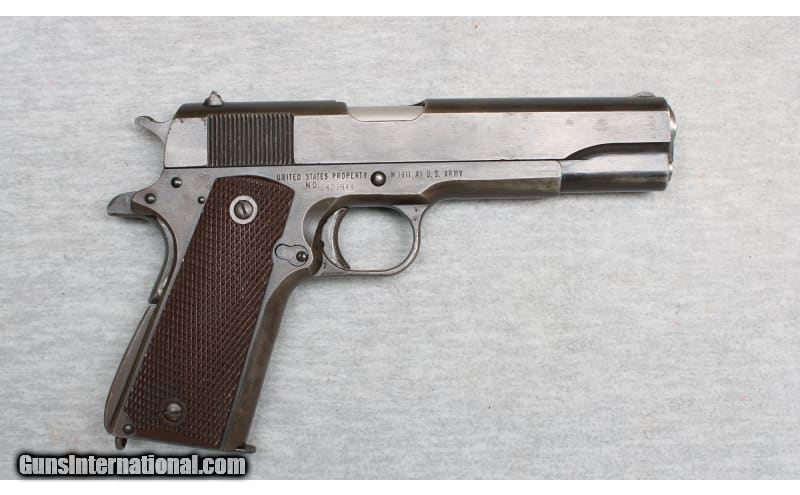 Description: Remington Rand M1911A1 in .45 ACP. The M1911A1 is an improved version of the original M1911 that entered service in 1926. The U.S. military procured around 2.7 million M1911 and M1911A1 pistols during its service life. The pistol served as the standard-issue sidearm for the United States Armed Forces from 1911 to 1985 This pistol is in very good condition with very light finish wear. It comes with one magazine. It was manufactured by Remington Rand in 1942-43. It is marked United States Property, ser # 1421948. .45 ACP SOLD Metal Condition: Very good Bore Condition: Bright Barrels: 5 Inches Triggers: Factory Sights: Fixed sights Item Location: La Vista, NE |