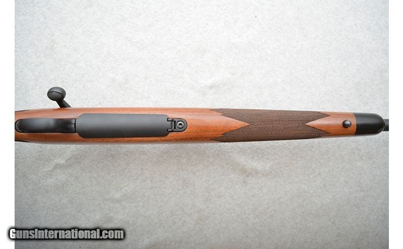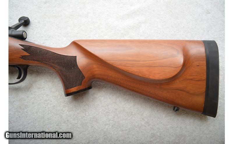Description: Great shape overall with a few spots of cosmetic damage. The metal has a few light surface marks on the barrel. These look like the satin finish on the barrel was damaged and it gained a shine. A few pin pricks of bare metal show through on the bolt handle to round out the issues with the metal. The stock is also in really good shape. There are a few areas on the stock cap where the finish has been damaged and are found on the left side. A few peaks of checkering have been damaged in the wrist area. 7X57mm Mauser SOLD Chambers: Bolt action fed from an internal magazine with a hinged floor plate. Metal Condition: Very good to excellent. Wood Condition: Very good to excellent. Bore Condition: Excellent. Sharp lands and healthy shine. Barrels: 24" Satin blued Krieger barrel. Triggers: Wide blued metal with grooved face. Stock Dimensions: Semi-gloss finished walnut with diamond pattern checkering and 13¼" LOP. Fore End: Semi-gloss finished walnut with wrap around diamond pattern checkering. Butt Pad: Black rubber Pachmayr Decelerator pad. Weight: 7lbs 8oz Sights: No iron sights. Comes equipped with Leupold STD style bases and 1" rings. Chokes: N/A Item Location: Green Bay |