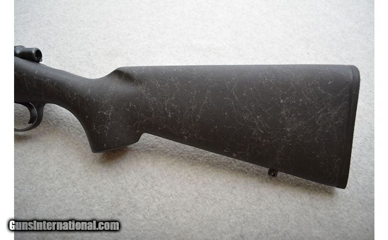 Description: Well used but equally well taken care of. The metal finish is in great shape without any apparent rust. There are a few patches of thinned bluing around the muzzle and bolt handle. The trigger guard and magazine floor plate also have thinned finish, more than likely from being carried. The stock is also in great shape but does a few light marks from field use. Comes with the factory box. .223 Remington SOLD Chambers: Bolt action fed from an internal magazine with a hinged floor plate. Metal Condition: Very good to excellent. Wood Condition: Stock is in excellent condition. Bore Condition: Excellent. Healthy shine and plenty of life left in the rifling. Barrels: 24" Satin blued heavy profile. Triggers: Wide blued metal with grooved surface. Stock Dimensions: Black with "spider web" pattern synthetic and a 13½' LOP. Fore End: Black with "spider web" pattern synthetic. Butt Pad: Black rubber pad. Weight: 9lbs Sights: No iron sights. Comes with a pair of Leupold 1" rings installed. Chokes: N/A Item Location: Green Bay |