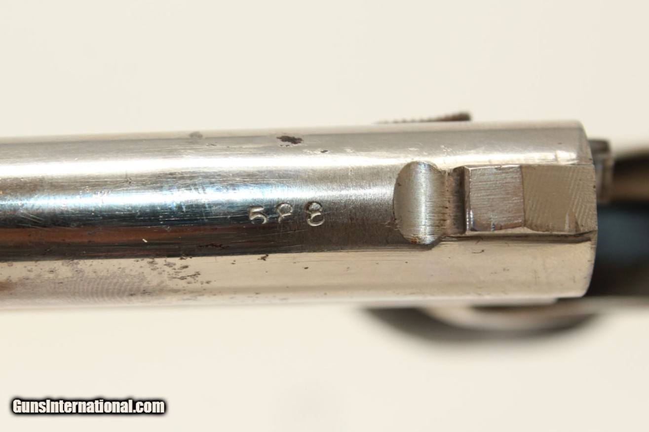 Description: .41 RIMFIRE Double Barrel REMINGTON Deringer ROARING 20s Era Pocket Pistol! Here we present a Remington Double Deringer Type III, made circa 1912-1935 in .41 Rimfire. The double deringer was made by Remington from 1866 to 1935—a testament to the design as well as the commercial market for such a trusty and concealable firearm. The Deringer was sturdily built and simple in operation. A lever on the right side of the frame swings so that the barrels may open upward on a hinge for loading and unloading. There is a single firing pin that moves from one barrel to another with each cock. The Remington Deringer has been made famous, especially in the old Western films, but use of these guns really was widespread. Lawmen and gangsters alike would carry them as backups or something to stick in a pocket. Civilians loved them, as well as those in the military. In fact, the NRA Museum has a specimen in their collection which was carried as a backup by a pilot during the Korean War in the 1950s. This one is initialed with punch-dotted “R” on the left side and “J” on the right side of the recoil shield. The overall condition is fine. 98% of the original nickel finish remains. The markings are clear. The grips are in great shape. The bores are clean with sharp rifling. The action is excellent, strong and crisp. A really neat piece of American history! This firearm is classified as a Curio & Relic. Barrel is 3 inches. Caliber: .41 Rimfire Overall condition as seen in photos. Very Fast. Very Safe. FREE SHIPPING. Will need to be sent to your local FFL or C&R licensee. This firearm is classified as a Curio & Relic. Guaranteed AUTHENTIC & Includes CERTIFICATE OF AUTHENTICITY. ancestryguns $1000 #190167 SOLD Curio/Relic: Yes |
