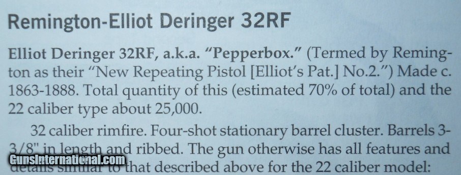 * Antique 1863 REMINGTON ELLIOT DERRINGER 4 SHOT .32 RF