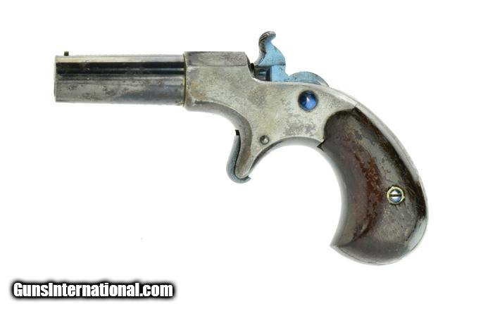 Description: " Remington Elliot Single Shot Derringer. Also known as a “Mississippi” Derringer. Excellent condition. 70% of the original blue. Grips are very good with most of the varnish. SOLD Antique: Yes |
