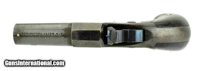 Remington Elliott Single Shot Derringer. .41 Caliber. 60% of the original blue. Grips are very good and have around 50% of the varnish. There are letters stamped on the left hand side of the grips. It appears to read “S.A.S. 172” Hammer has all of the fire blue.