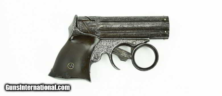 Description: Remington Zig Zag Derringer .22 Short caliber derringer. Dark gray patina with some pitting. Markings partially visible. Grips are good over all with small chips to the right hand side bottom. Action works. Very interesting design seldom encountered. SOLD Antique: Yes |