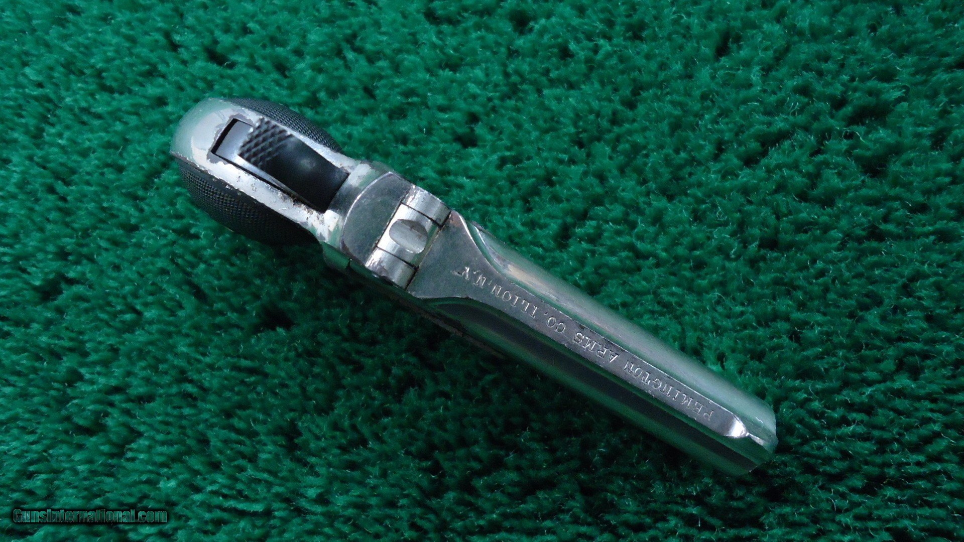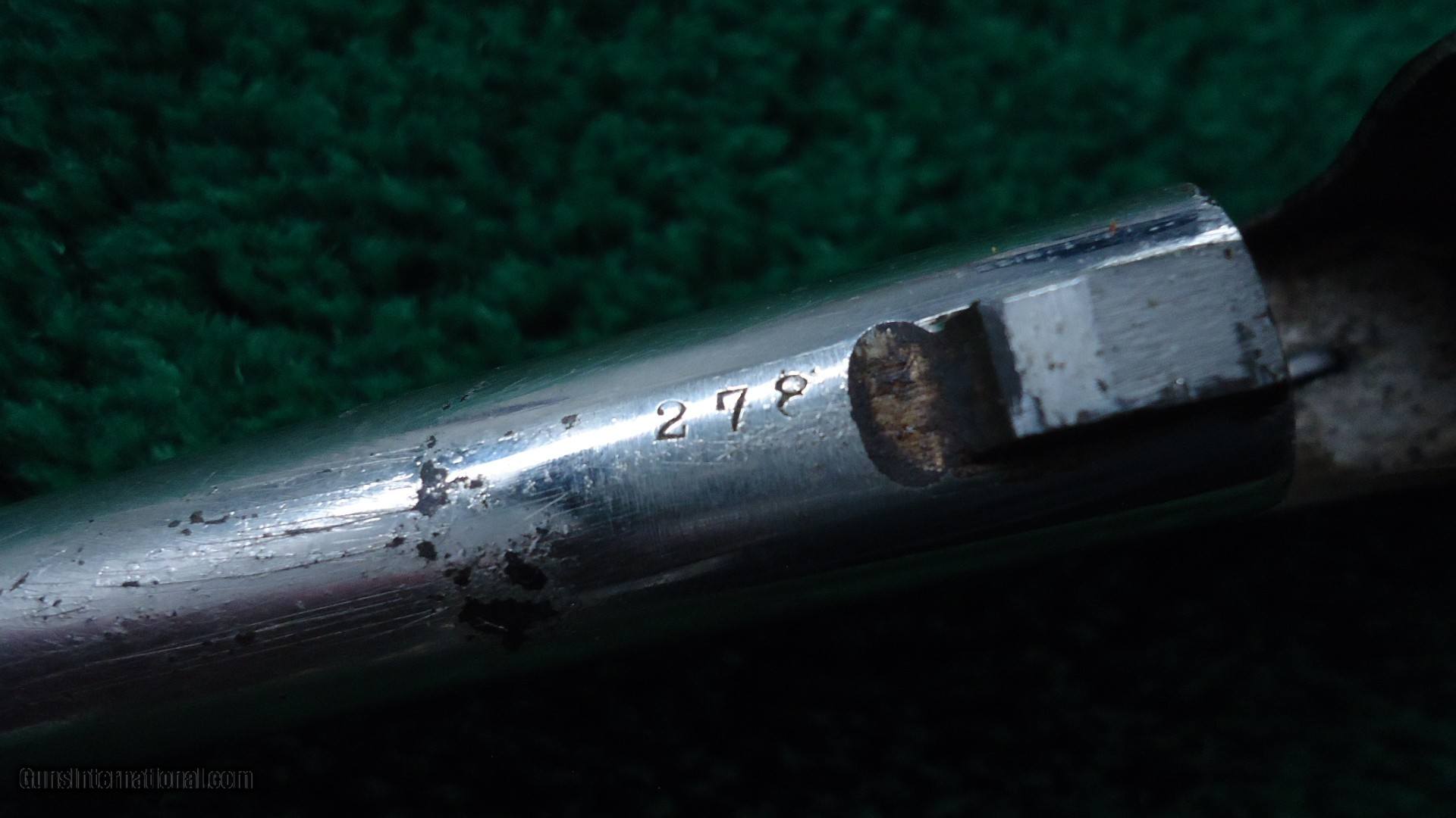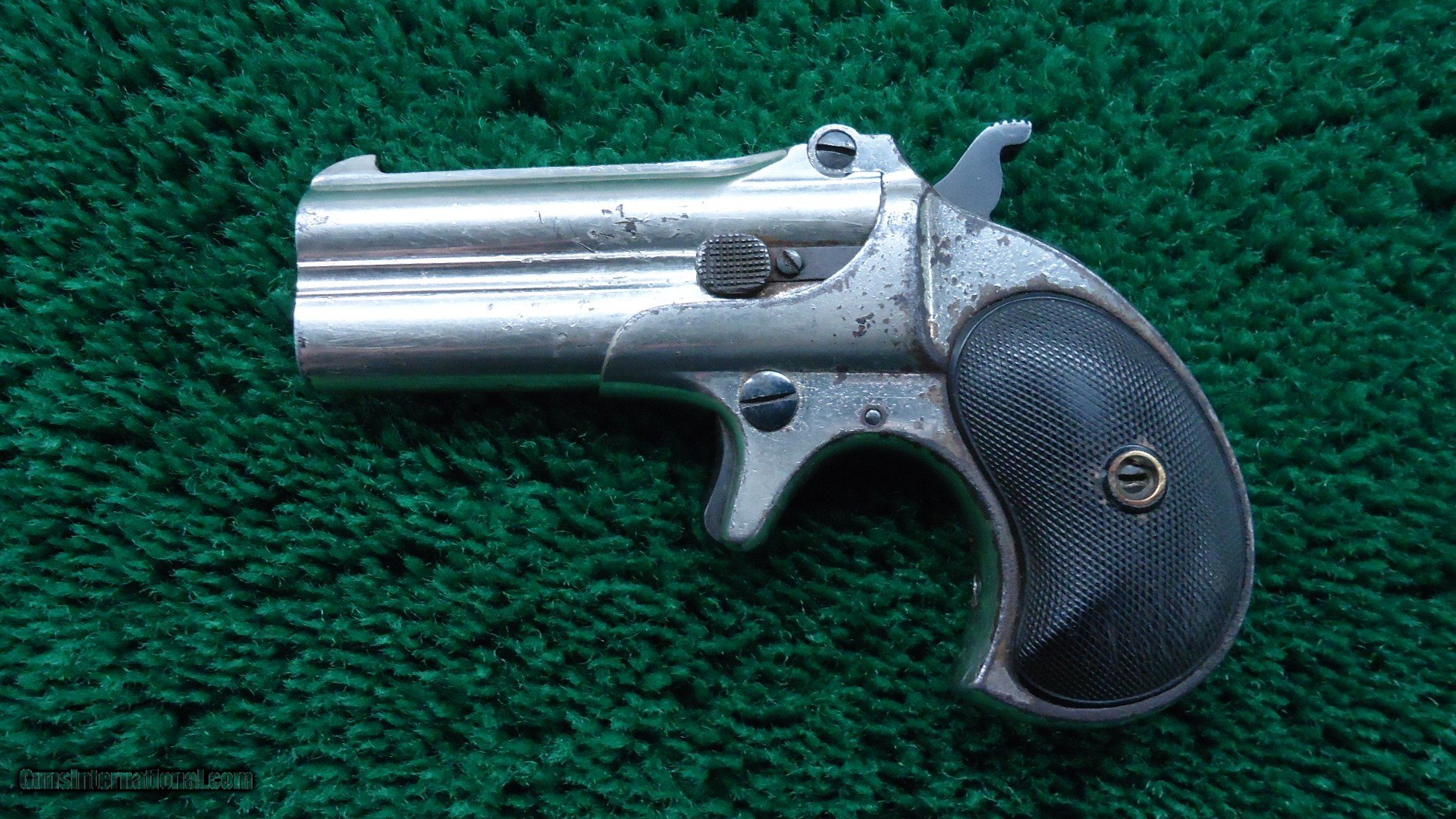 Description: 3 inch barrels with good bores that show some light pits. The metal surfaces retain most of the nickel finish with some light flaking and a couple spots of oxidation. Sharp "REMINGTON ARMS CO. ILION,N.Y". barrel address and indicate production 1889-1893. Black checkered hard rubber grips are in good condition. The hinge is strong and intact with good barrel lock up and the action seems to function fine. Not a bad example of an O/U Derringer. Leroy Merz Antique Firearms specializes in antique and vintage Winchesters and other fine American firearms. Since 1965 Mr. Merz has taken part in the world of firearms and has been a contributor to many well known reference books. We have hundreds of additional guns in every price range at our home online. Search for Merz Antiques in google. SOLD Antique: Yes Handgun Caliber: .41 Rimfire |