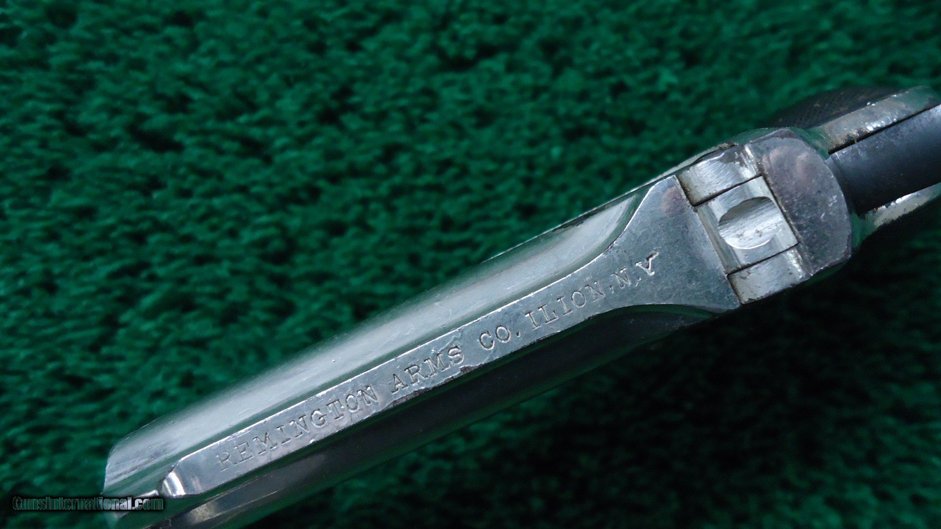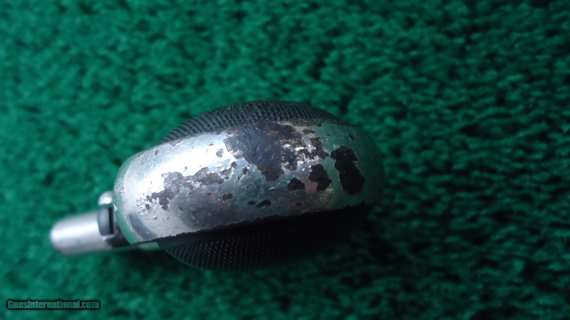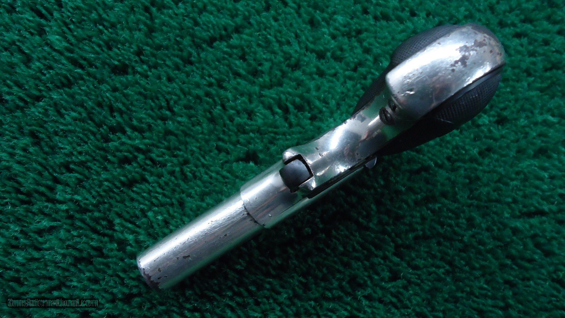 Description: 3 inch barrels with good bores that show some light pits. The metal surfaces retain most of the nickel finish with some light flaking and a couple spots of oxidation. Sharp "REMINGTON ARMS CO. ILION,N.Y". barrel address and indicate production 1889-1893. Black checkered hard rubber grips are in good condition. The hinge is strong and intact with good barrel lock up and the action seems to function fine. Not a bad example of an O/U Derringer. Leroy Merz Antique Firearms specializes in antique and vintage Winchesters and other fine American firearms. Since 1965 Mr. Merz has taken part in the world of firearms and has been a contributor to many well known reference books. We have hundreds of additional guns in every price range at our home online. Search for Merz Antiques in google. SOLD Antique: Yes Handgun Caliber: .41 Rimfire |