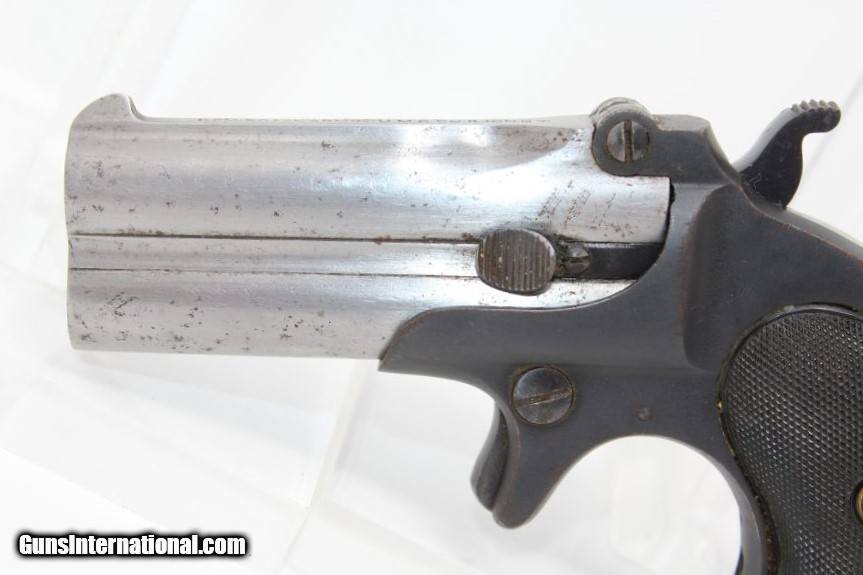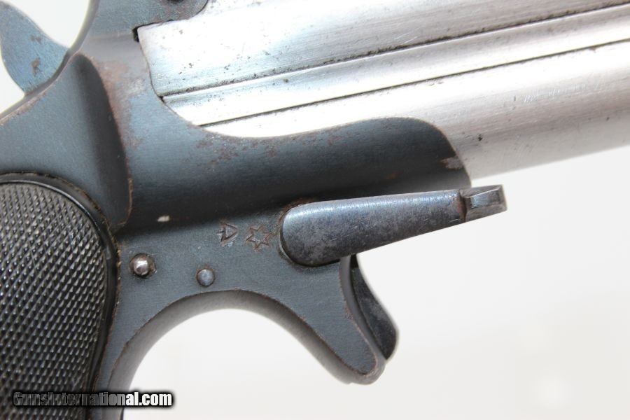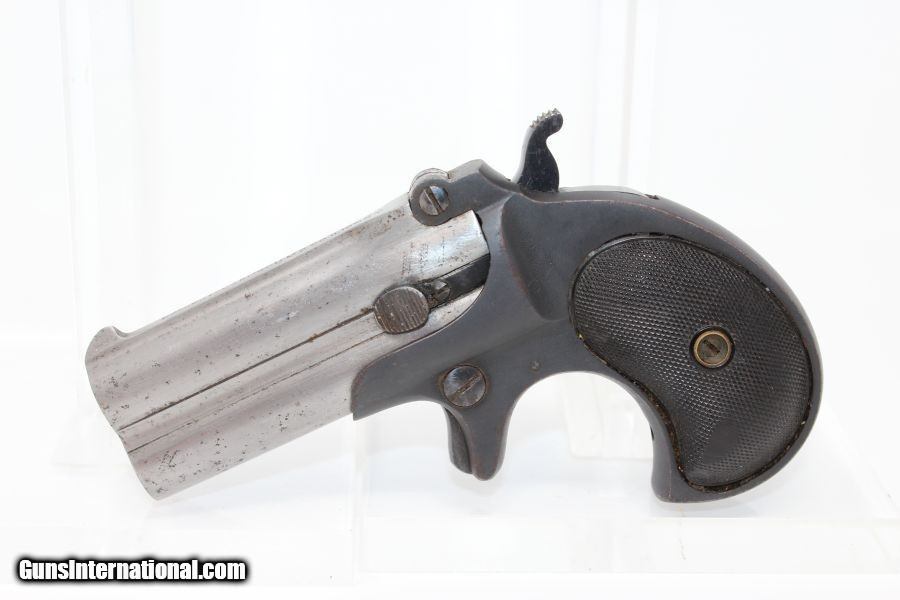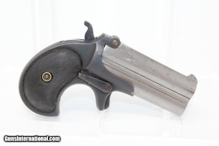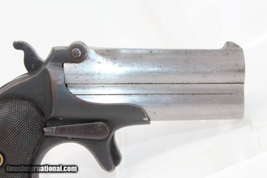 Description: ICONIC Early 20th Century Remington O/U Deringer Long-Lived American Self-Defense Pistol Here we present a Remington Double Deringer Type III, made circa the early 20th century in .41 caliber. The double deringer was made by Remington from 1866 to 1935—a testament to the design as well as the commercial market for such a trusty and concealable firearm. The Deringer was sturdily built and simple in operation. A lever on the right side of the frame swings so that the barrels may open upward on a hinge for loading and unloading. There is a single firing pin that moves from one barrel to another with each cock. The Remington Deringer has been made famous, especially in the old Western films, but use of these guns really was widespread. Lawmen and gangsters alike would carry them as backups or something to stick in a pocket. Civilians loved them, as well as those in the military. In fact, the NRA Museum has a specimen in their collection which was carried as a backup by a pilot during the Korean War in the 1950s. The overall condition is good. The barrels are bright and the frame has a matte blue finish that is 90%. Markings are clear. Grips are in good shape. Bores are clean with sharp rifling. The action is excellent, strong and crisp. This firearm is classified as a Curio & Relic. Barrel is 3 inches. Caliber: .41 Rimfire Overall condition as seen in photos. Very Fast. Very Safe. FREE SHIPPING. Will need to be sent to your local FFL or C&R licensee. This firearm is classified as a Curio & Relic. Guaranteed AUTHENTIC & Includes CERTIFICATE OF AUTHENTICITY. ancestryguns $465 #8538 SOLD Curio/Relic: Yes |