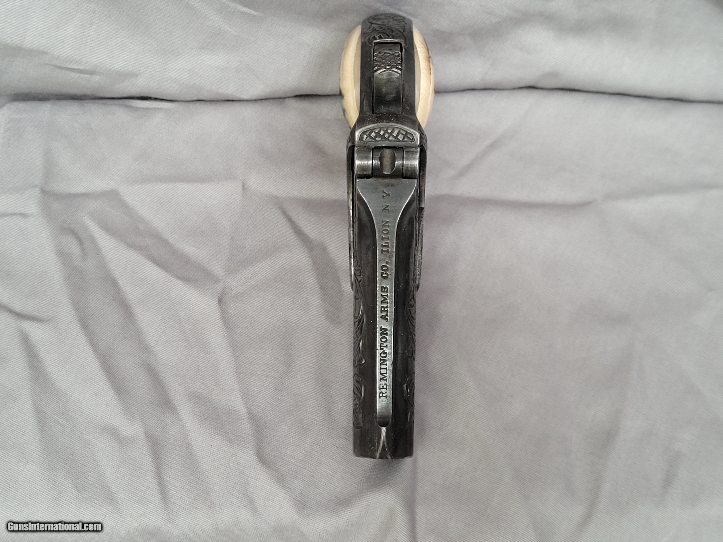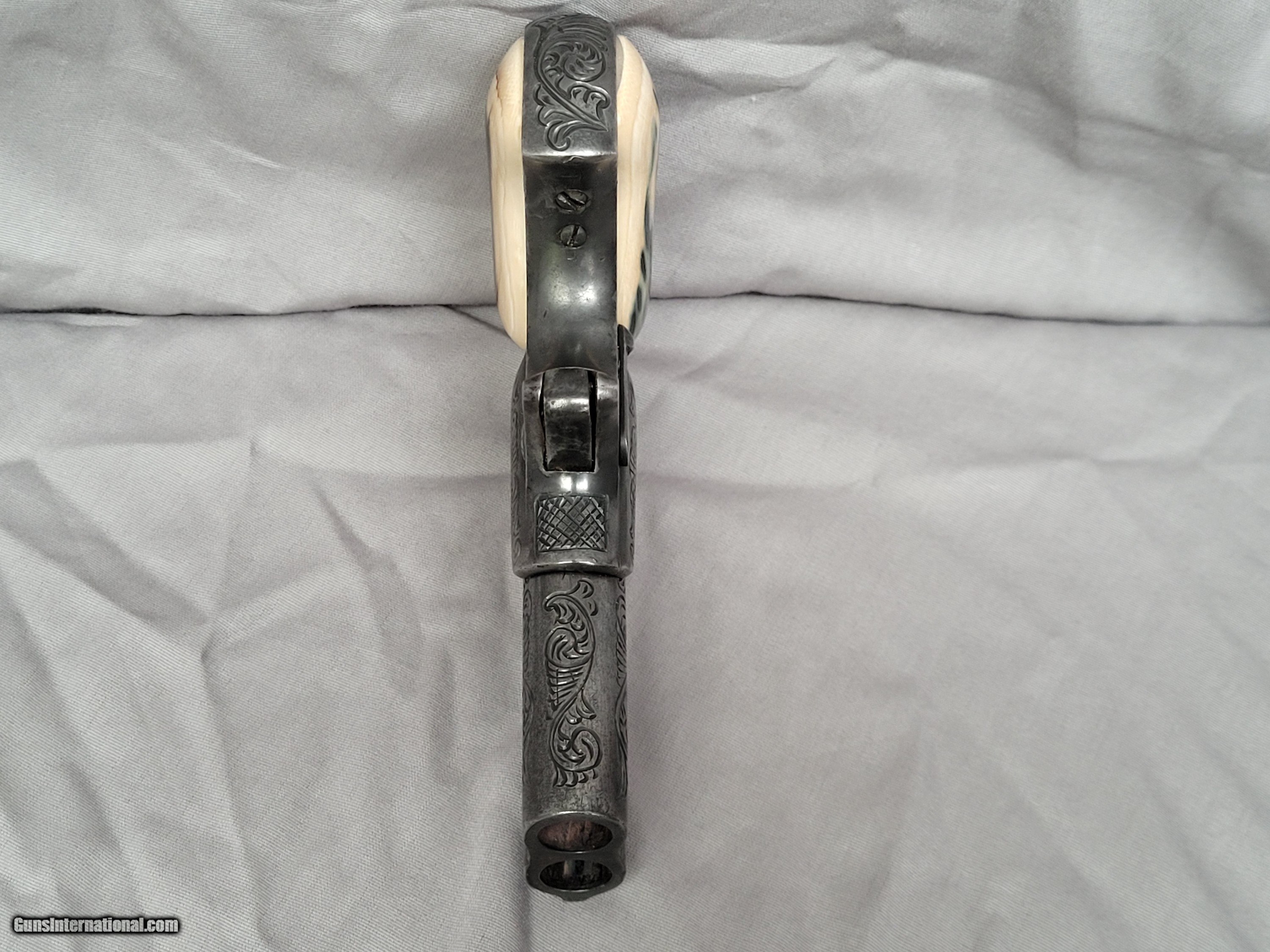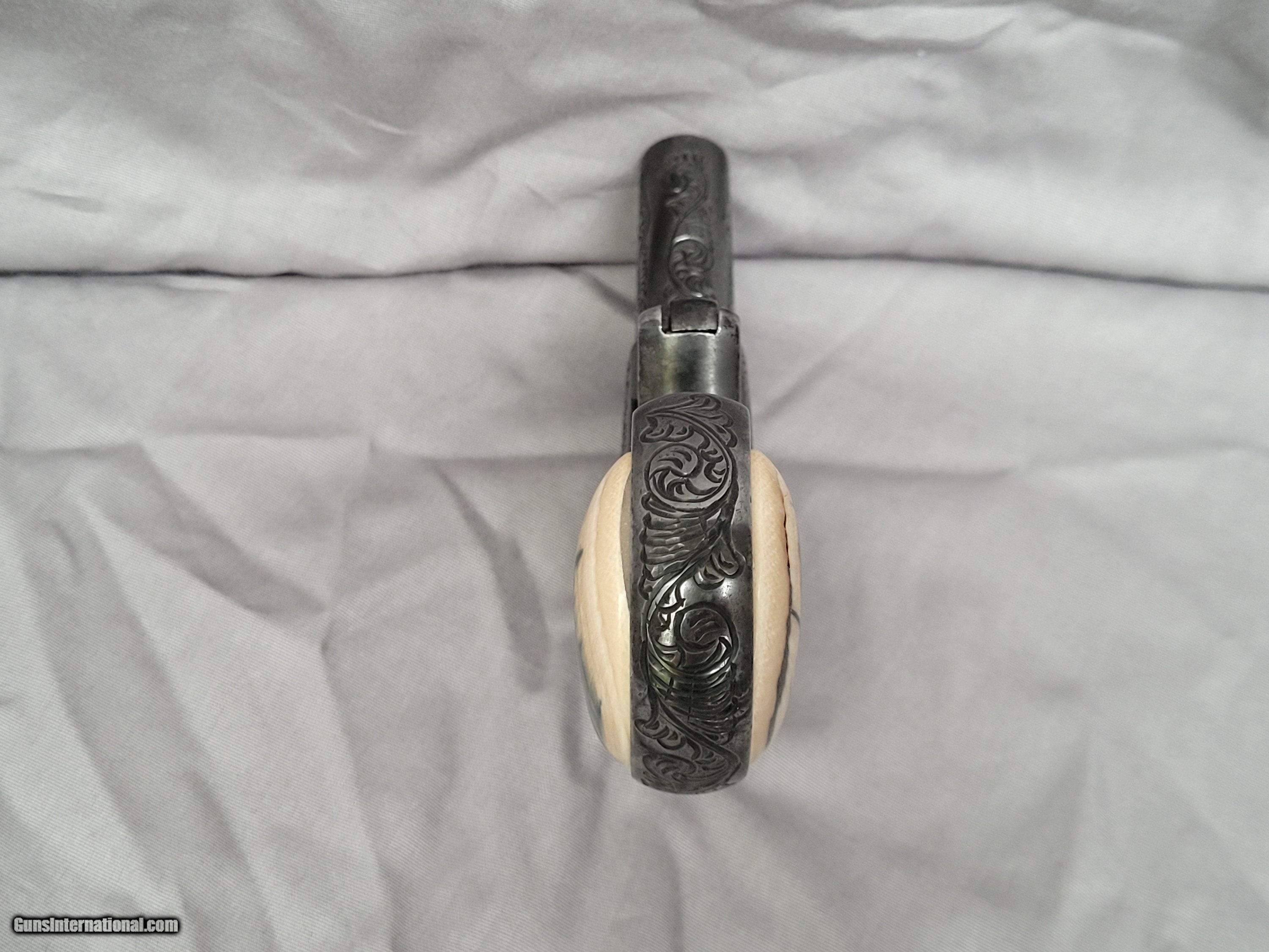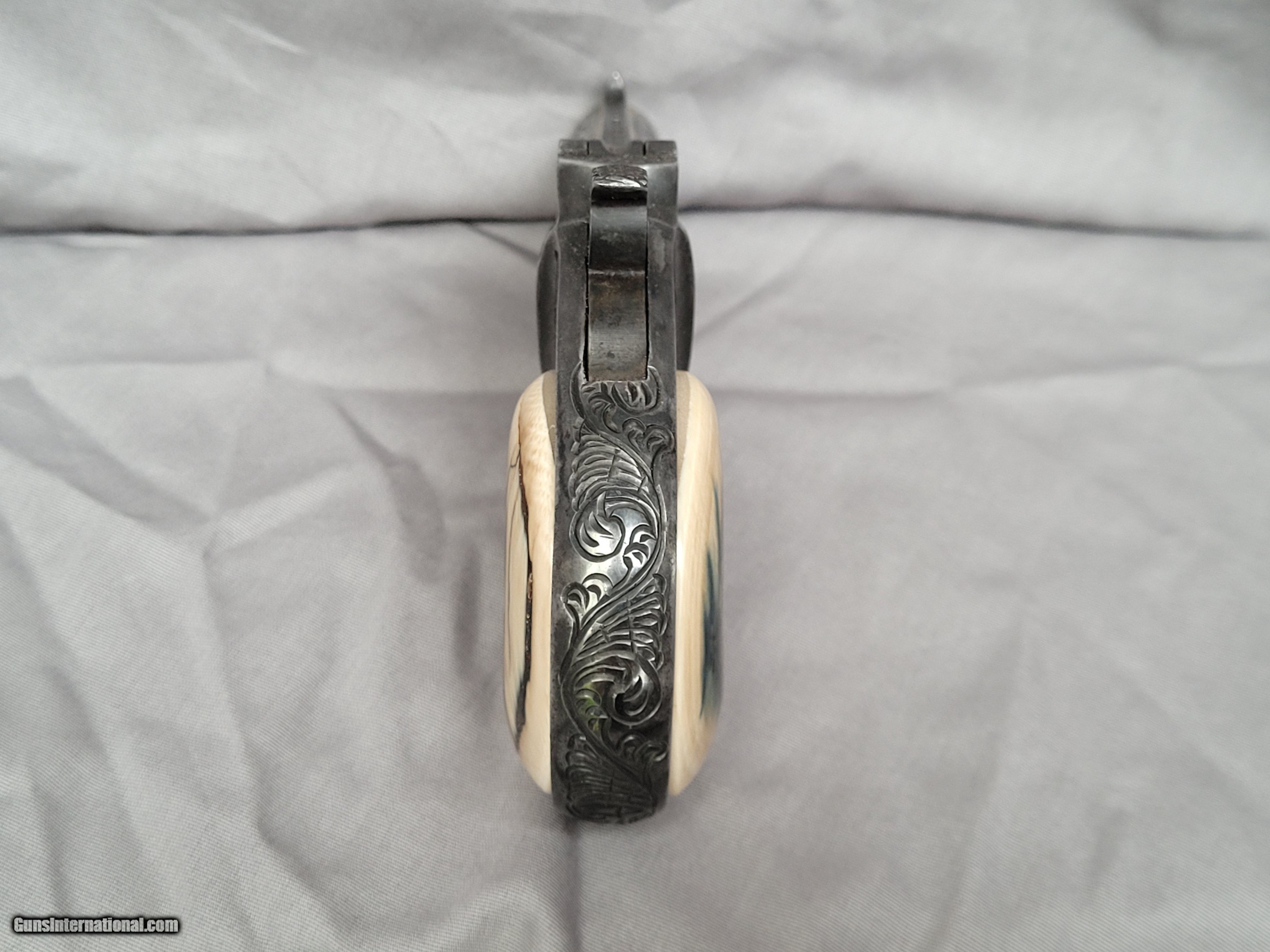 Description: THIS ITEM HAS SOLD! This listing is for a beautifully engraved Remington Model 95 in .41 rim fire. The grips are Highfiguregrips Mammoth Ivory. The Ivory has the nice blue character staining which comes from being in contact with vivianite. The colors and minerals leach into the Ivory after 1000s of years in the perma frost. Every part on this pistol is in excellent working order. The barrel locks into the frame nice and tight with absolutely no slop. Contact me by phone or email. If paying by card, add 3% Firearms will ship after checks clear. I ship USPS Priority, 2-4 days. I also ship quickly, nobody likes to wait. Handguns ship for 35.00 Add 1.75 per 100.00 for insurance, recommended. Long guns ship for 50.00 on up. All mailed payments must be recieved within 5 days of the date of purchase or item will be relisted for sale. I look forward to serving you. SOLD Curio/Relic: Yes Antique: Yes Handgun Caliber: .41 Rimfire Manufacturer: Remington Model: 95 |