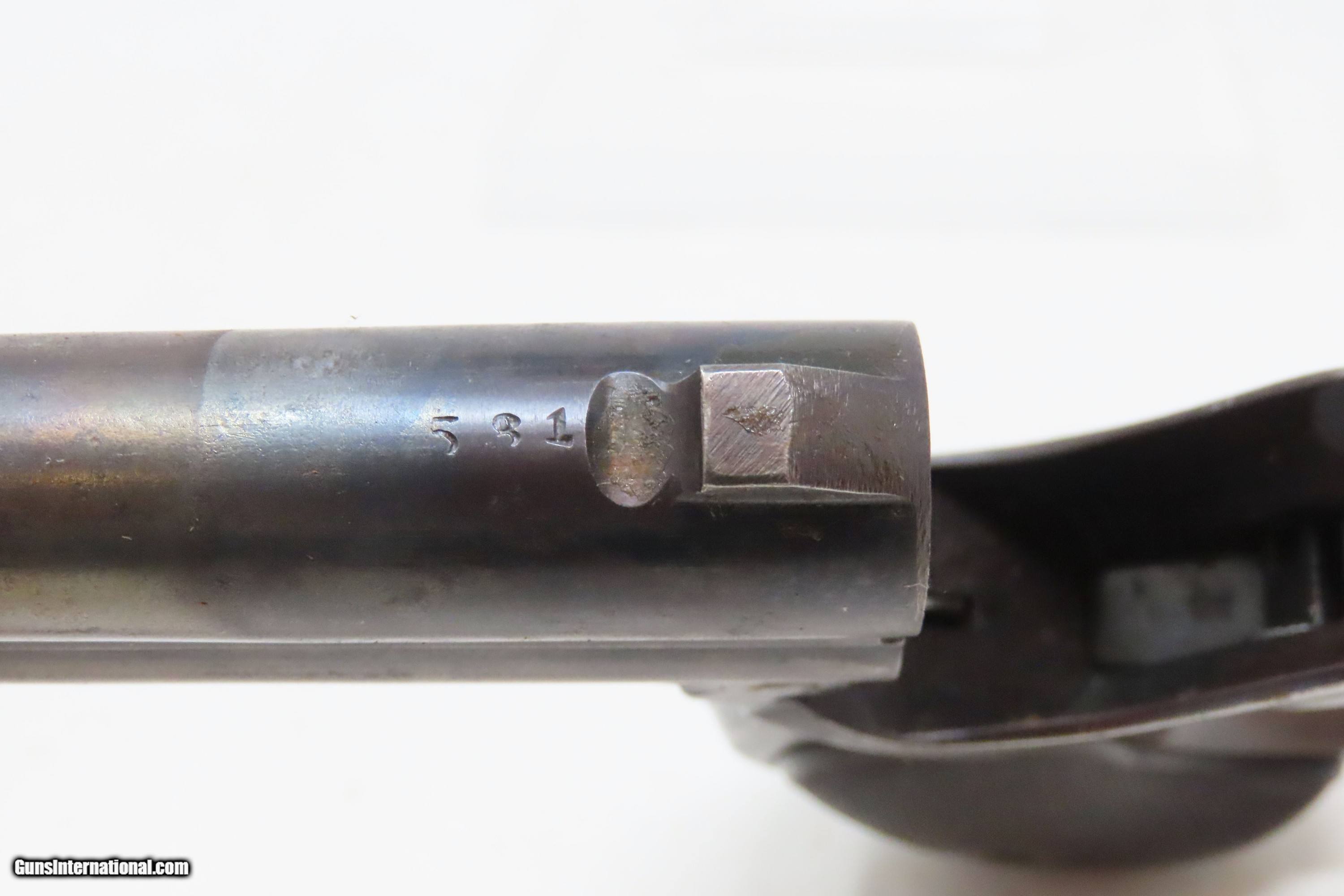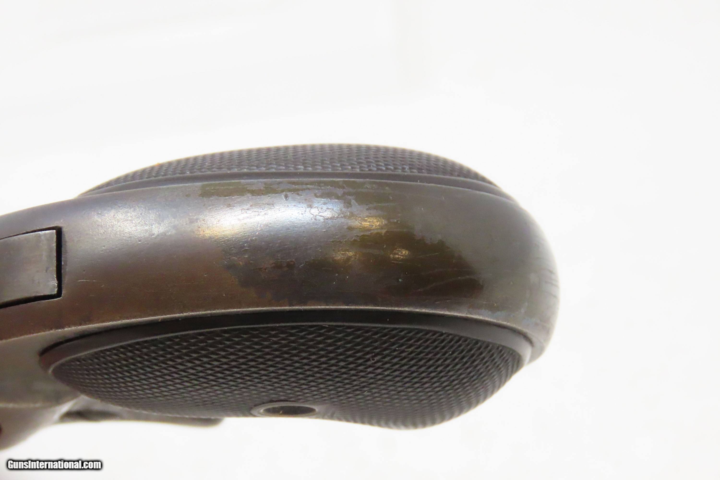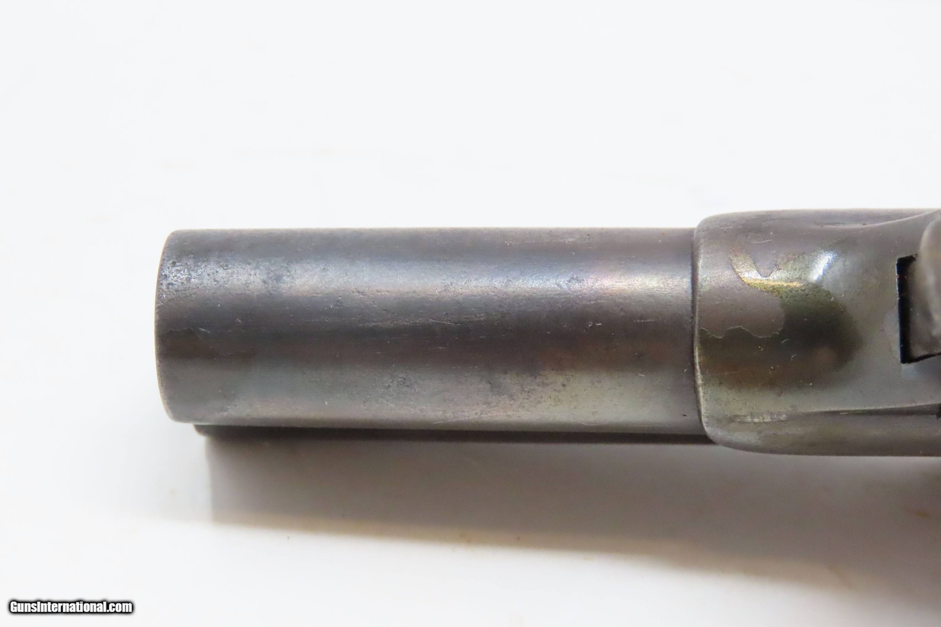 Description: REMINGTON Over/Under DOUBLE DERINGER .41 Rimfire C&R Pistol LEATHER HOLSTER Model 95 .41 Caliber HIDEOUT/SELF DEFENSE Pistol Here we present a C&R Remington Model 95 Double Deringer Type II with a production run from 1888 to 1911. The Double Deringer was made by Remington from 1865-1935, which is a testament to the design as well as Americans’ desire to carry a concealed weapon. The Deringer was sturdily built and simple in operation. A lever on the right side of the frame swings so that the barrels may open upward on a hinge for loading and unloading. There is a single firing pin that moves from one barrel to another with each cock. The Remington Deringer has been made famous, especially in the old Western films, but use of these guns really was widespread. Lawmen and gangsters alike would carry them as backups or something to stick in a pocket. Civilians loved them, as well as those in the military. In fact, the NRA Museum has a specimen in their collection which was carried as a backup by a pilot during the Korean War in the 1950s. The overall condition is good. Original dark patina throughout. Strong action. The bores are in good shape for their ages. Markings are legible. Both grips show wear from use, but remain seated firmly and in good shape. The tooled holster is in good shape. This firearm is classified as a Curio & Relic. Barrel is 3 inches. Caliber: .41 Rimfire Overall condition as seen in photos. Very Fast. Very Safe. FREE SHIPPING. Will need to be sent to your local FFL or C&R licensee. This firearm is classified as a Curio & Relic. Guaranteed AUTHENTIC & Includes CERTIFICATE OF AUTHENTICITY. ancestryguns $1200 #233255 SOLD Curio/Relic: Yes |