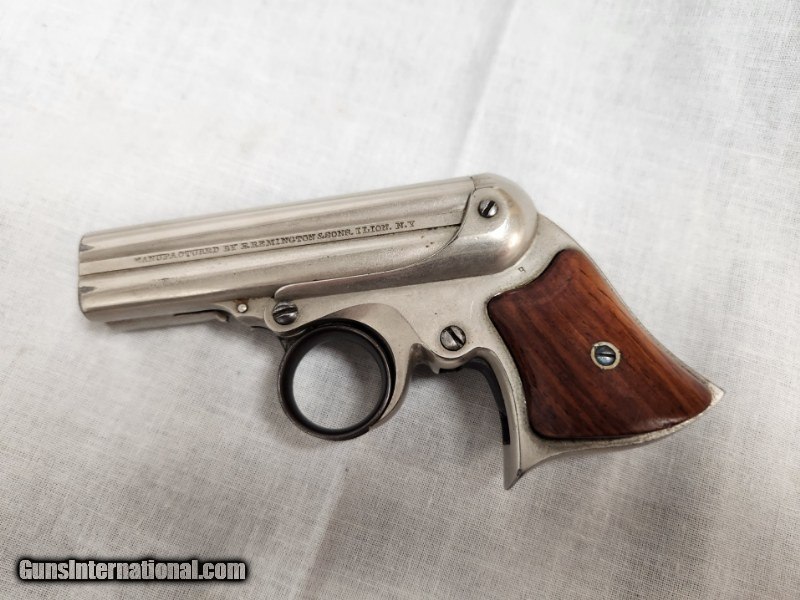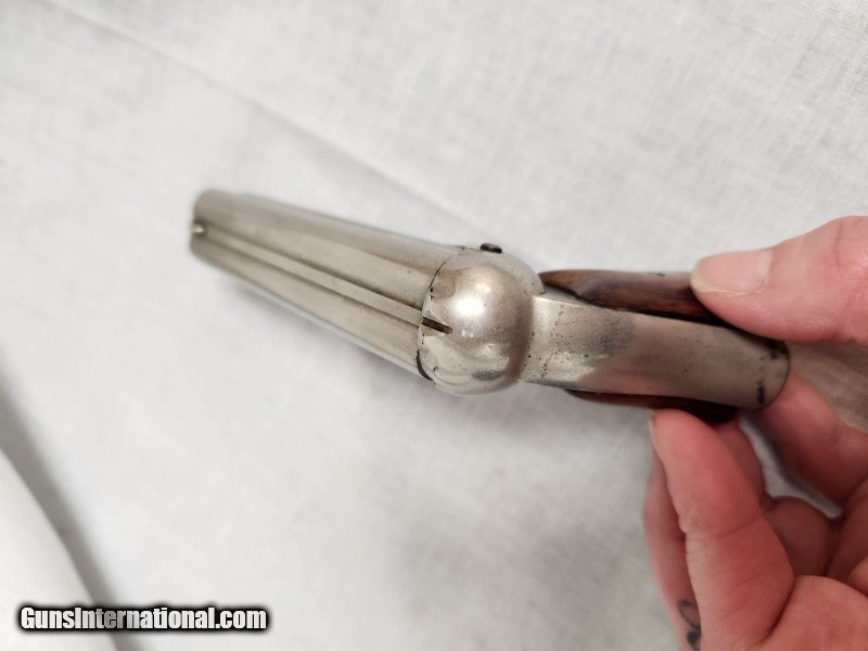 Description: Guns Listing ID: 482554 Remington & Sons Elliott’s Patent 4-Barrel Derringer - .32 Rimfire This is an exceptional example of the Remington & Sons Elliott’s Patent 4-Barrel Derringer, chambered in .32 Rimfire. Manufactured in the late 19th century (circa 1863–1888), this ingenious and collectible firearm showcases Remington’s pioneering spirit in compact defensive handguns. Key Features & Highlights: .32 Rimfire Caliber: Offers more stopping power than its .22 counterpart, making it highly desirable among collectors. Four-Barrel Design: The innovative barrel cluster delivers four shots in quick succession, paired with a rotating firing pin for reliable performance. Unique Ring Trigger Mechanism: This double-action ring trigger eliminates the need for a traditional trigger, setting it apart as a true engineering marvel of its time. Serial Number 23294: Matching serial numbers confirm its authenticity and place it as part of an early production batch. Classic Construction: The sturdy frame retains its historical charm, and the patina reflects its long and storied past. Condition: This derringer exhibits a well-preserved patina, indicative of its age and historical significance. The nickel plating has aged gracefully, with minor wear consistent with its age. The mechanics are functional, and the ring trigger operates smoothly. The grips are original, showing slight wear but no cracks, maintaining their structural integrity. Why It’s Special: A rare and collectible caliber in the iconic Elliott’s Patent design. Represents an evolutionary step in firearm history, bridging the gap between single-shot derringers and revolvers. Highly sought after by antique firearm enthusiasts for its unique aesthetics and historical significance. Perfect for Collectors: This derringer is more than a firearm; it’s a piece of American ingenuity from Remington, a brand synonymous with quality and innovation. Whether you’re a seasoned collector or a history enthusiast, this is a standout addition to any collection. SOLD Antique: Yes Manufacturer: REMINGTON Model: Remington & Son‚‚s Elliot‚‚s Patent Ring Trigger 4-Barrel Derring Condition: Used - Non-Certified Barrels: 3.25 Gauge Info: .32 RIMFIRE Finish: nickel |