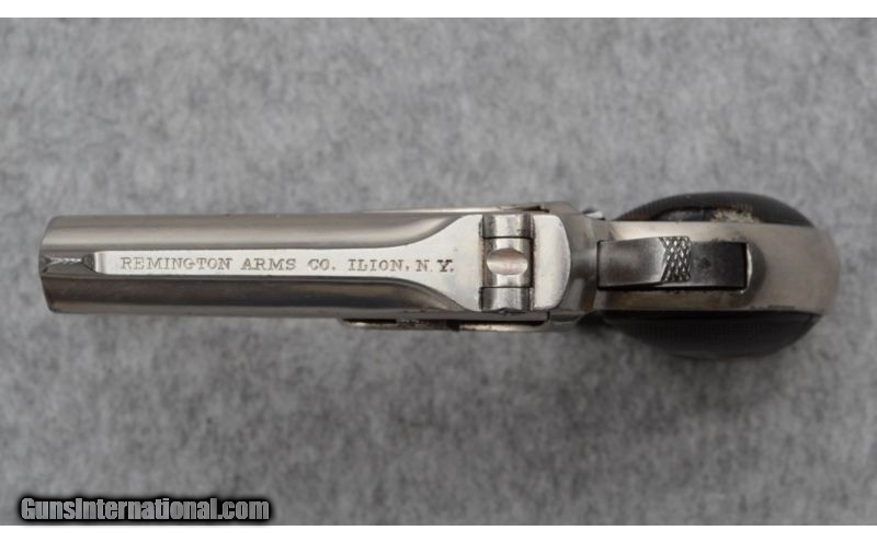 Description: Remintgon Elliot's O/U Derringer Nickel .41 Rimfire. This Remintong Elliot’s Patent over under derringer is a Type II Sixth Variation, top of barrel marked "REMINGTON ARMS CO. ILION N Y." and measures 50mm in length. IMPORTANT INFORMATION:For more information or to purchase the firearm, please call the Cabela’s Gun Library office, our Retail Staff is standing by. Leave a message if after hours. Firearms are subject to prior sale.PHONE CALLS VS EMAILS:Customers who call will have a better chance of purchasing the firearm over those who email. Our staff is available to take phone calls during regular store hours, where replies to emails may take 24-48 hours (excluding weekends & certain holidays).SALES TAX:Cabela's Gun Library Online is a part of Cabela's Retail, Inc. Any purchase from the Gun Library Online will be subject to sales tax if shipment is made to a state in which Cabela's Retail, Inc has an active physical presence. Sales taxes will be charged based on the state and local sales-tax rates where the gun is delivered. If there is not a Cabela’s retail store in your state we will not charge sales tax.TYPO ERRORS:Although we strive for accuracy, we are not responsible for editorial or typographical errors. SOLD Antique: Yes Manufacturer: Unknown ~ Serial number on frame under grips: 457. It is also stamped under the bottom barrel with the 4 stamped upside down. Caliber Info: .41 Rimfire Chambers: 2 Metal Condition: The nickel shows loss at the muzzles and on the left side of the frame, it is also chipping along the edges of grips, and there are scratches throughout. But all in all, the nickel finish is in fairly good condition for this model. Wood Condition: Grips: The left grip panel has old glue repairs from what looks to have been 3 broken pieces put back together, and the right grip panel is missing a piece, but has no other cracks. Bore Condition: Typical corrosion and pitting with some rifling remaining. Barrels: 3 Triggers: Factory Stock: Original checkered grip panels. Sights: Factory Item Location: Greenville, SC |