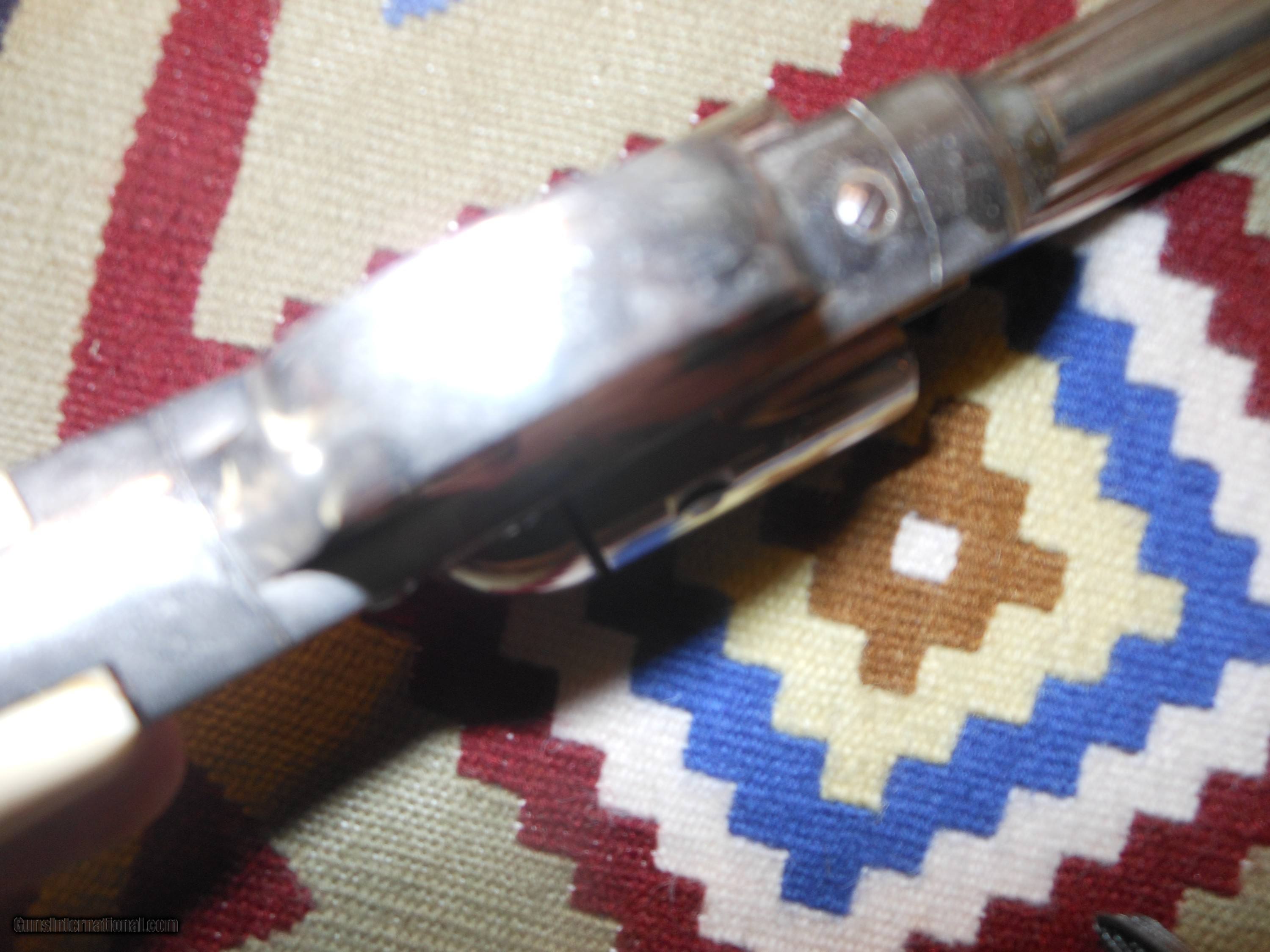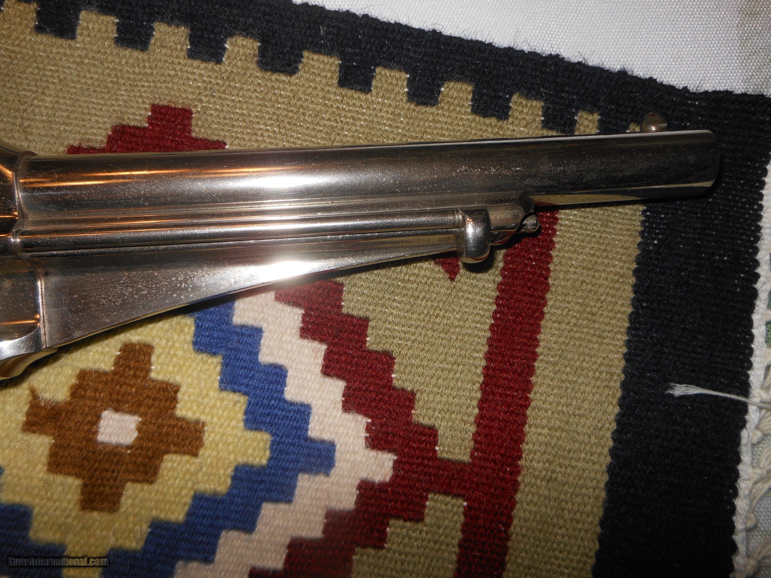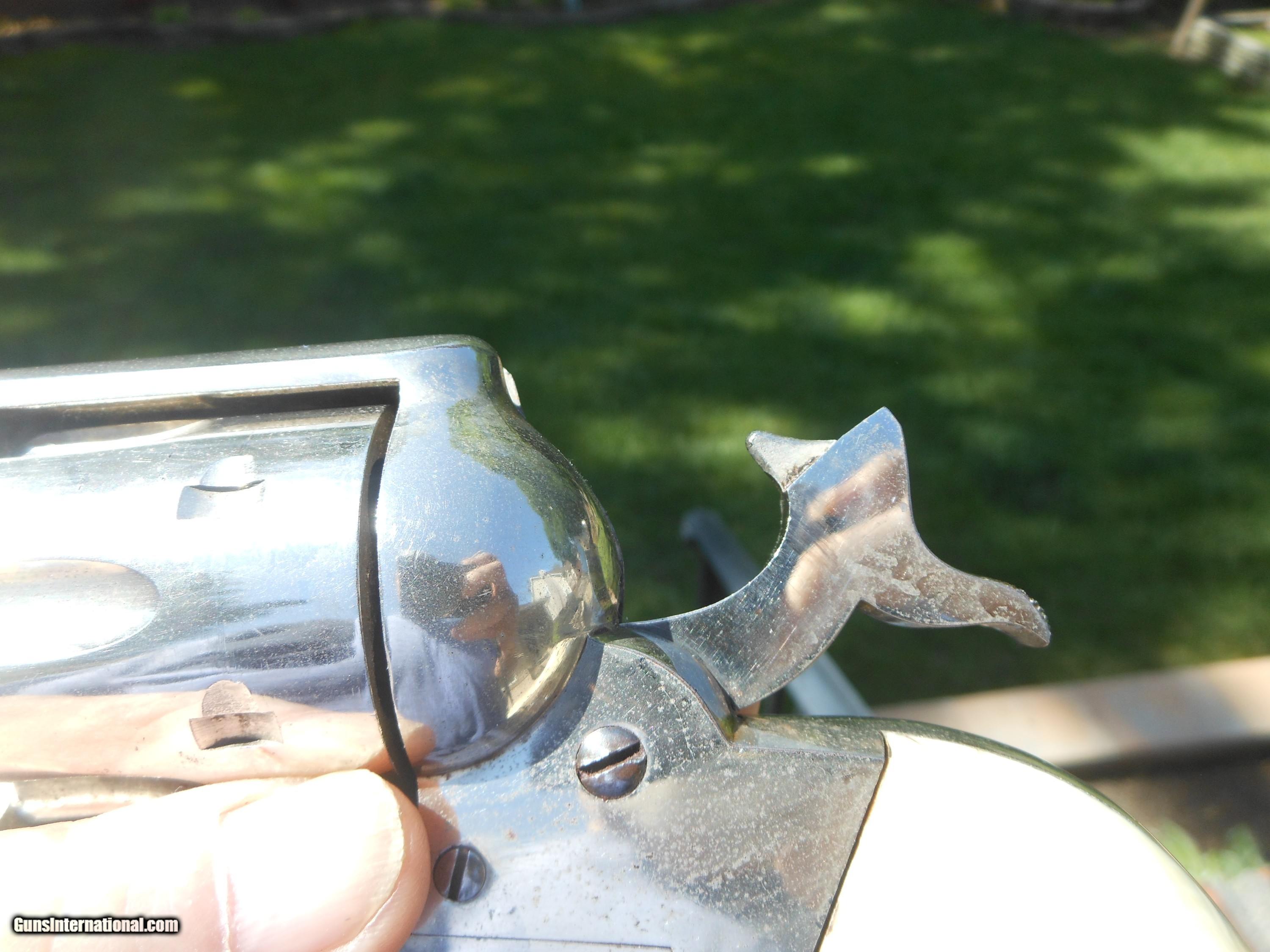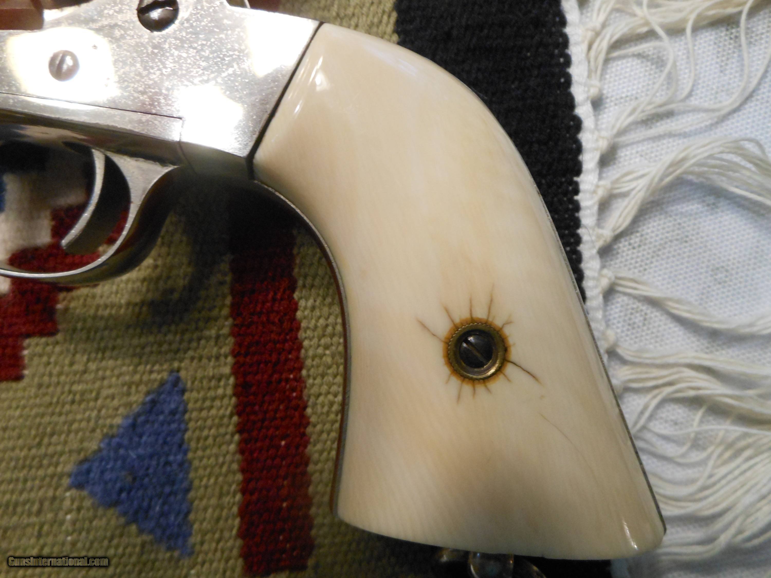 Description: I'm sorry but I don't know a thing about these. I'm selling this for a friends widow. I have never owned anthing like this. I was told it is all original. there is a ding on the back strap like it's been dropped. The grips are antique ivory. Thanks to Frank, I found the serial number ... number 26. It must be a very early gun. Please ask questions. It is chambered in 44 Remington Center Fire. No FFL required. Buyer pays insurance and I'll pay shipping. SOLD Antique: Yes Manufacturer: Remington Model: 1975 Chambers: 44 Remington Center Fire |