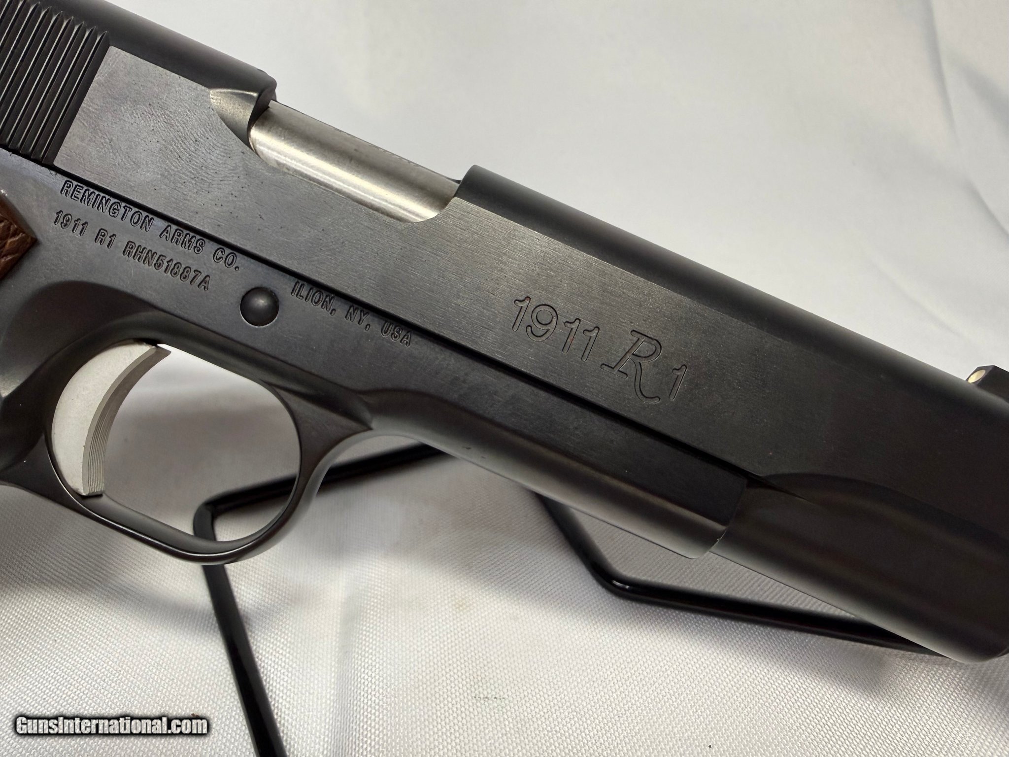 Description: Guns Listing ID: 581018 Comes with case - Wood grips. Has external hammer & thumb safety. Manufacturer: REMINGTON Model: 1911 R1 Caliber Info: .45 ACP Condition: Used - Non-Certified Barrels: 4" BARREL Action: SEMI AUTOMATIC Finish: blued Price: $549.99 Contact Seller |