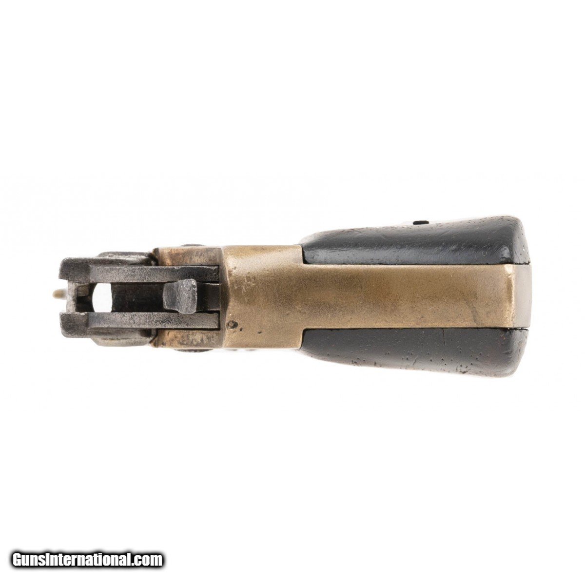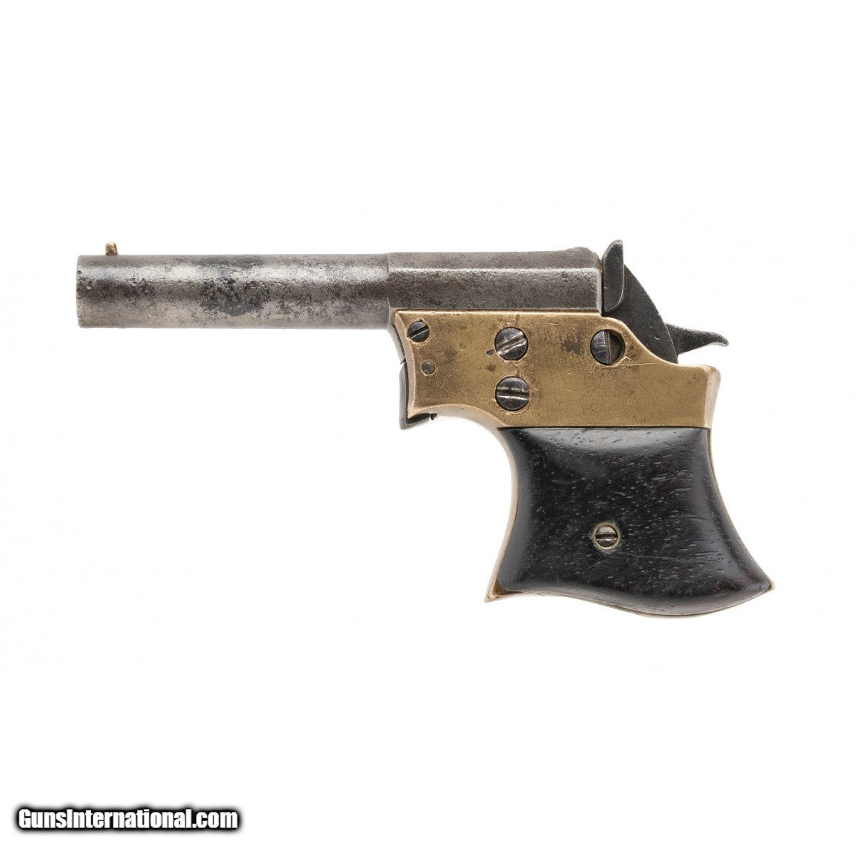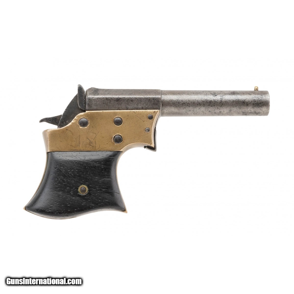 Description: " ""Saw Handle Deringer"". Metal has a gray patina. Brass frame. Bore has pitting. Action works. Good overall condition. SOLD Antique: Yes |