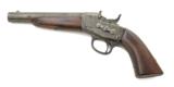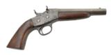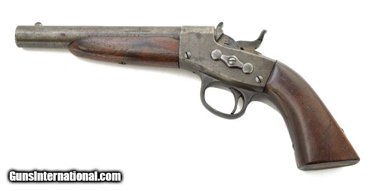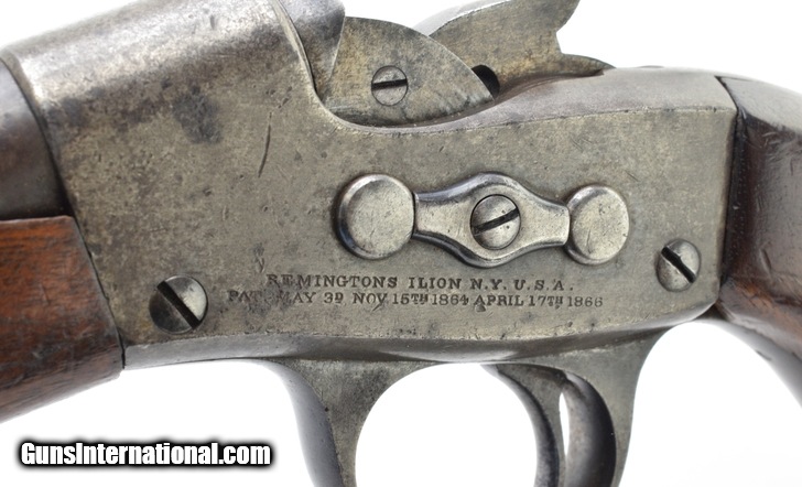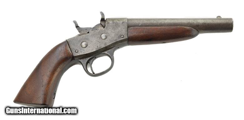 Remington 1867 Rolling Block Navy .50 RF caliber pistol.Metal has a brown patina with all of the marking legible. The bottom grip was trimmed and there are two filled in holes there. Action works fine. $