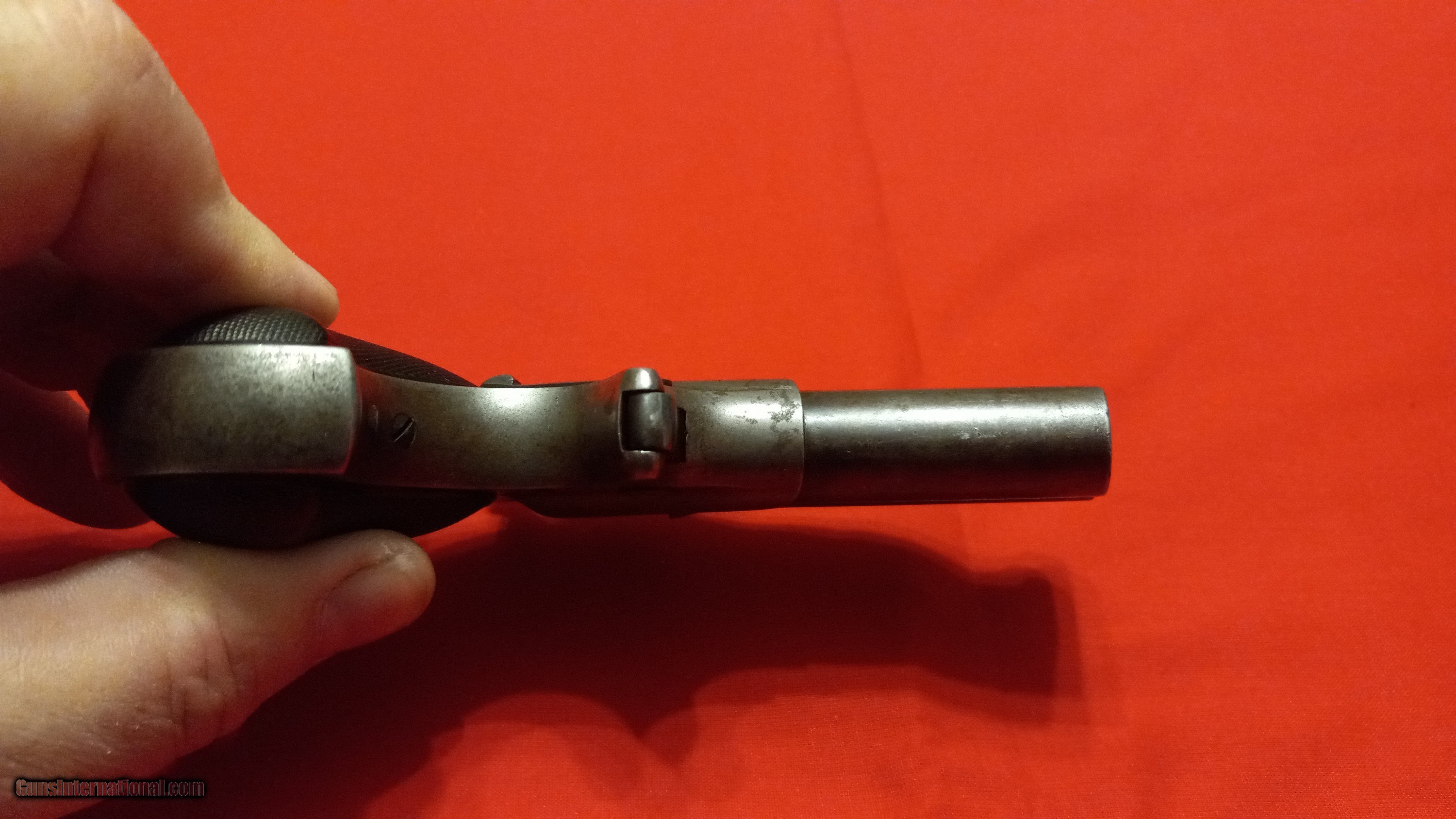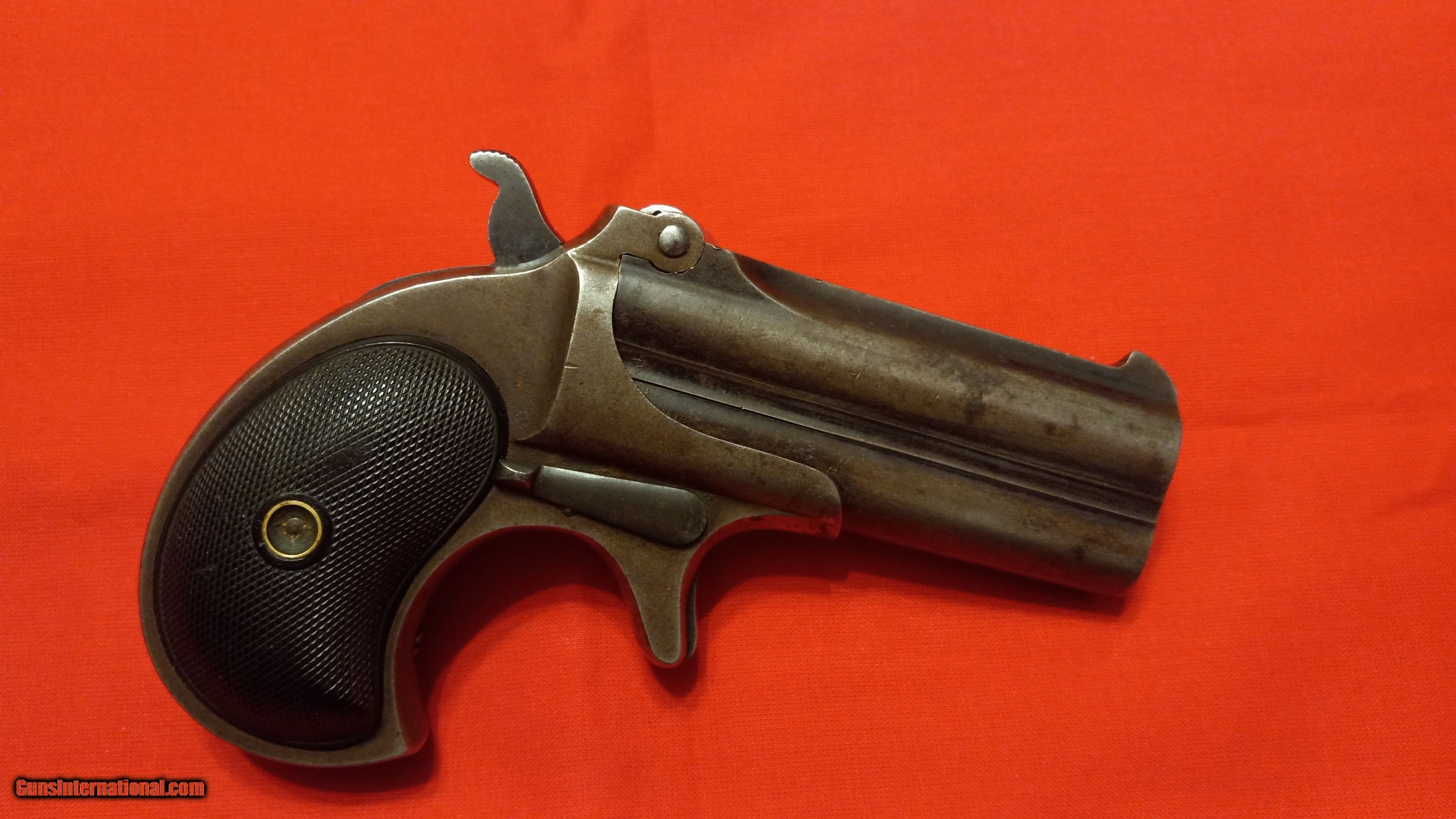 Description: Remington model 95 derringer. O/U, 3 inch barrels, 41 rim fire caliber. Mostly a nice even patina with trace original bluing in protected areas. Bores are poor with pitting.Original grip are in very good condition. Email with and questions. No sales to California and Hawaii. Perferred payment by USPS money order. Personal checks must clear before shipping SOLD Antique: Yes Handgun Caliber: .41 Rimfire |
