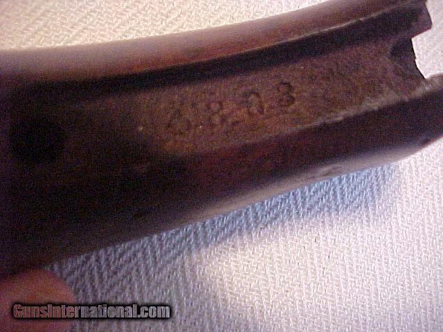Description: REMINGTON RB 1891 TARGET PISTOL FULL NICKEL SPECIAL ORDER Serial # 326. This full nickel, special order piece or prototype has the frame marking, E. REMINGTON & SONS, ILION, NY, is the pistol covered on pages 204-05 & page 208 in Jerry Landskron’s book,”REMINGTON ROLLING BLOCK PISTOLS”. The frame address indicates production before 1888. It is serial number 326, full nickel plate with an unmarked light weight 10” oct barrel in caliber 22 Short and wears a rocky mtn rear and knife blade front sights. Grip is an exc fit (mis-matched # as stated in the book ) and forend are in VG+ condition showing some handling marks with no wood loss. The original nickel is 96% on the receiver and near 80% on the barrel with the loss flaked on left side of the barrel. Bore is worn with thinned but distinct rifling. This is a truly unique piece in great condition. TRADE ? SOLD Antique: Yes |