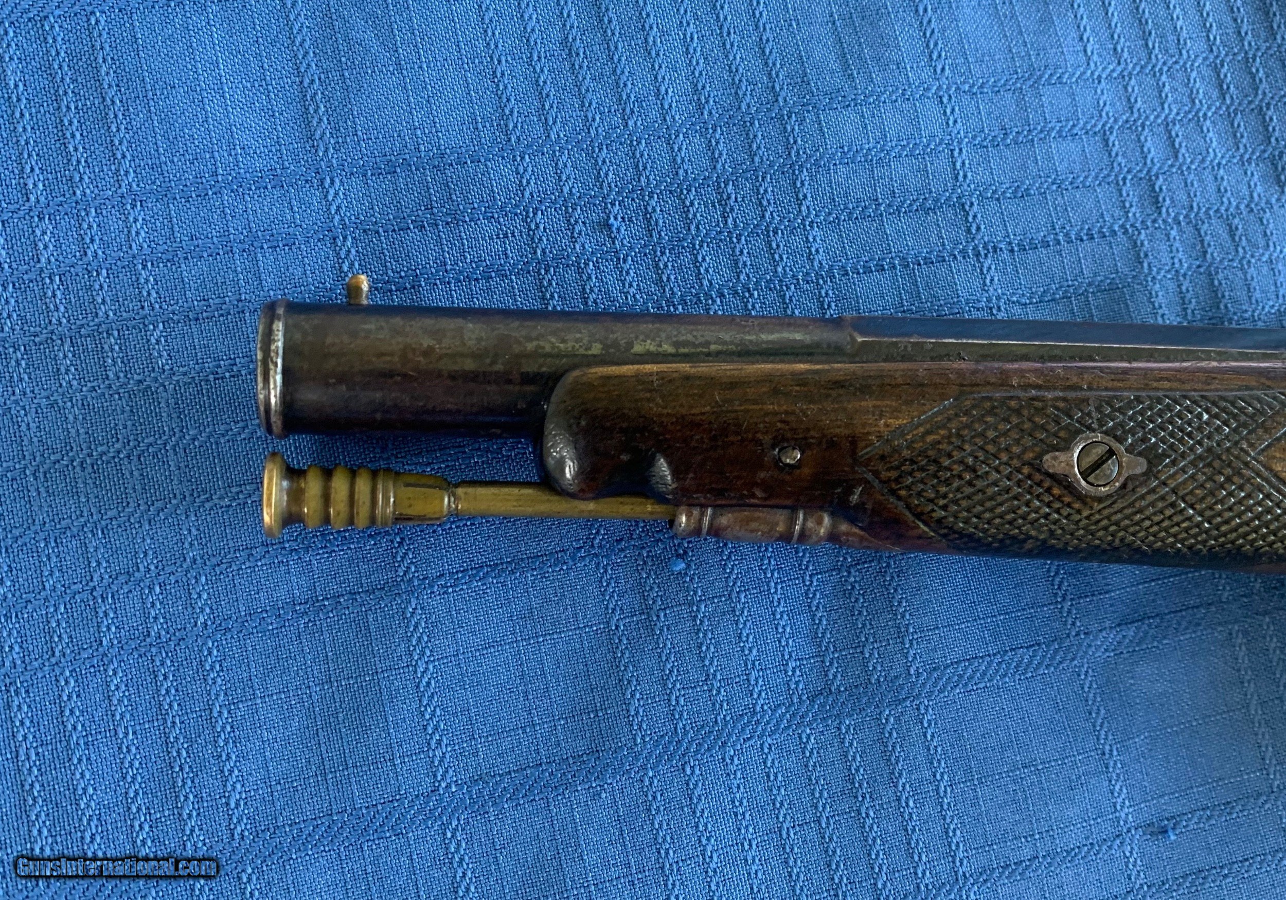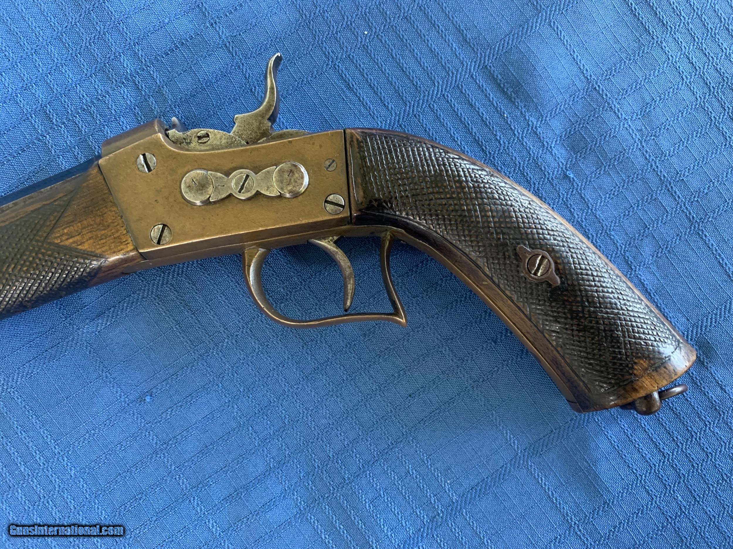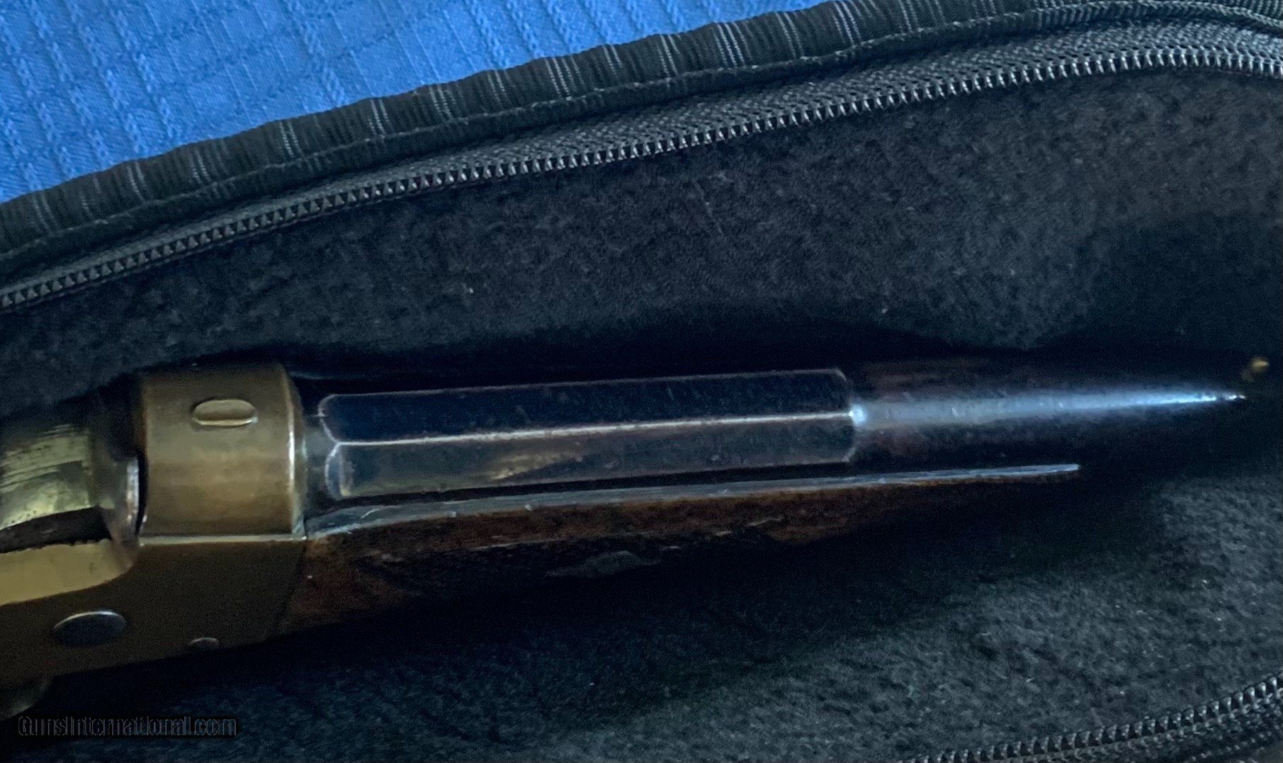 Description: Here's what looks to be a Remington Rolling Block Pistol in 50 cal. . Gun had no markings . May be a Brevet or a early Remington. Gun has all of its original blue finish on 1/2 Round barrel. Frame is brass . Frame is untouched and has a nice mellow mustard patina . Wood stocks are in Excellent condition with fine checkering . Overall in Excellent Plus Condition . Excellent working order. Bore and mechanics are Excellent. Very cool looking pistol . 120 day layaway available . Please review my photos and email me with any questions ? 3 day inspection as allways . Thank you for looking Little Jo SOLD Antique: Yes Handgun Caliber: .50 Action Express Manufacturer: Remington Model: Rolling Block Serial Number: Nsn Barrel Length: 6” Condition: Excellent |