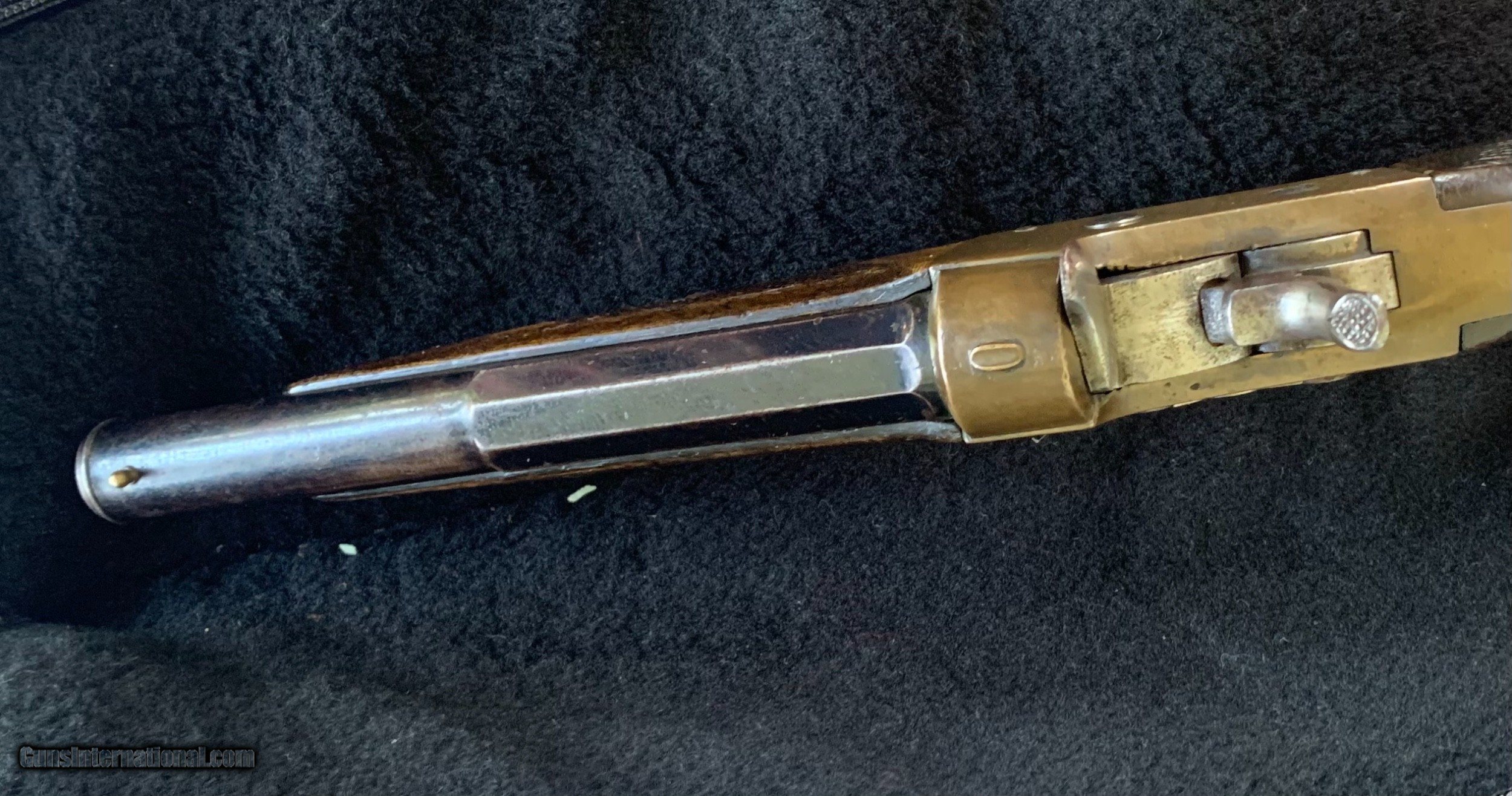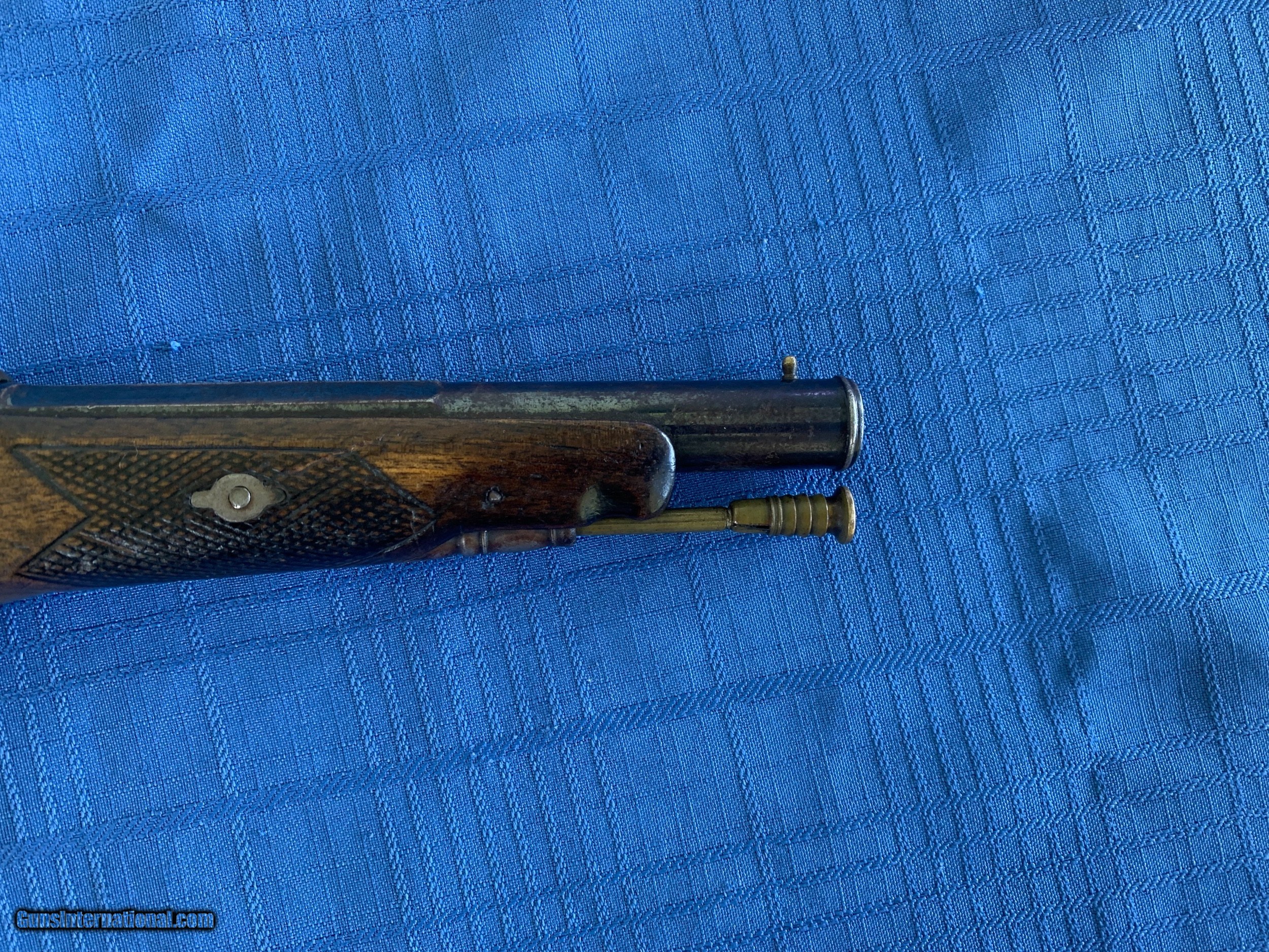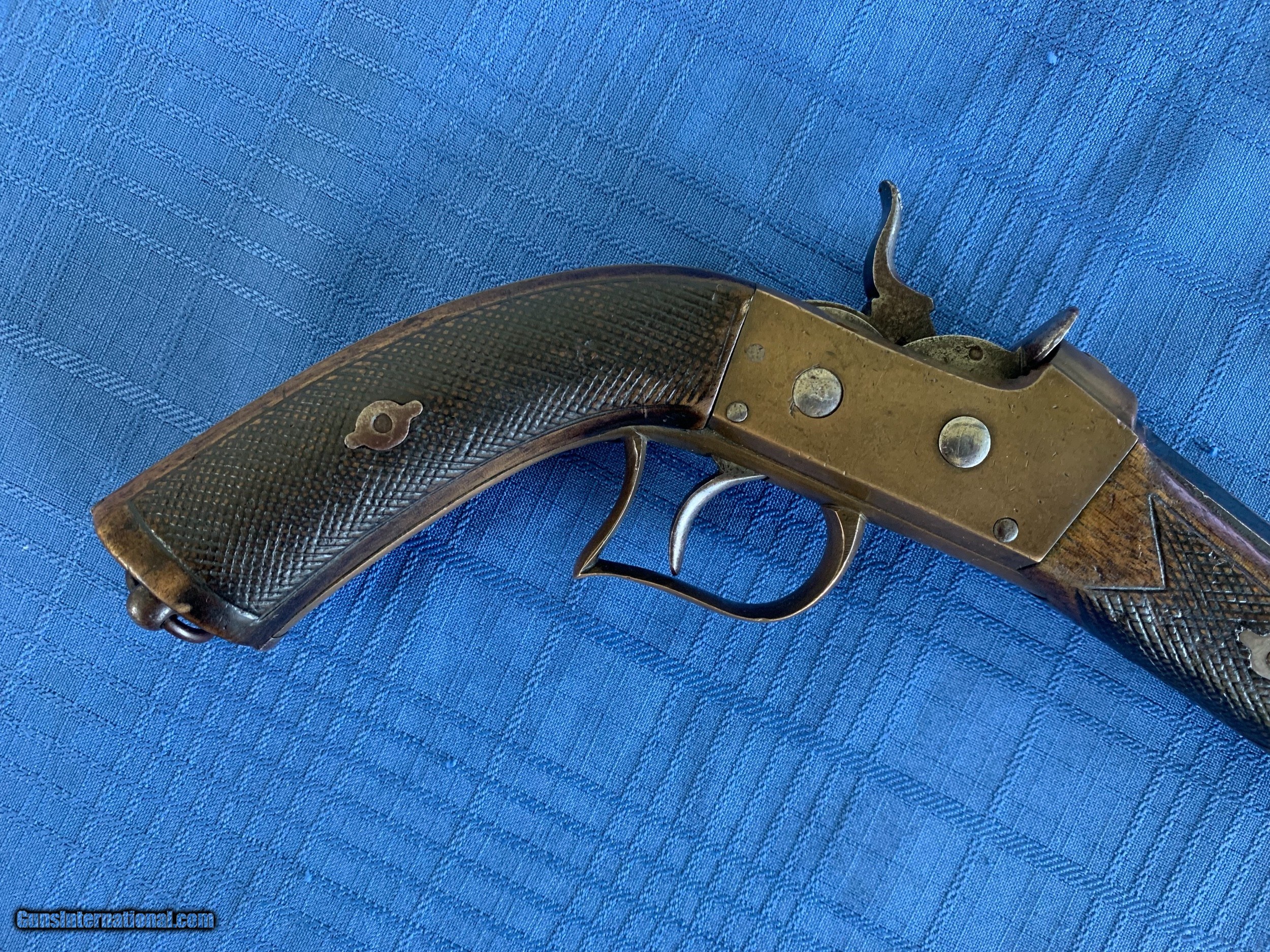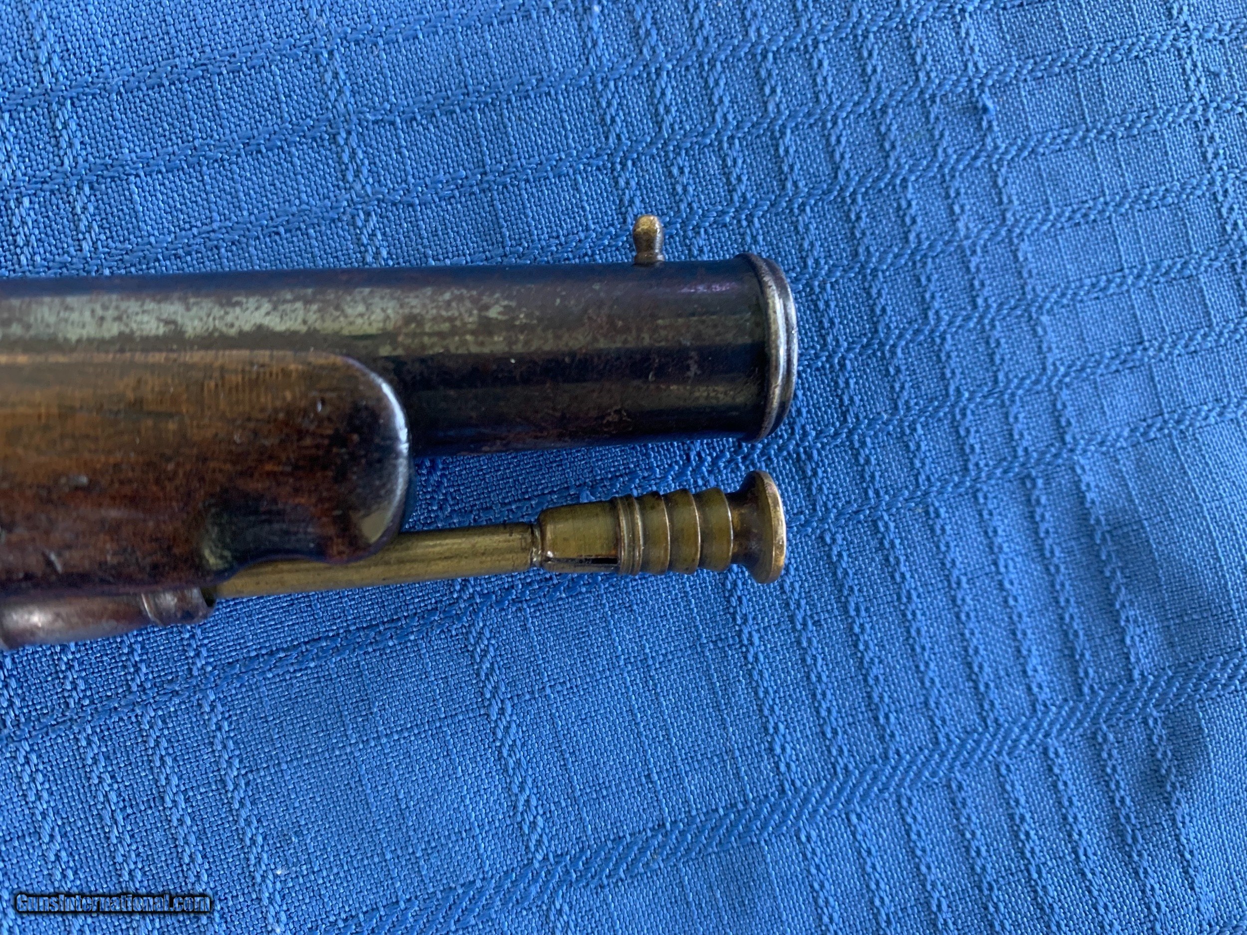 Description: Here's what looks to be a Remington Rolling Block Pistol in 50 cal. . Gun had no markings . May be a Brevet or a early Remington. Gun has all of its original blue finish on 1/2 Round barrel. Frame is brass . Frame is untouched and has a nice mellow mustard patina . Wood stocks are in Excellent condition with fine checkering . Overall in Excellent Plus Condition . Excellent working order. Bore and mechanics are Excellent. Very cool looking pistol . 120 day layaway available . Please review my photos and email me with any questions ? 3 day inspection as allways . Thank you for looking Little Jo SOLD Antique: Yes Handgun Caliber: .50 Action Express Manufacturer: Remington Model: Rolling Block Serial Number: Nsn Barrel Length: 6” Condition: Excellent |